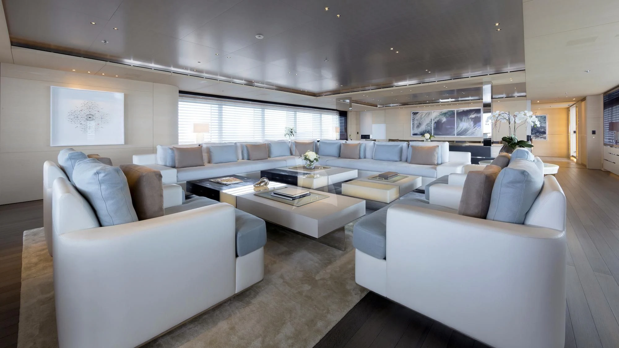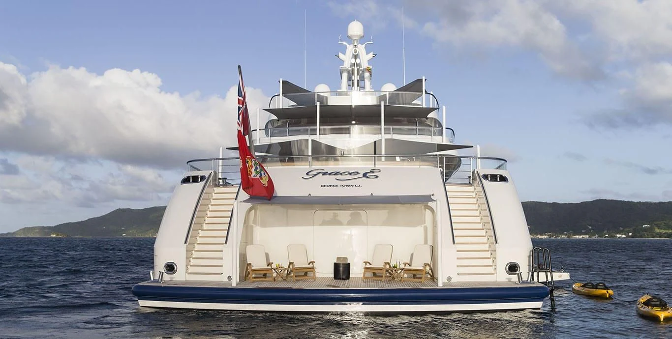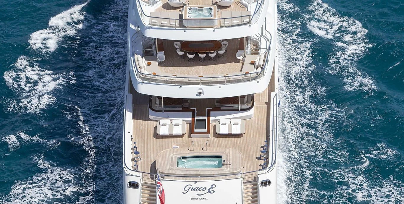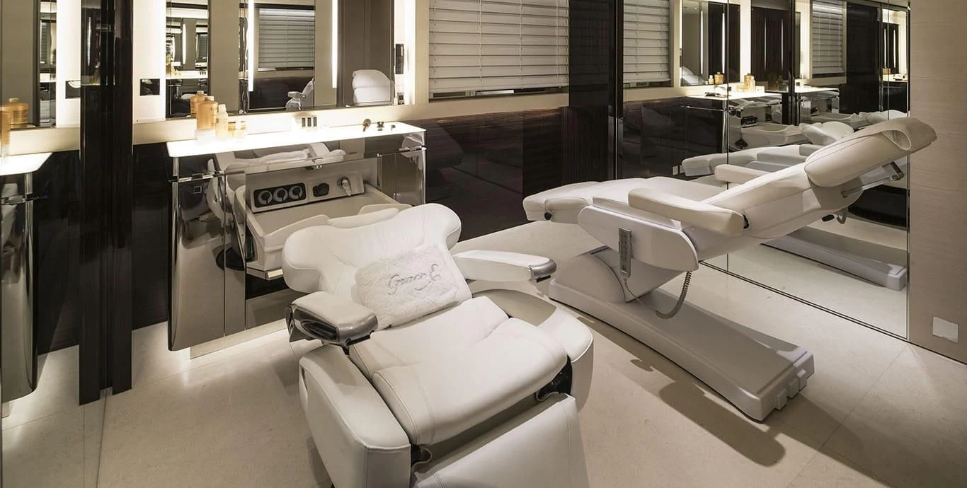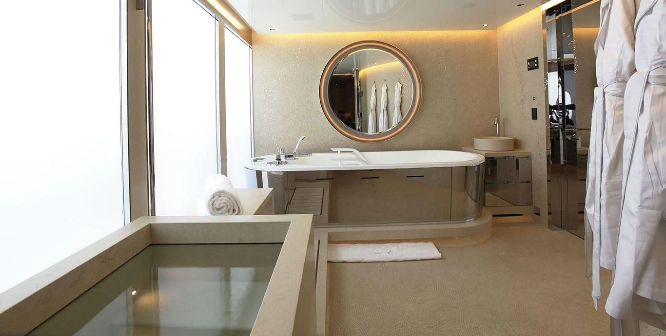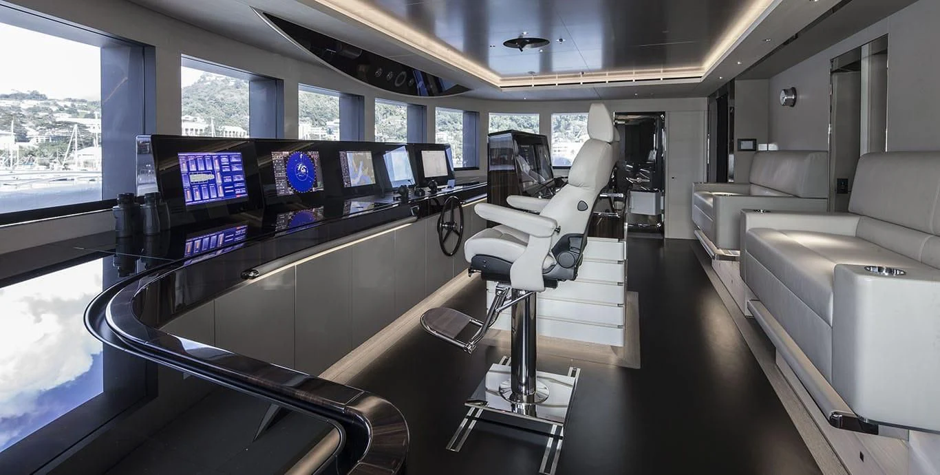 Stepping inside this magnificent vessel, one is immediately struck by the tasteful blend of comfort and sophistication that defines her interior design scheme. Seven luxurious cabins can comfortably accommodate up to twelve guests while twenty-two dedicated crew members ensure every need is met with utmost precision and care. The master stateroom stands as a testament to refined taste featuring plush furnishings complemented by rich textures and warm hues creating an ambiance of understated elegance.