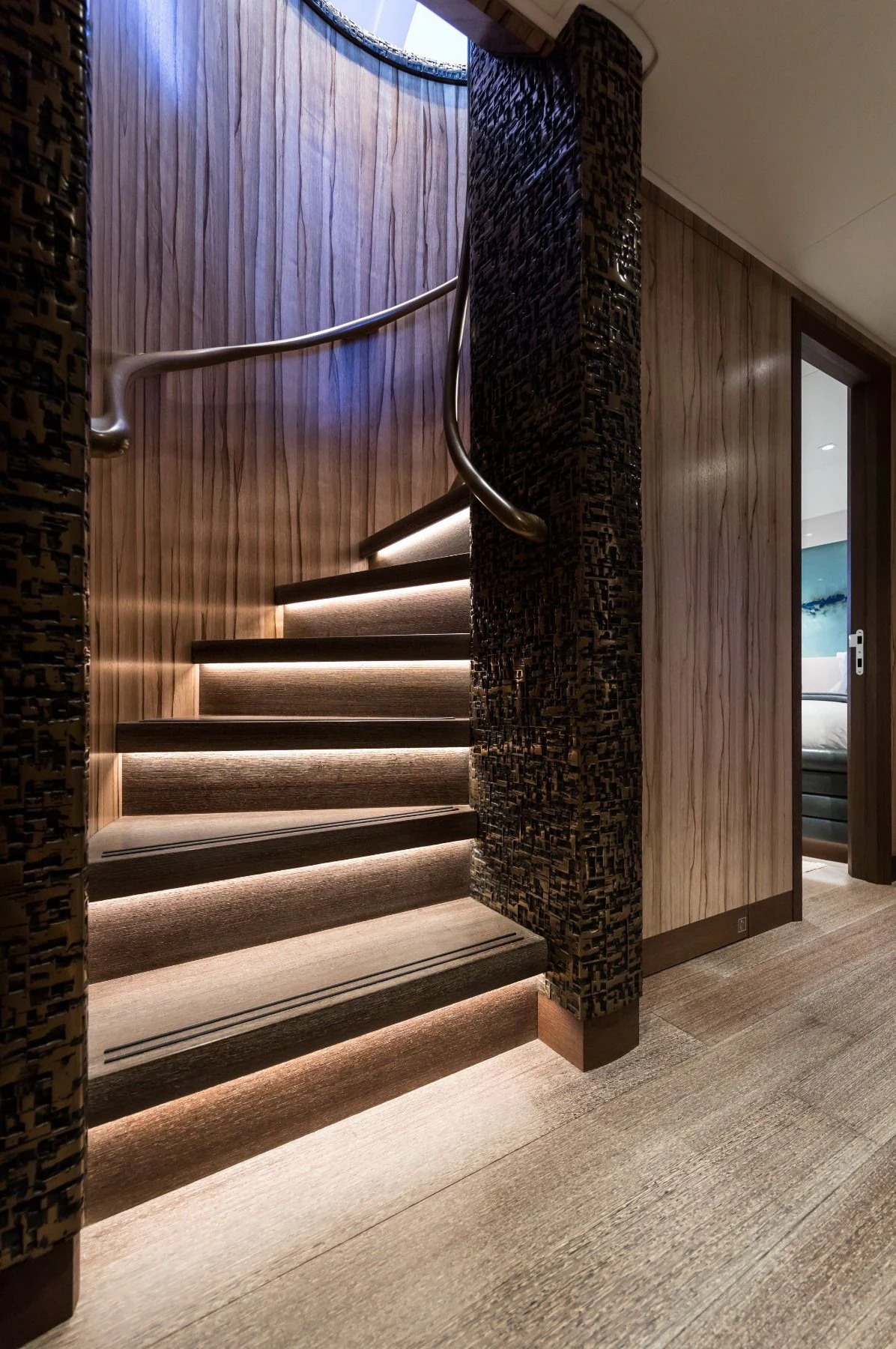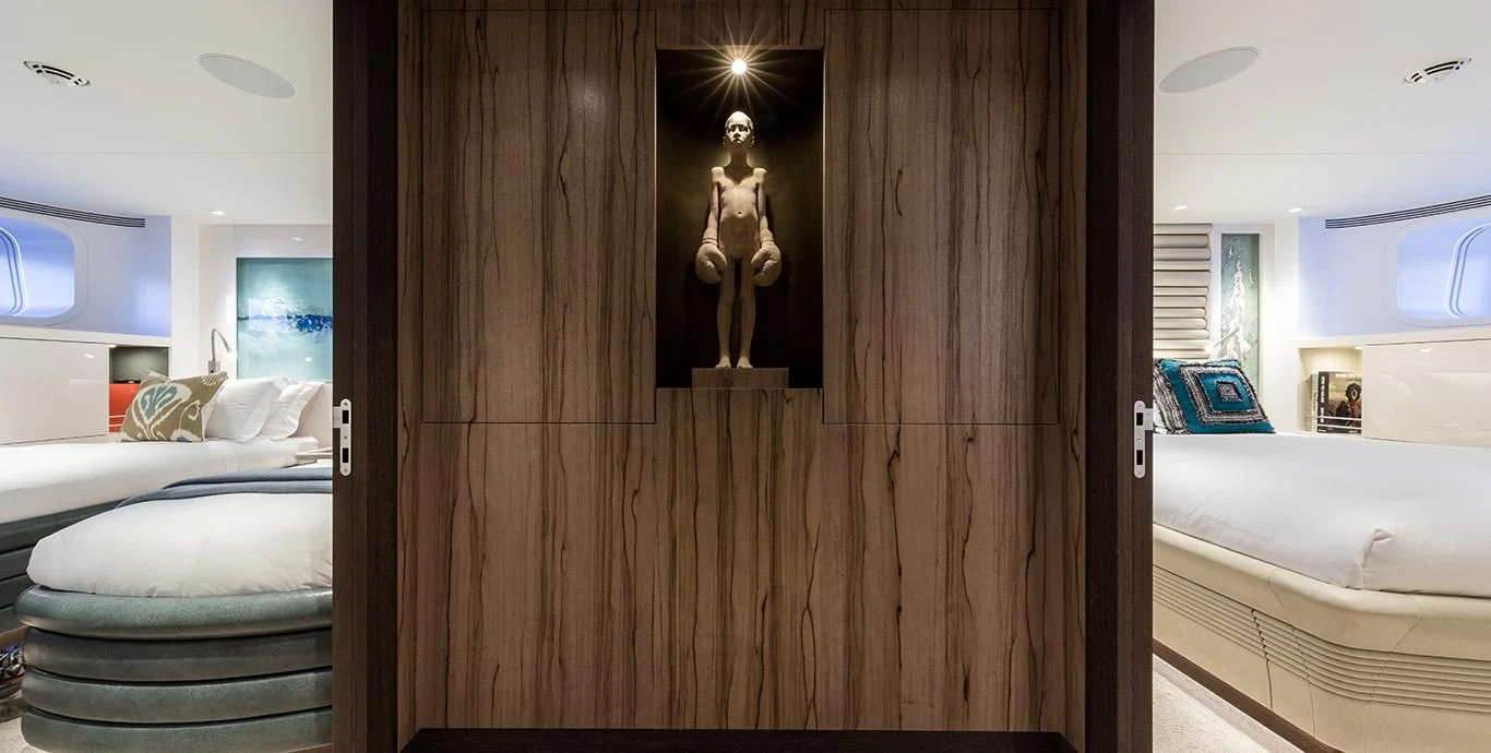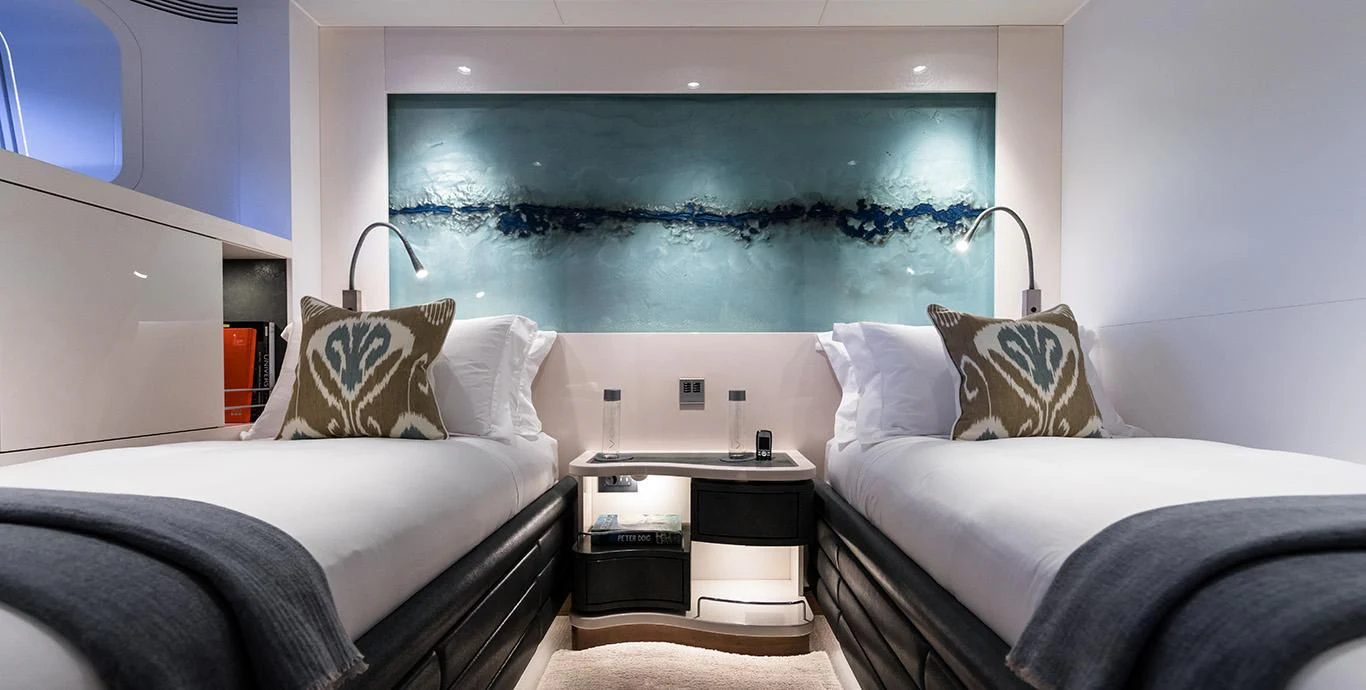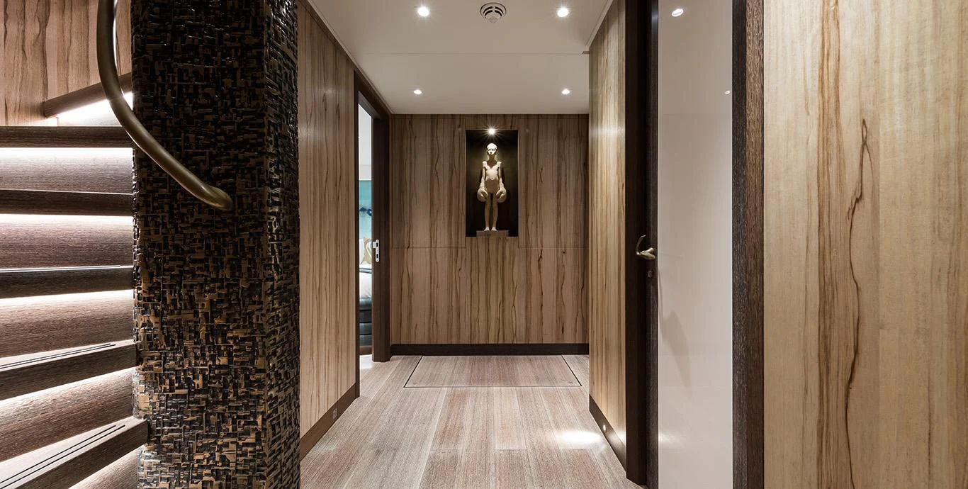 NGONI's interior is as awe-inspiring as her exterior. With three luxurious cabins designed to accommodate six guests comfortably, every inch exudes opulence and style. The master stateroom serves as a private oasis offering unmatched comfort and sophisticated decor that encapsulates the essence of refined yachting lifestyle. In addition to these accommodations, she also houses nine crew members proficient in providing top-tier service ensuring an unforgettable experience for all aboard.