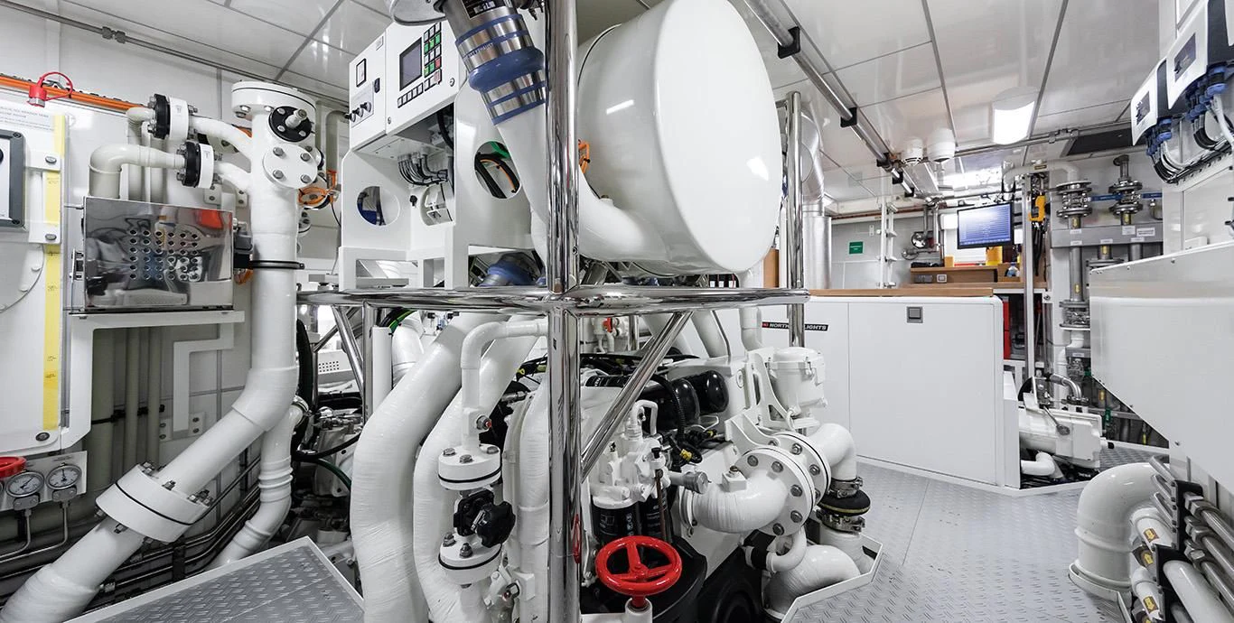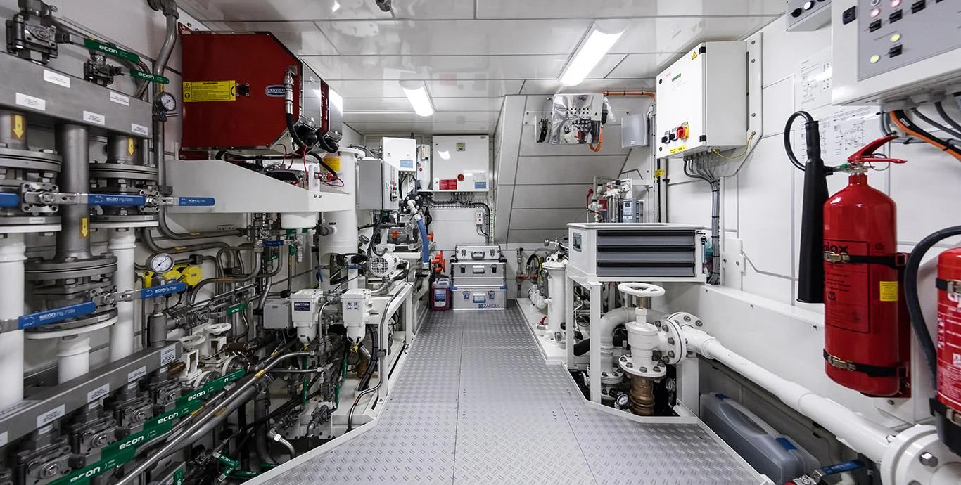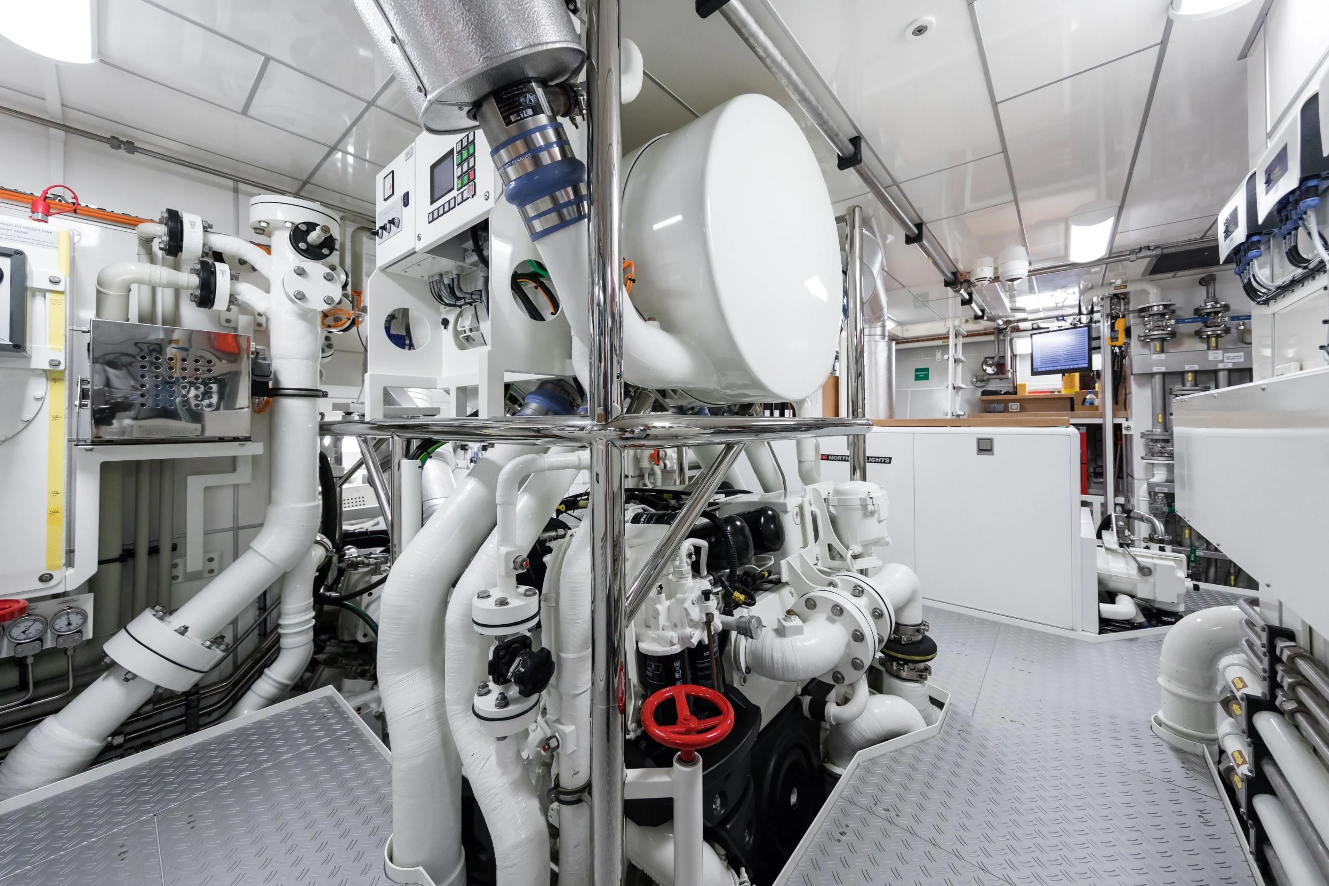 NGONI isn't just about luxury interiors; it's also equipped with high-tech machinery like Hydrosta thrusters at both bow and stern each delivering power up to110 kW ensuring maneuverability at its finest. The HVAC MAR-IX air conditioning system maintains optimal indoor climate across all rooms while an advanced electrical system guarantees uninterrupted power supply throughout your journey.