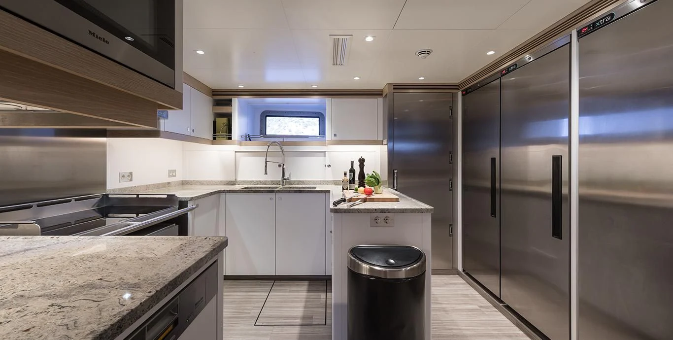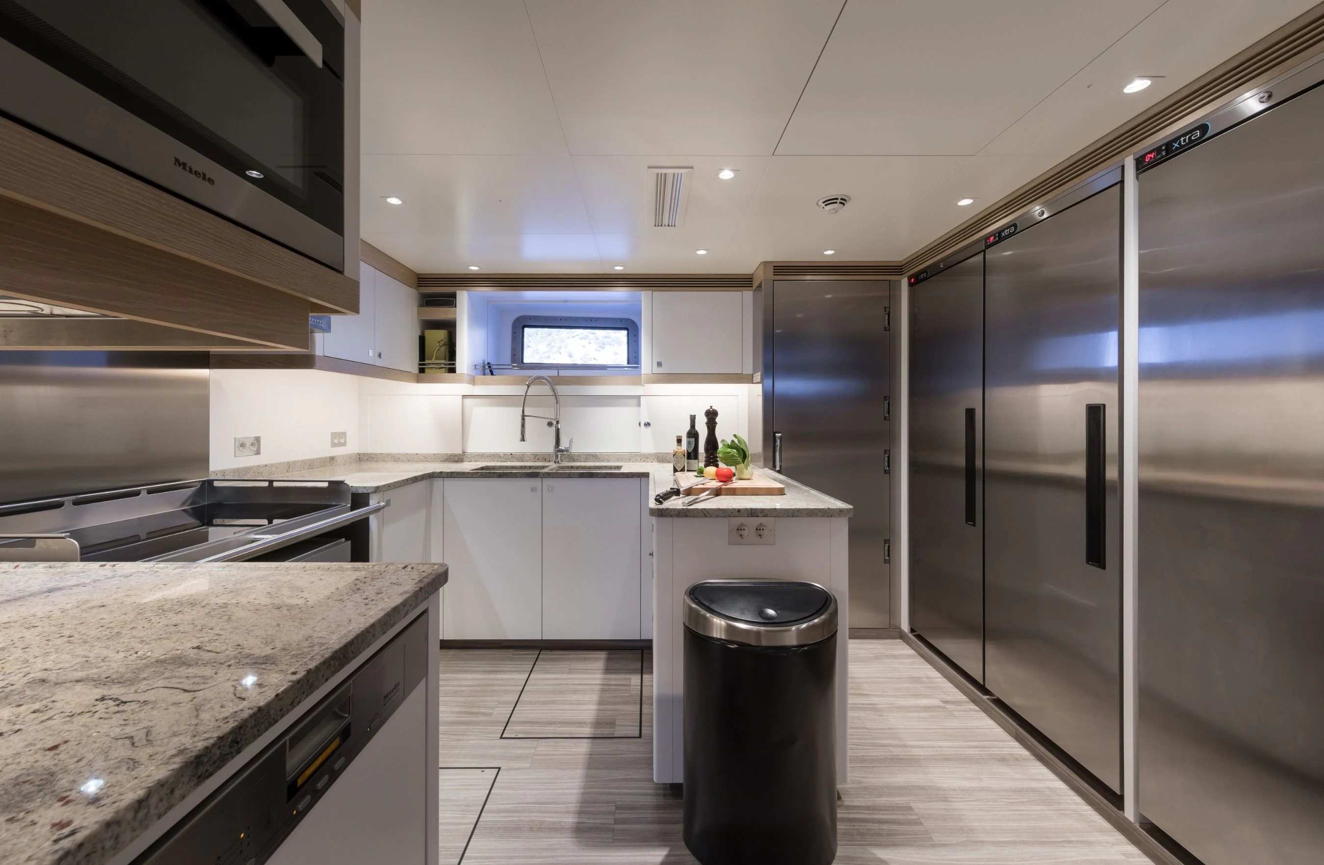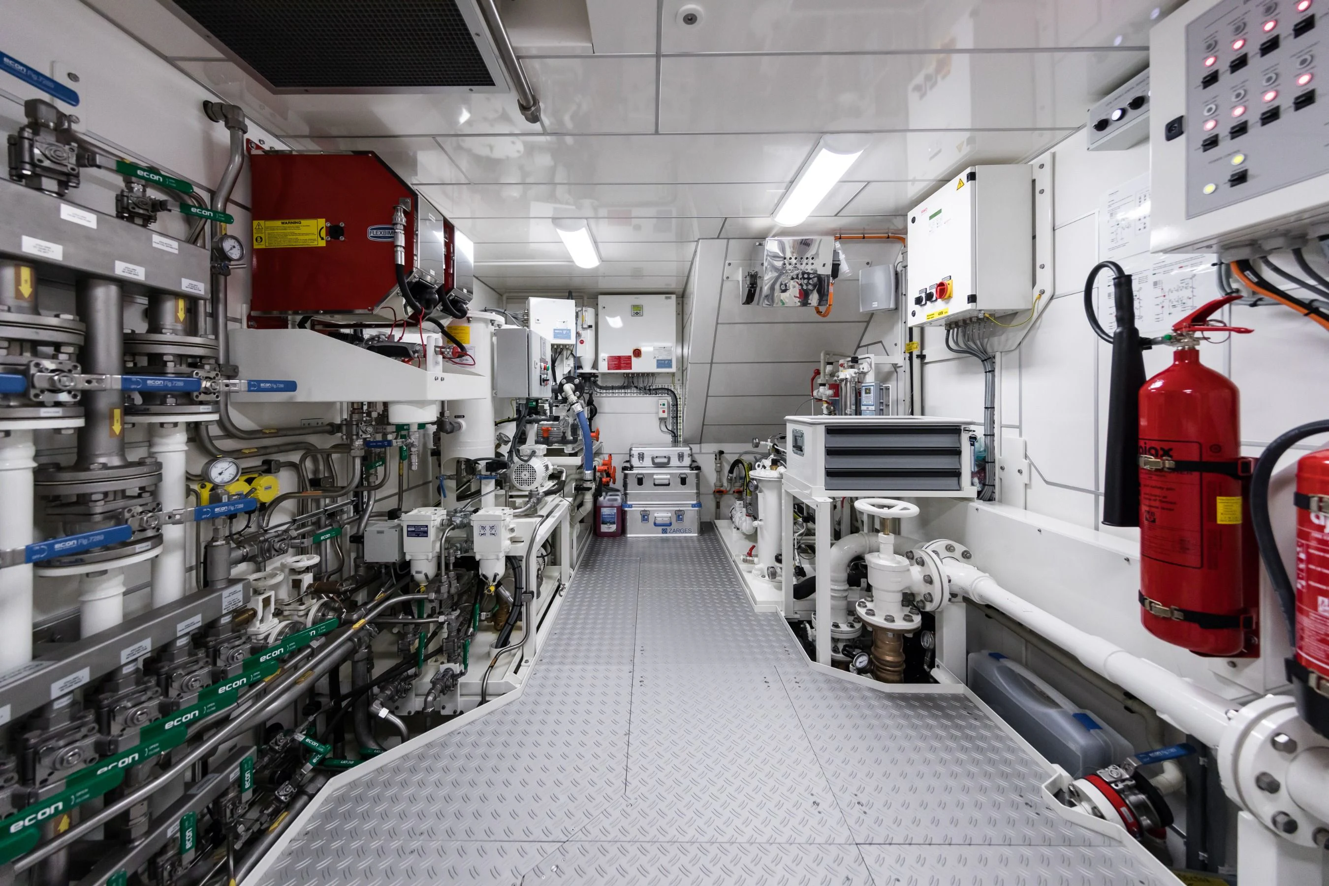 NGONI isn't just about luxury interiors; it's also equipped with high-tech machinery like Hydrosta thrusters at both bow and stern each delivering power up to110 kW ensuring maneuverability at its finest. The HVAC MAR-IX air conditioning system maintains optimal indoor climate across all rooms while an advanced electrical system guarantees uninterrupted power supply throughout your journey.