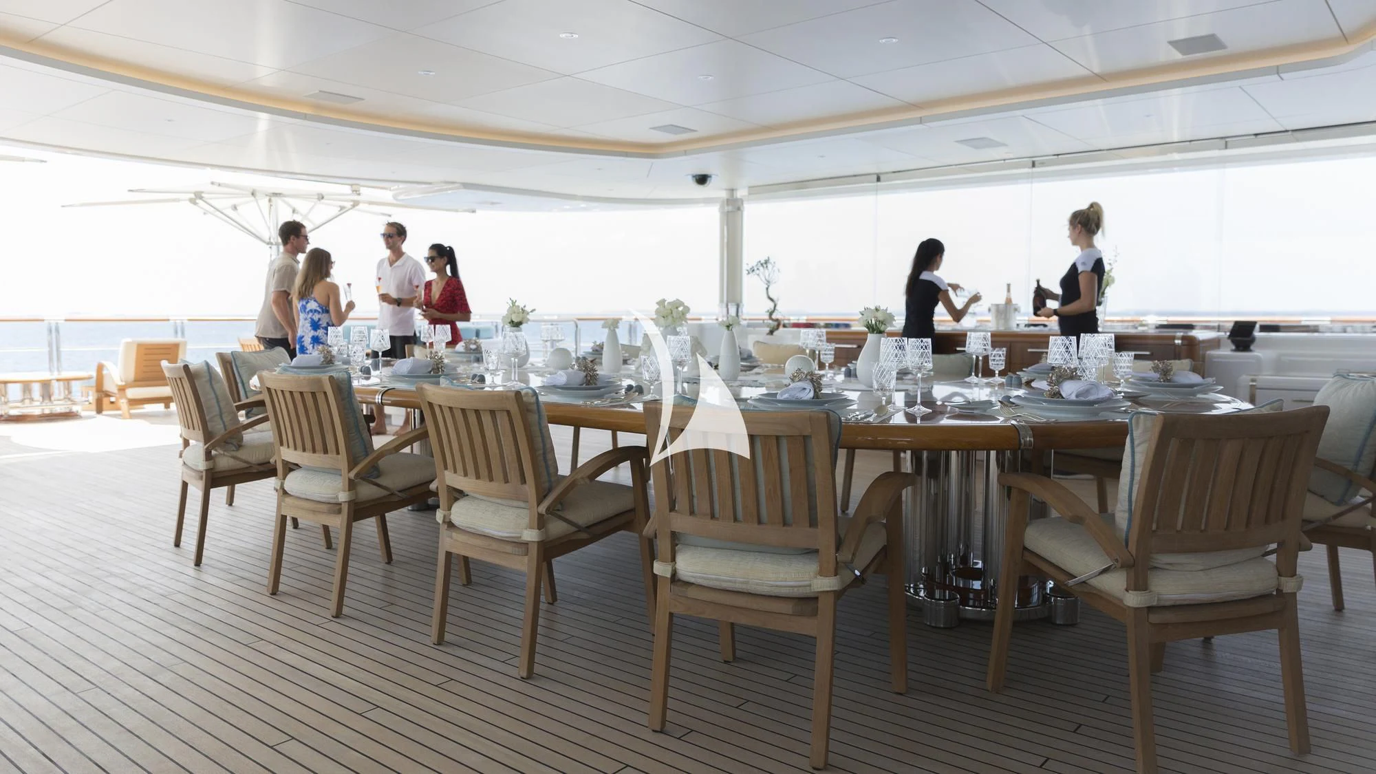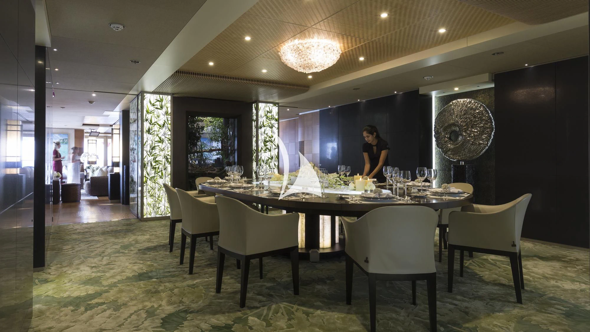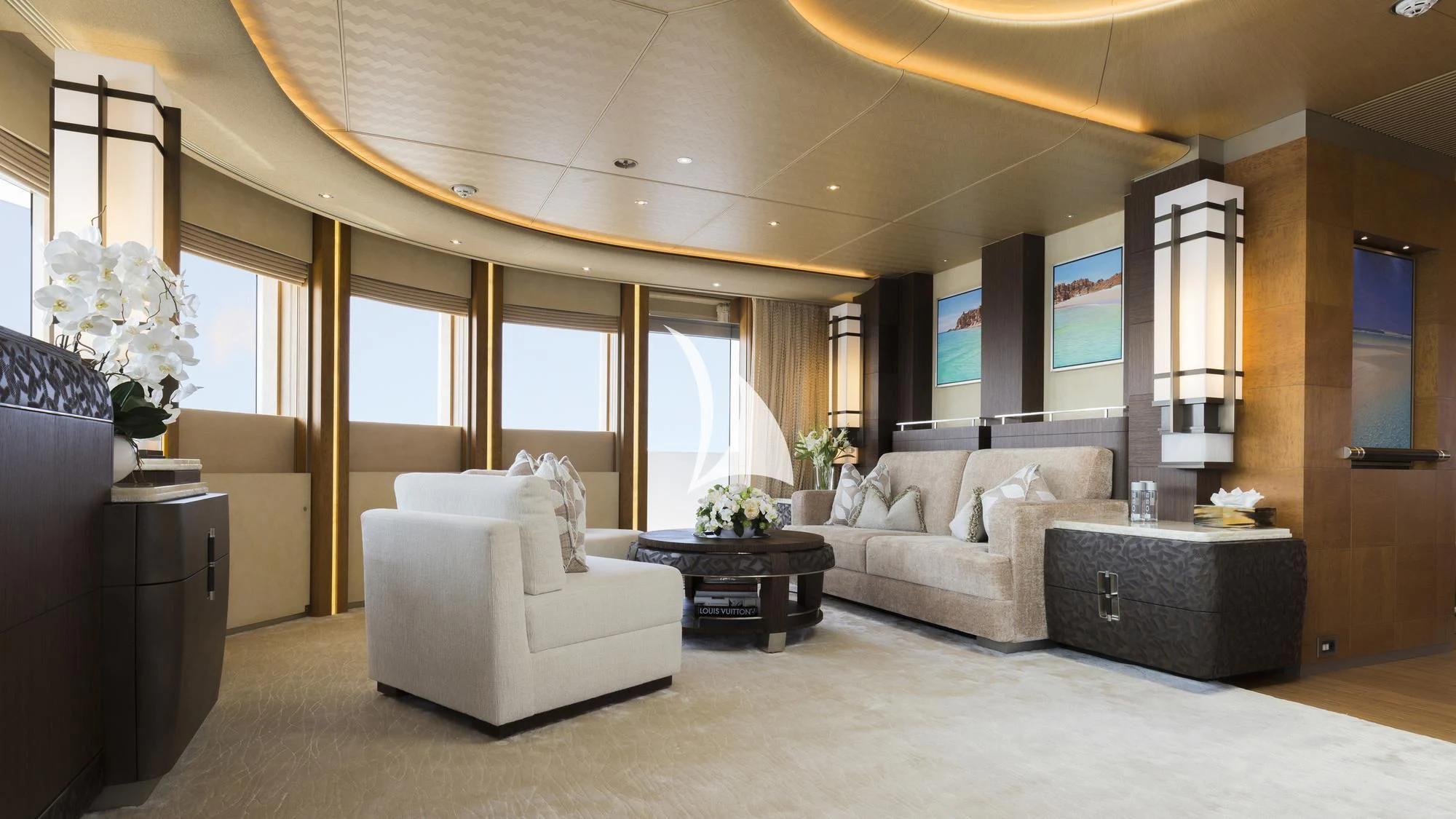 Step inside NIRVANA's opulent interior where luxury meets comfort in every corner. With accommodations designed to host up to twelve guests across six lavish cabins, each room radiates warmth with its unique blend of modern aesthetics and timeless elegance. The master stateroom stands as a pinnacle of luxury living featuring bespoke furnishings that echo refinement while additional staterooms are no less luxurious offering serene retreats after days filled with maritime activities.