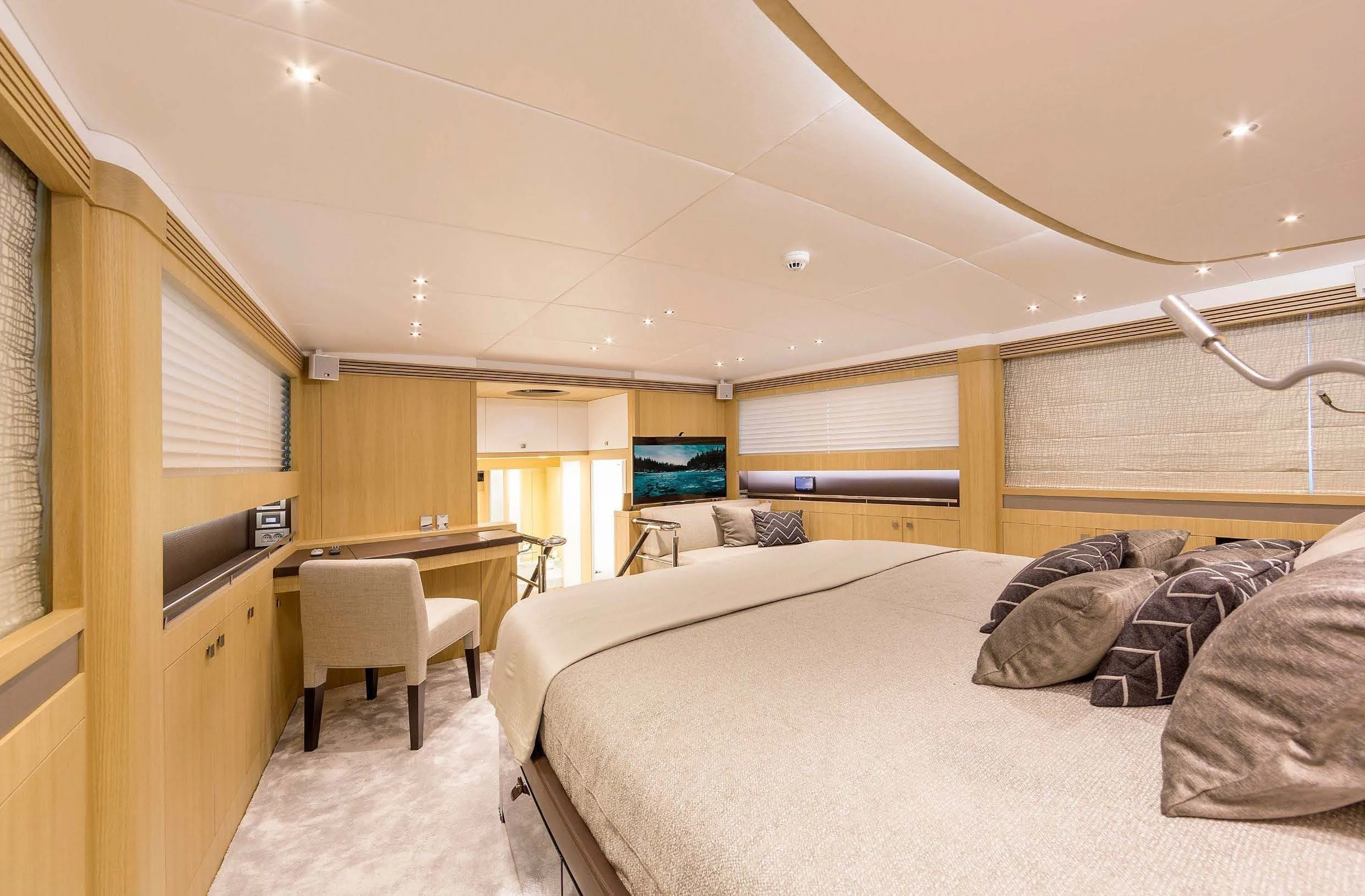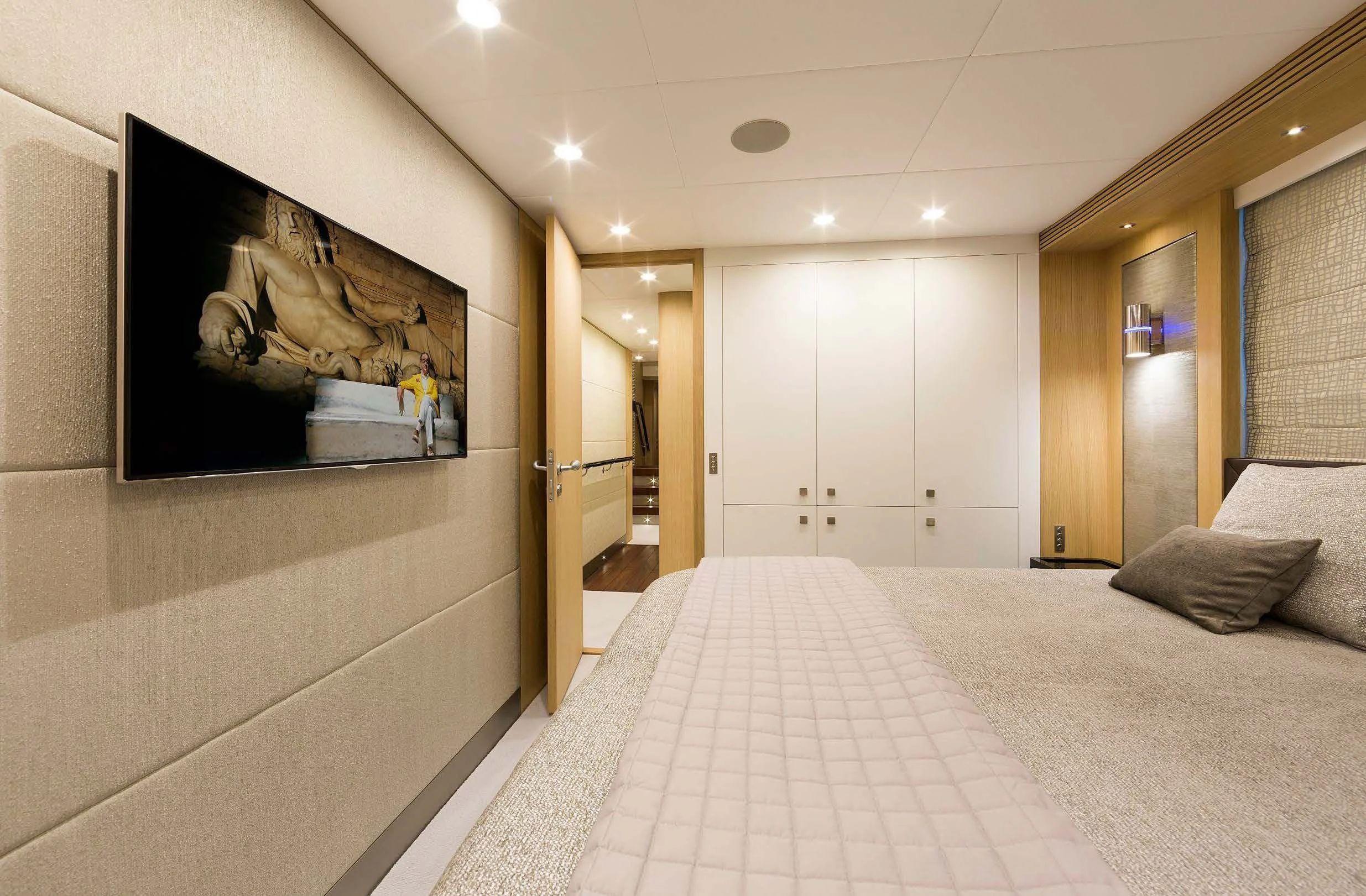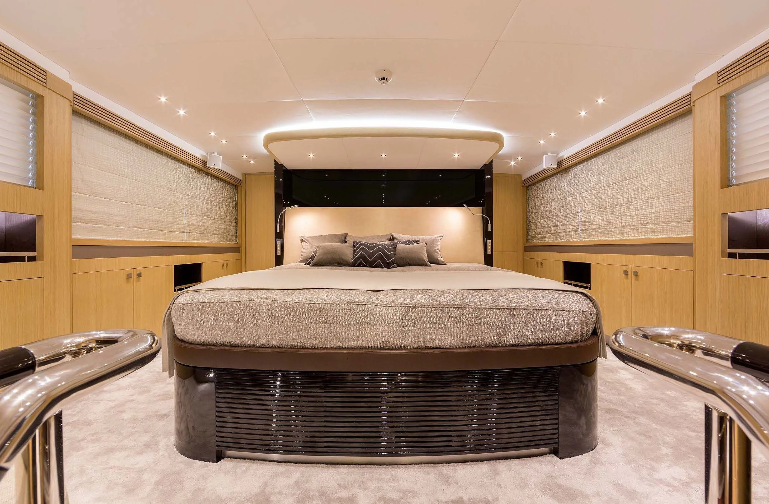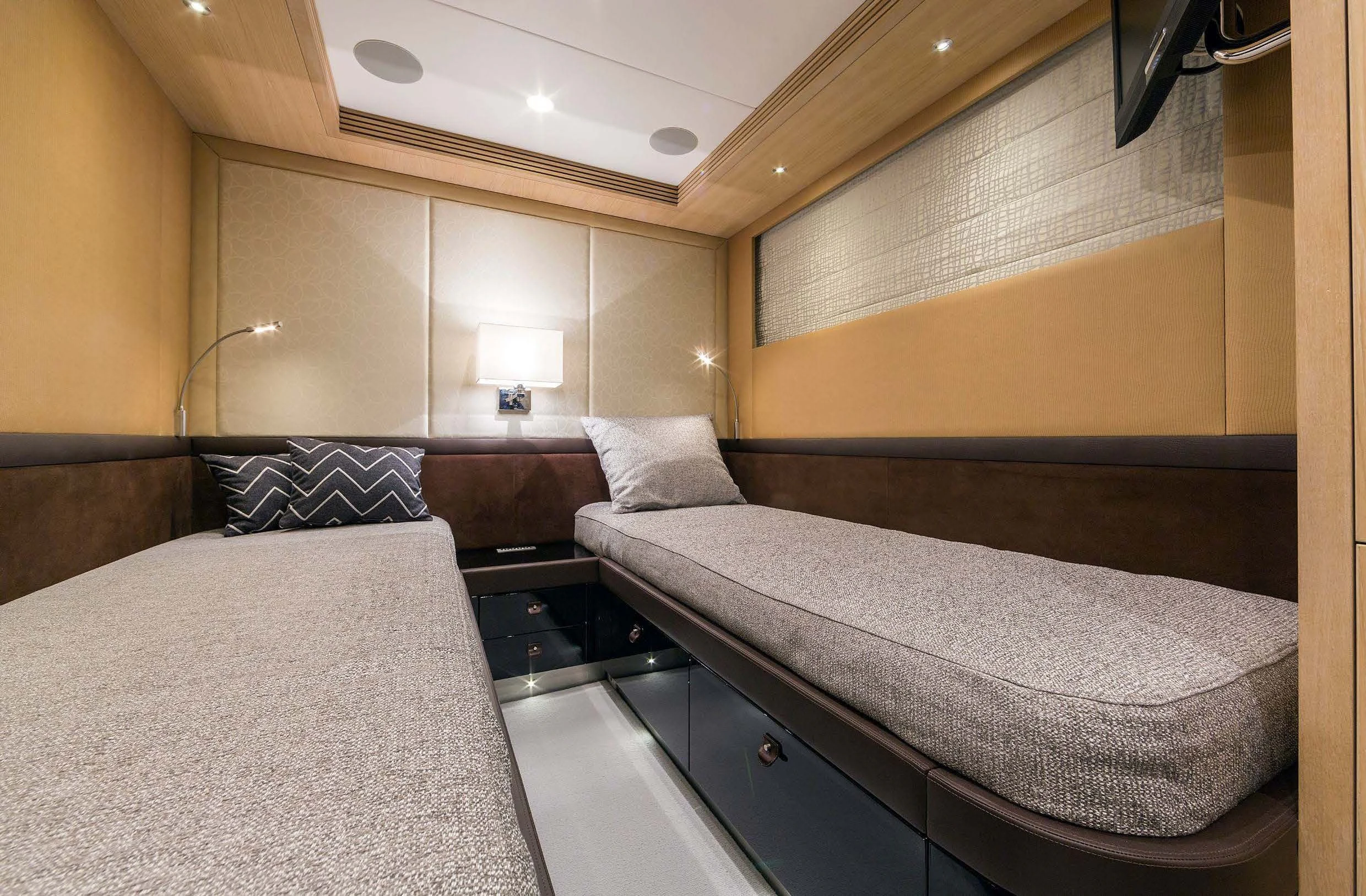 Stepping aboard O NOSO UNO, one is immediately embraced by her luxurious interior spaces designed for ultimate comfort and relaxation for up to ten esteemed guests accommodated within five sumptuous cabins. The master stateroom stands as the jewel in the crown; a sanctuary offering lavish furnishings and state-of-the-art amenities designed for absolute indulgence. The additional guest staterooms offer no less luxury, each meticulously appointed with exquisite décor and plush bedding ensuring restful nights after days filled with marine adventures.