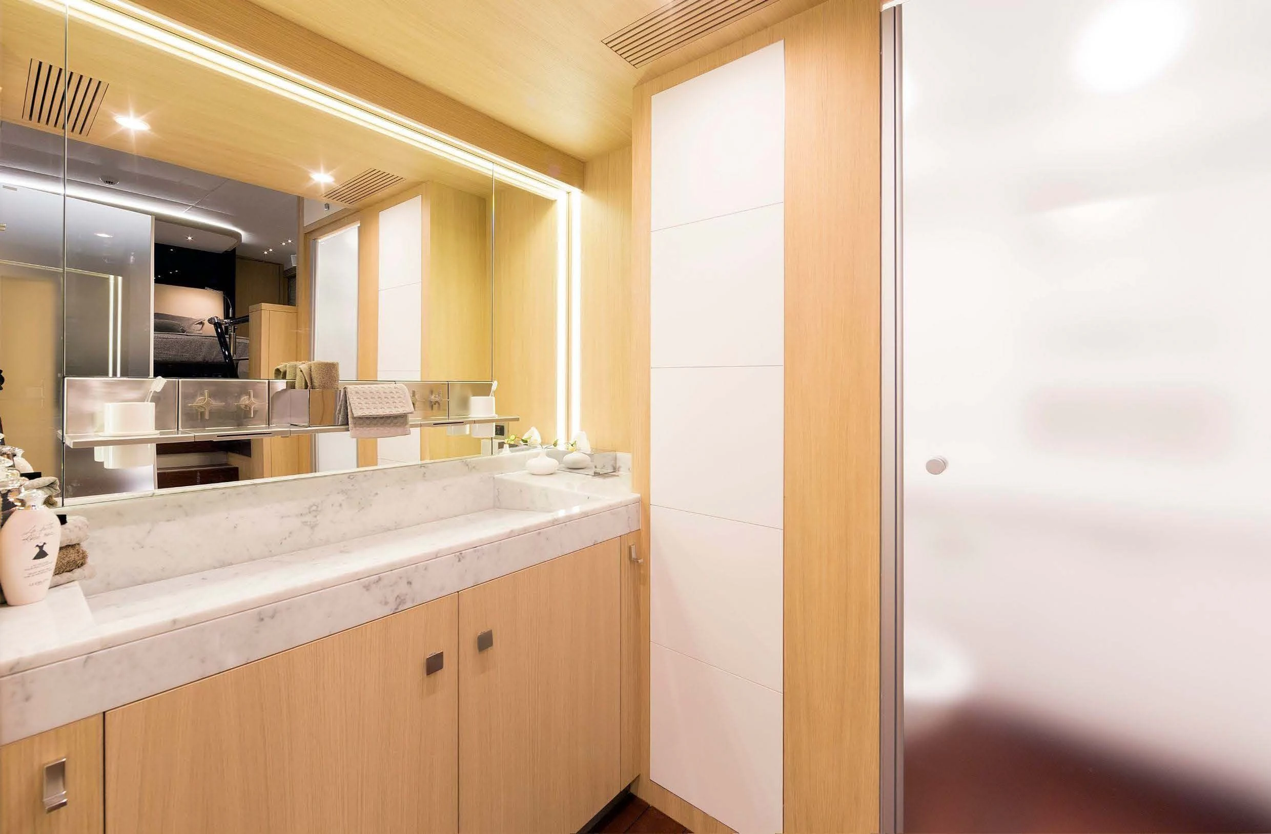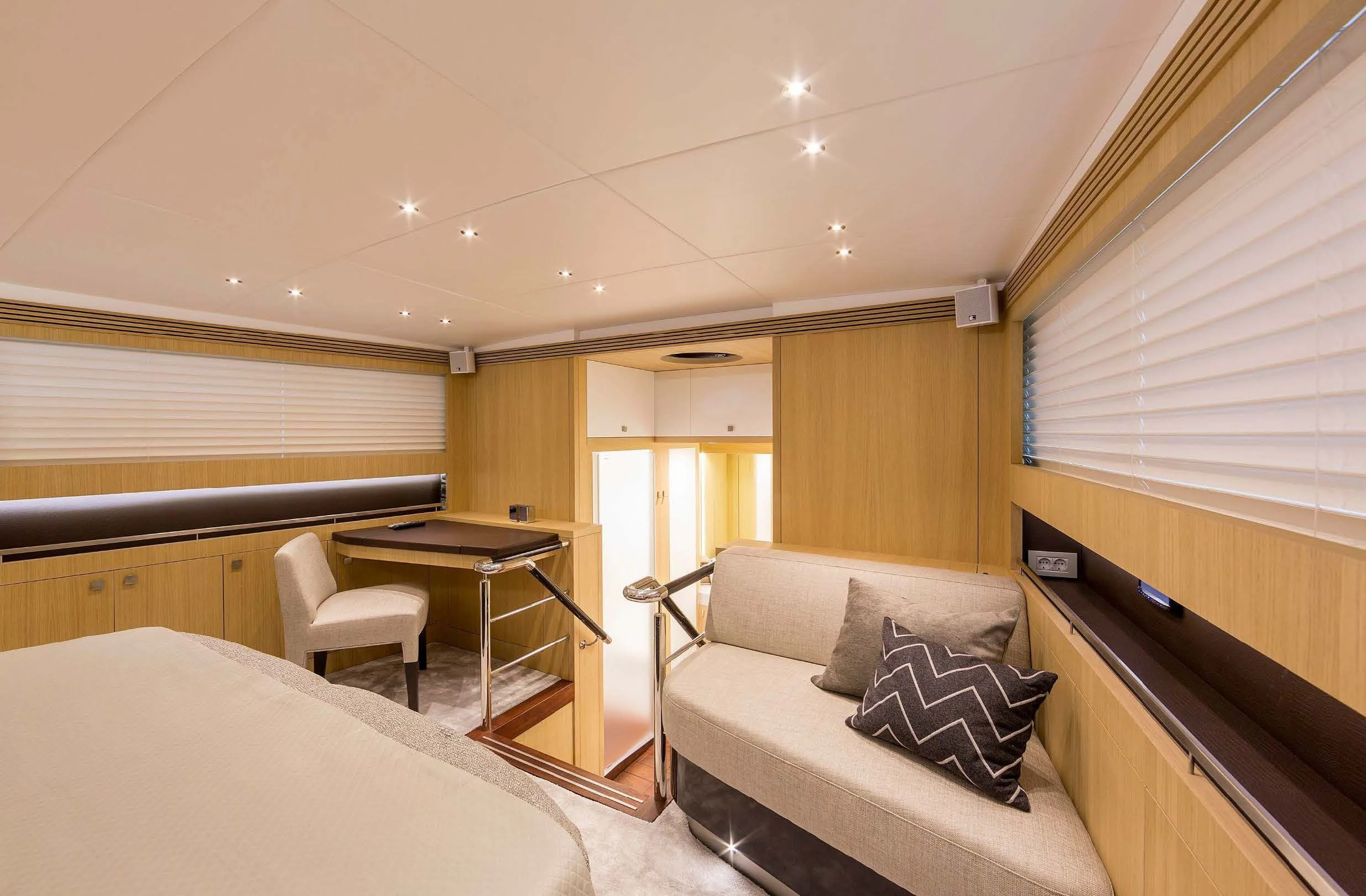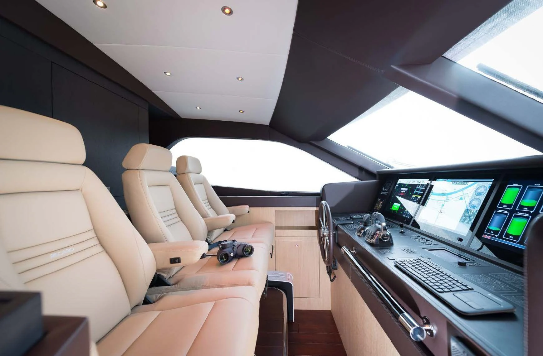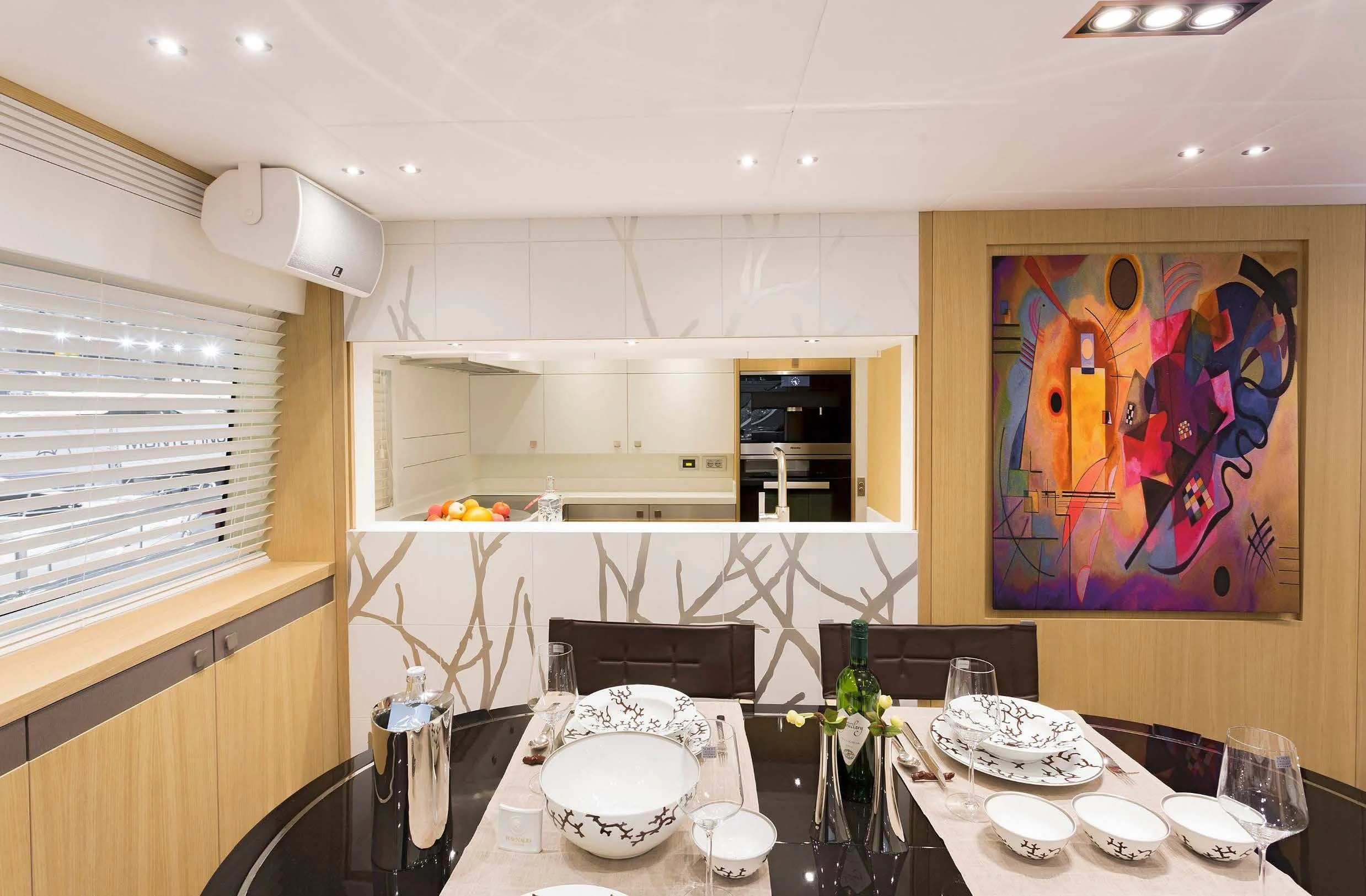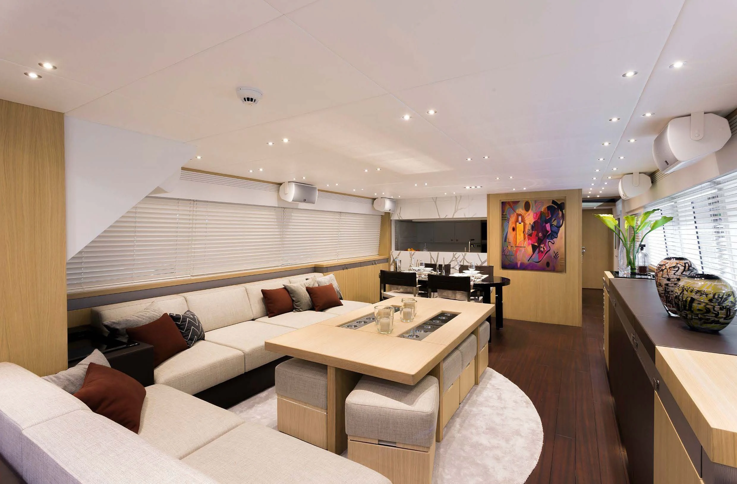 Stepping aboard O NOSO UNO, one is immediately embraced by her luxurious interior spaces designed for ultimate comfort and relaxation for up to ten esteemed guests accommodated within five sumptuous cabins. The master stateroom stands as the jewel in the crown; a sanctuary offering lavish furnishings and state-of-the-art amenities designed for absolute indulgence. The additional guest staterooms offer no less luxury, each meticulously appointed with exquisite décor and plush bedding ensuring restful nights after days filled with marine adventures.