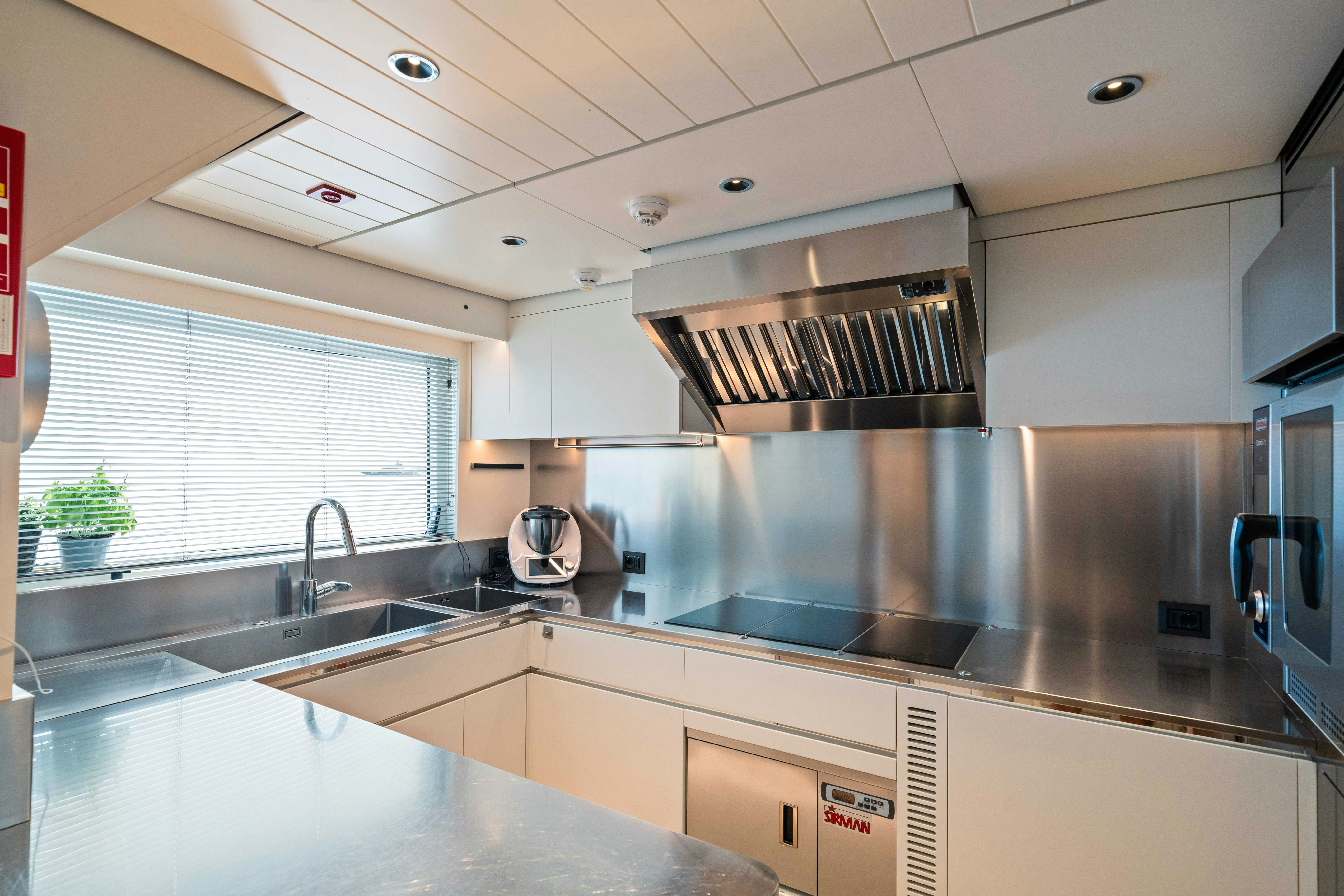 The DUCALE 120 accommodates guests in superior comfort, including a stunning master suite flooded with natural light. Her guest cabins are spacious and well-appointed, while the crew quarters are designed to exceed industry standards—ensuring both luxury service and crew wellbeing. Operational areas, including the bridge and engine room, are equipped with state-of-the-art navigation and engineering systems, streamlining functionality and control.