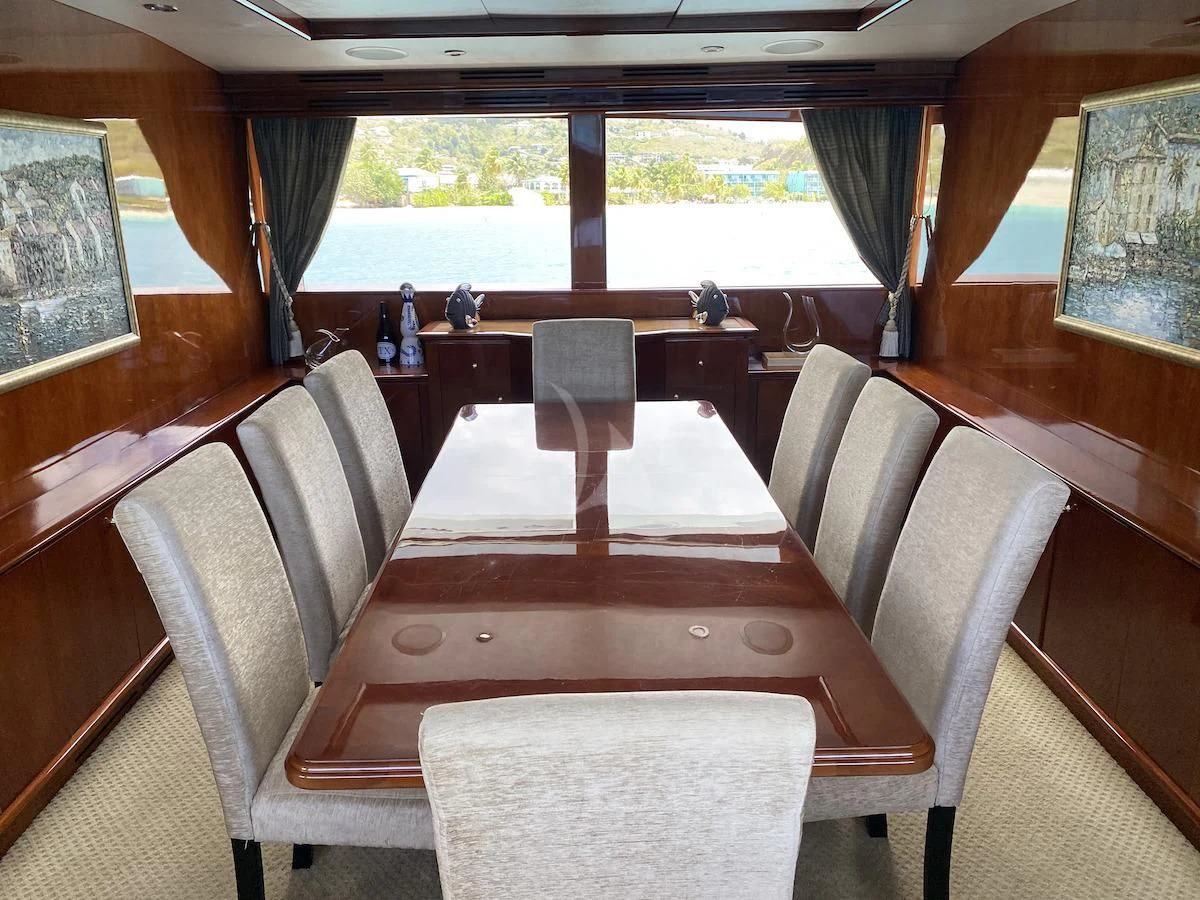 Step inside OUTTA TOUCH's sumptuous interior and be captivated by its refined elegance. The yacht accommodates up to eight guests across four lavish cabins, each designed with utmost attention to detail and comfort. The master stateroom stands out for its spaciousness and opulence, offering occupants an oasis of tranquility amidst the high seas. Each cabin comes equipped with Wi-Fi connectivity for those who wish to stay connected throughout their voyage.