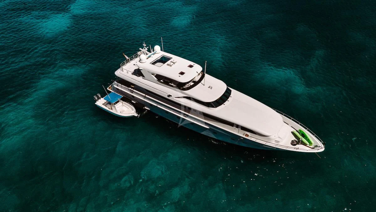 Allow me to introduce you to the remarkable OUTTA TOUCH, a luxurious yacht that is nothing short of a floating paradise. Built by the esteemed Intermarine in 2001 and refitted in 2021, she is an embodiment of elegance and sophistication on water. Spanning an impressive 105 feet (32 meters) with a beam of nearly 23 feet (7.16 meters), OUTTA TOUCH boasts a semi-displacement hull made from sturdy fiberglass, ensuring both stability and speed as it cruises through the waves at speeds up to 22 knots.