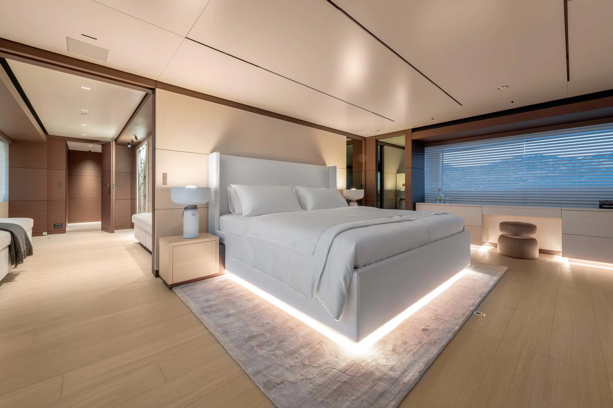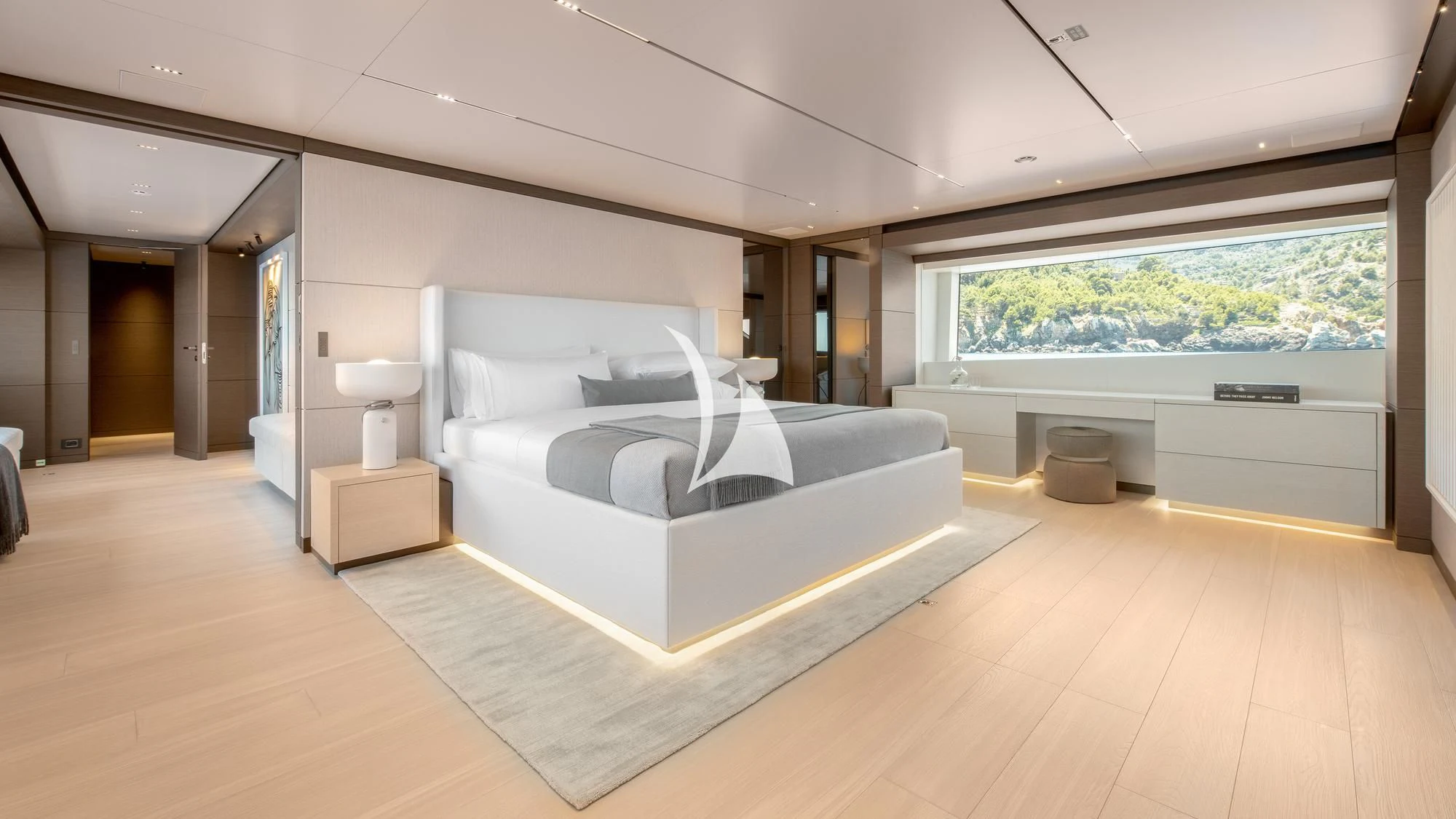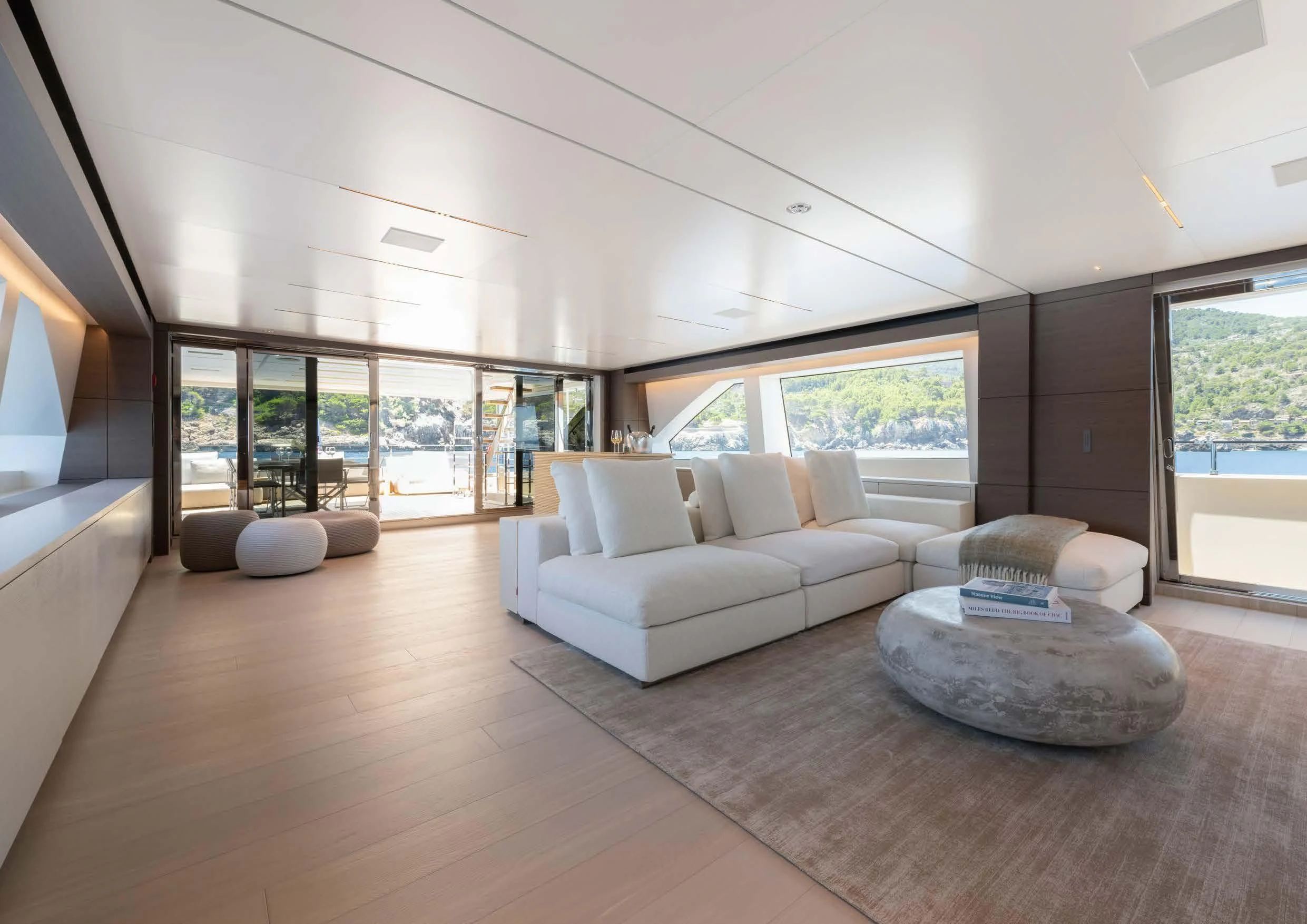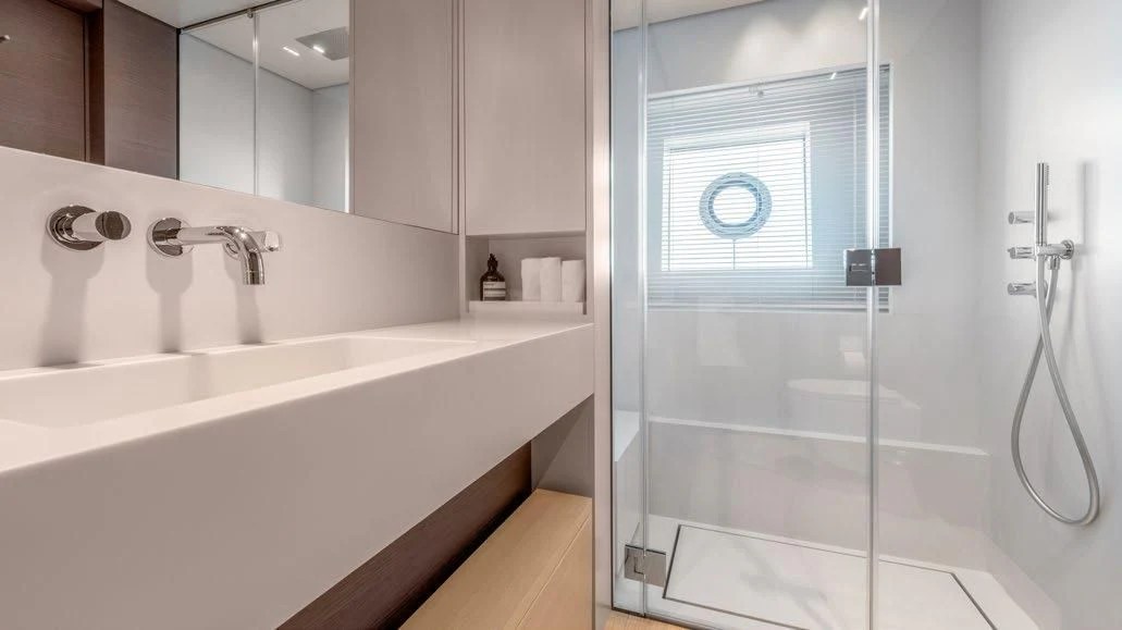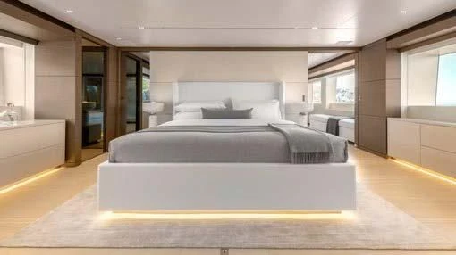 Step inside PALOMA to discover an interior that blends contemporary style with timeless luxury. Accommodating up to eleven guests across five cabins, each area within this floating palace has been meticulously designed to provide ultimate comfort and convenience. The master stateroom showcases opulence at its finest; it's a serene sanctuary complete with plush furnishings and premium amenities. For those who wish to maintain their fitness routine while aboard, there’s an onboard gym equipped with top-tier equipment – all complemented by breathtaking sea views.
