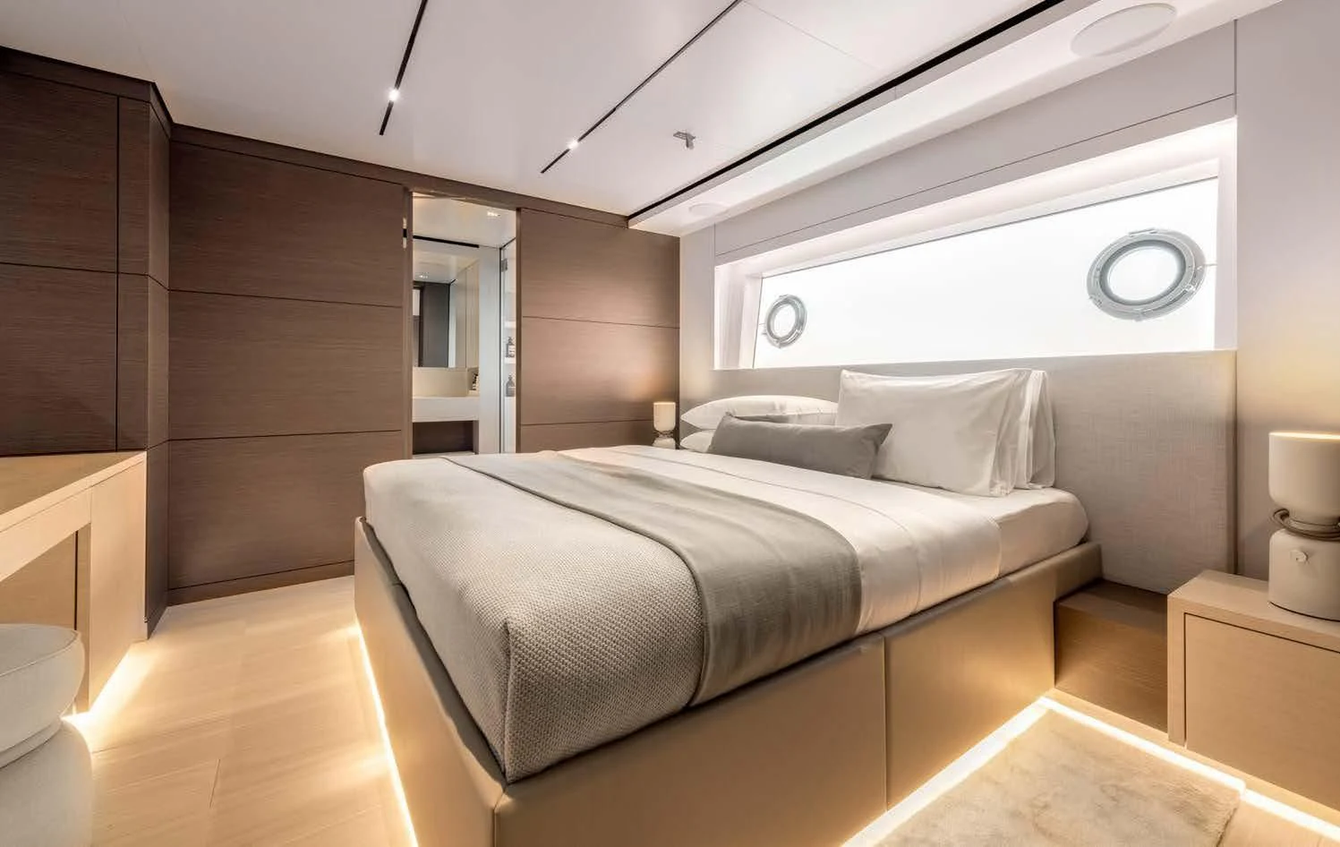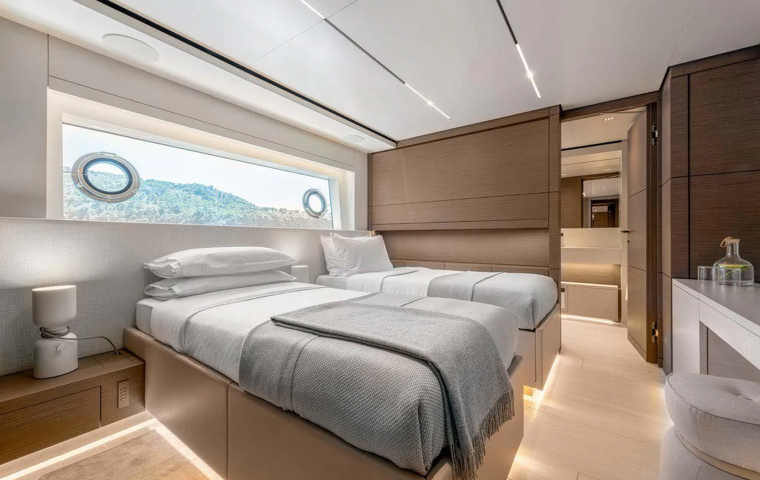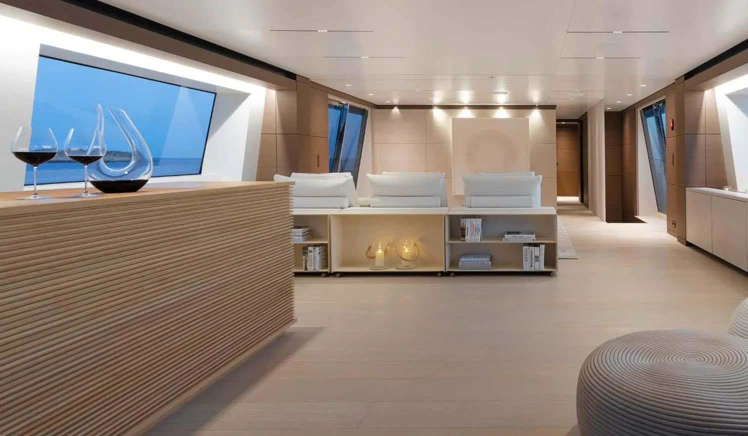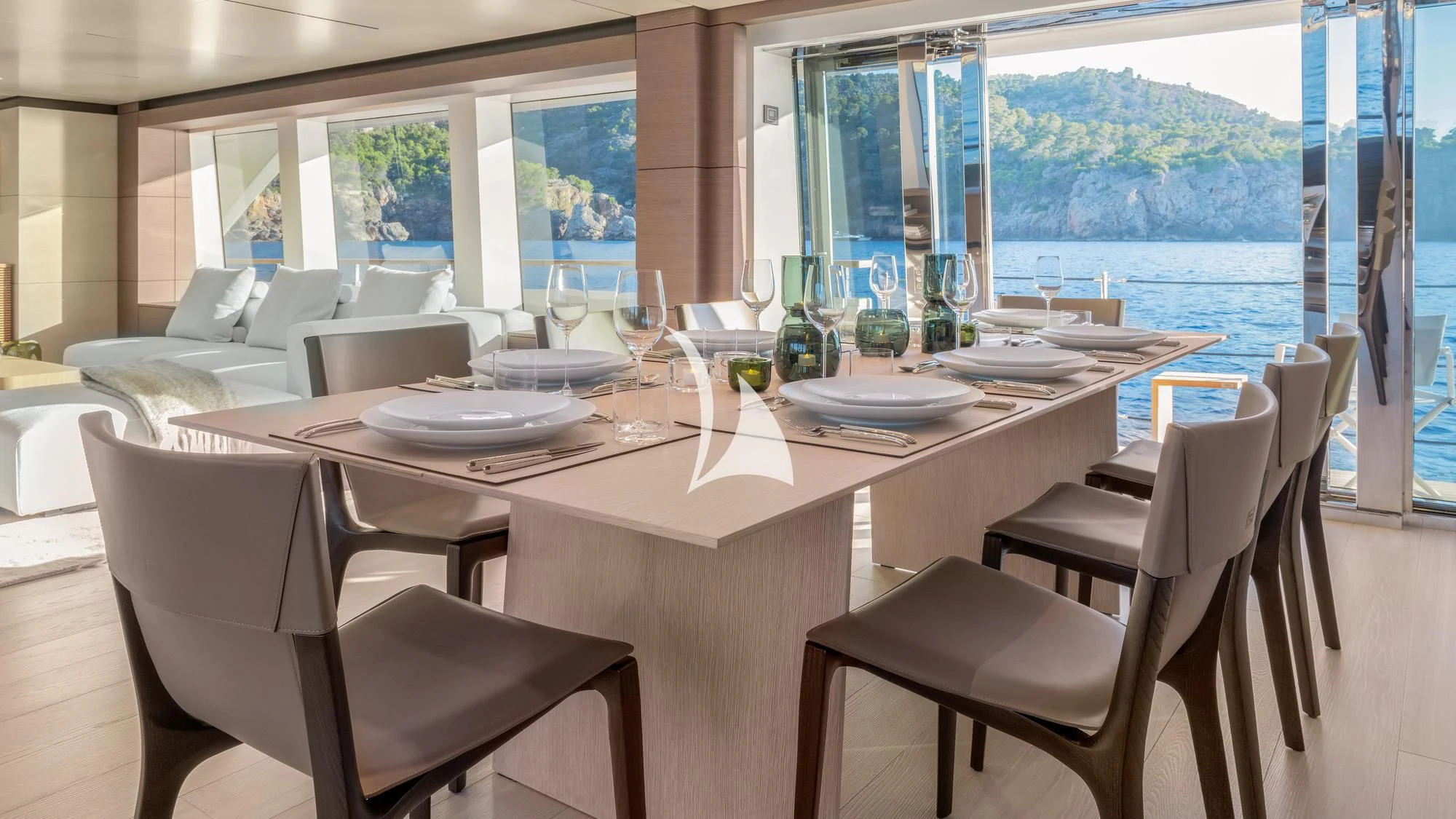 Step inside PALOMA to discover an interior that blends contemporary style with timeless luxury. Accommodating up to eleven guests across five cabins, each area within this floating palace has been meticulously designed to provide ultimate comfort and convenience. The master stateroom showcases opulence at its finest; it's a serene sanctuary complete with plush furnishings and premium amenities. For those who wish to maintain their fitness routine while aboard, there’s an onboard gym equipped with top-tier equipment – all complemented by breathtaking sea views.