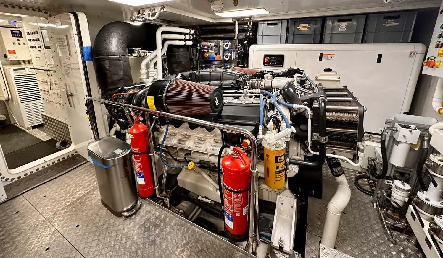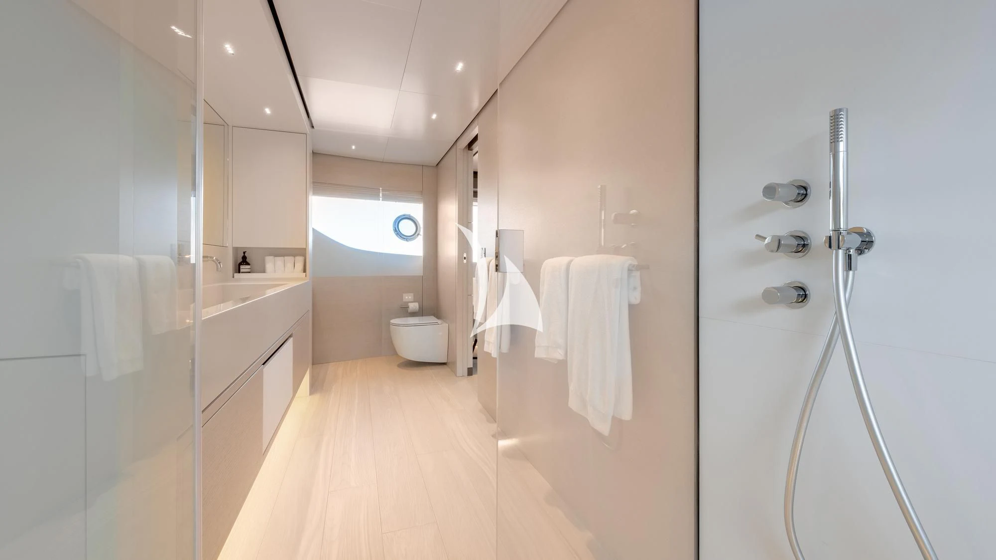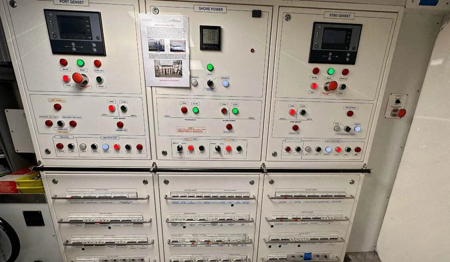 PALOMA ensures smooth sailing courtesy of its high-tech machinery including Naiad Dynamics bow thruster Model:24 (VT75) and stern thruster Model:20 (VT60). It also boasts Condaria air conditioning system rated at 720,000 BTU – ensuring optimal temperature control throughout the vessel regardless of external weather conditions. For added convenience during port visits, shore power Output:130A/90kw Unit Input:180-530VAC40-70hz is available as well.