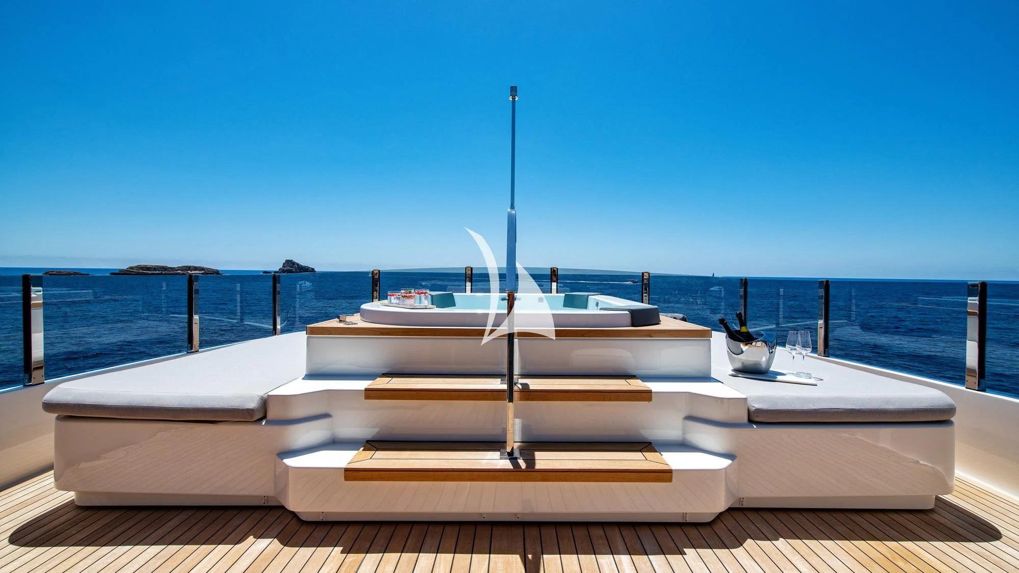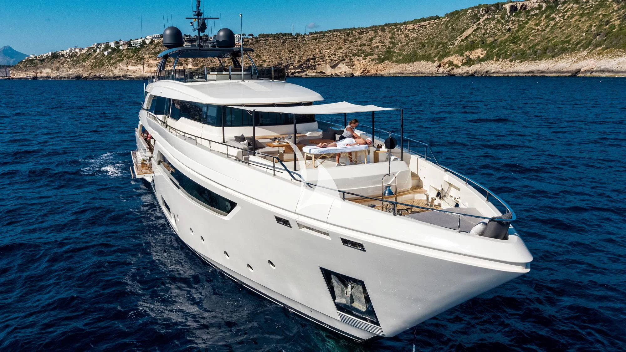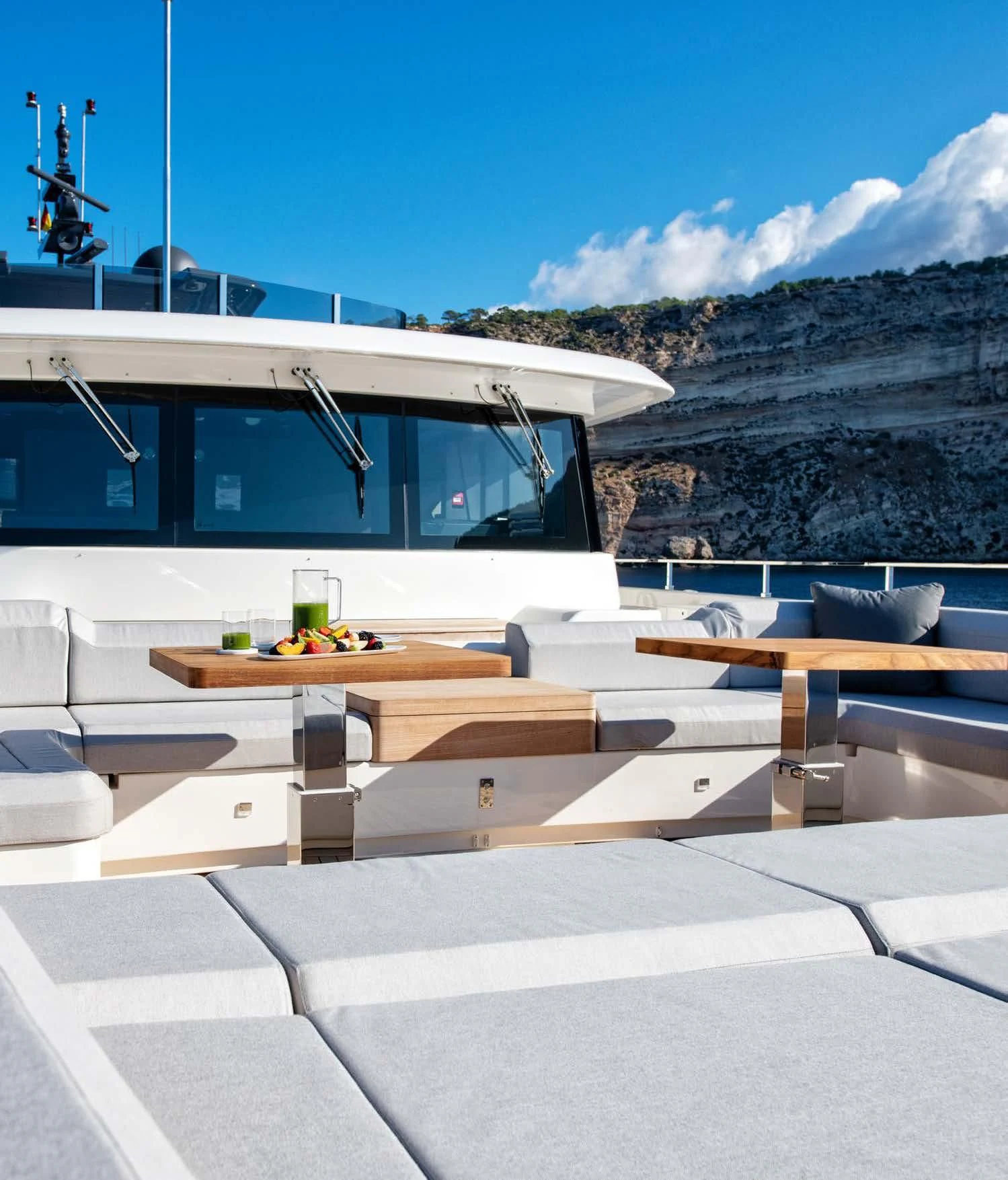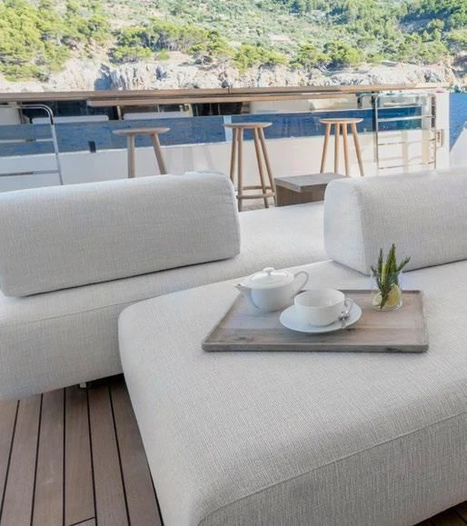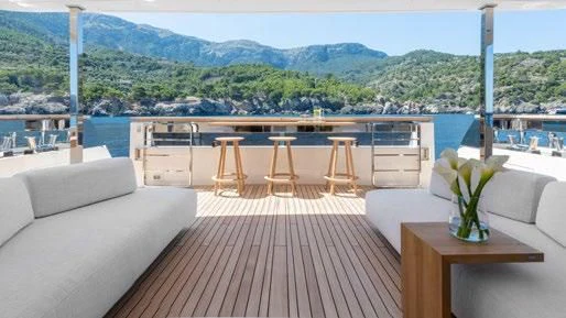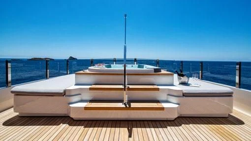 The exterior of PALOMA exudes elegance and power, with its sleek lines and commanding presence on the water. The expansive sundeck offers ample space for sunbathing or simply enjoying the view, while alfresco dining areas provide perfect settings for intimate meals or lively gatherings under open skies. A standout feature is undoubtedly its deck Jacuzzi - an ideal spot to unwind after a day packed with adventure.