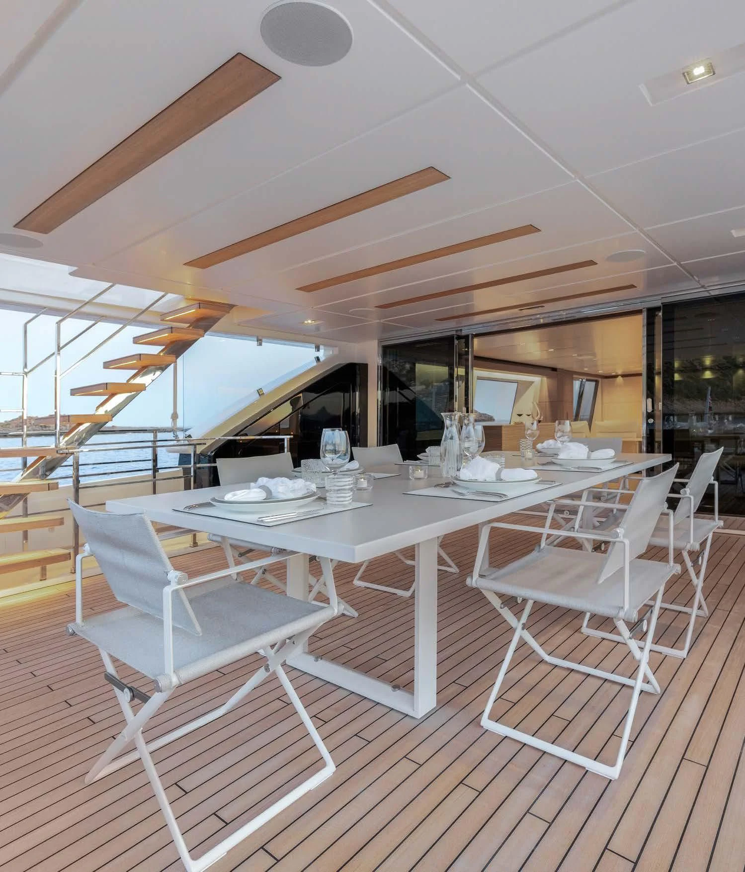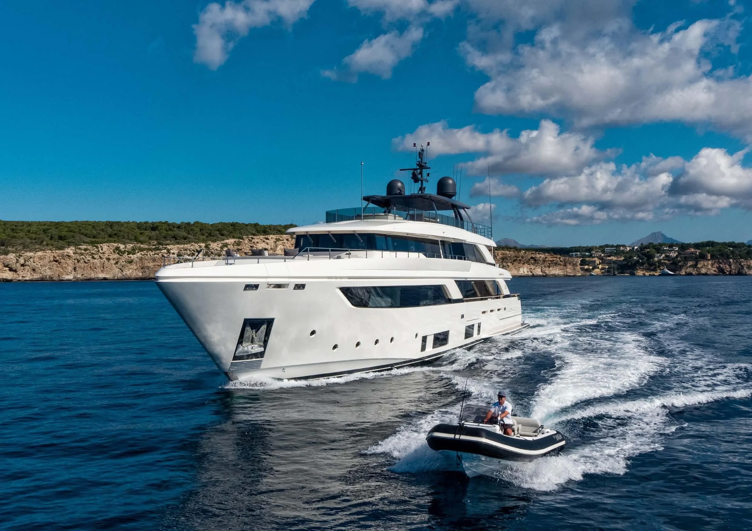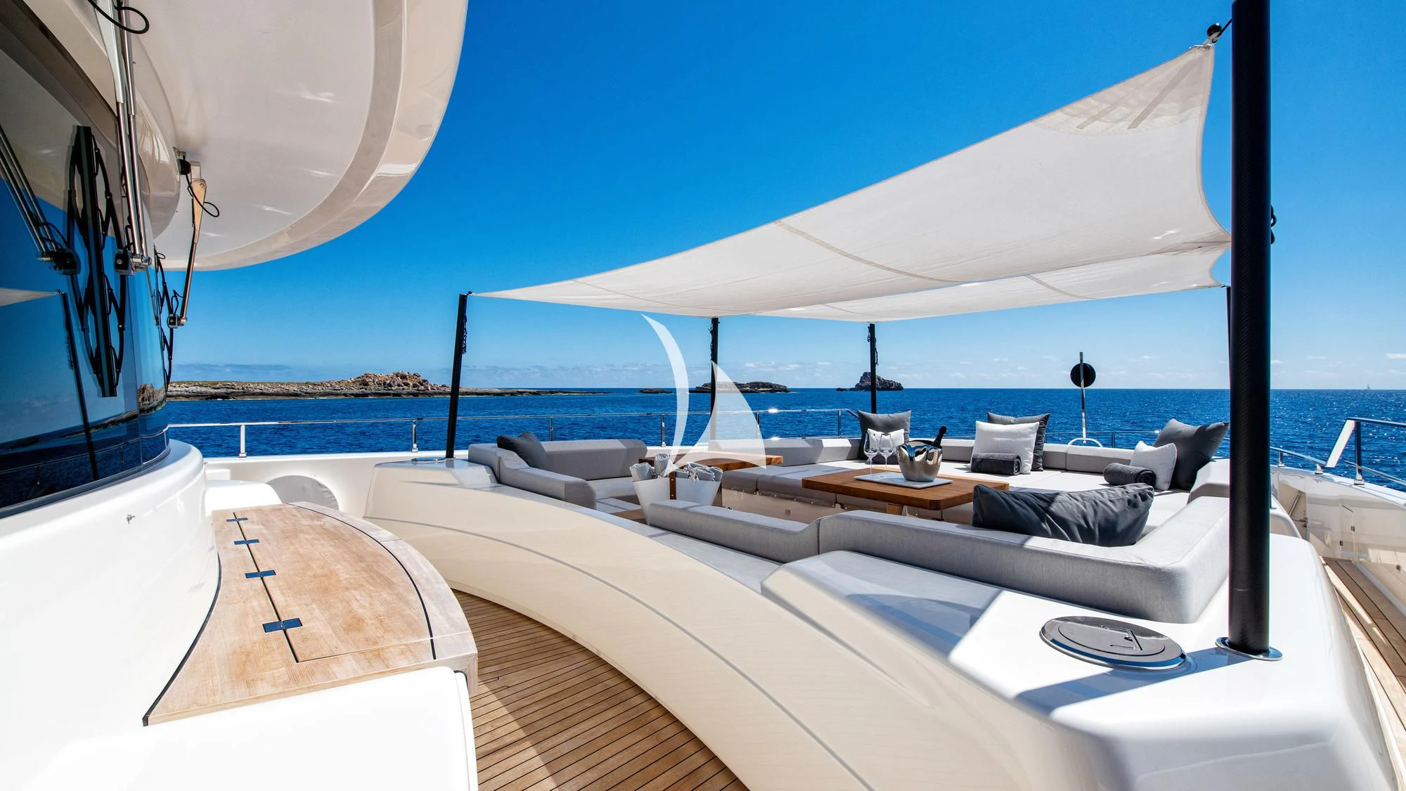 The exterior of PALOMA exudes elegance and power, with its sleek lines and commanding presence on the water. The expansive sundeck offers ample space for sunbathing or simply enjoying the view, while alfresco dining areas provide perfect settings for intimate meals or lively gatherings under open skies. A standout feature is undoubtedly its deck Jacuzzi - an ideal spot to unwind after a day packed with adventure.