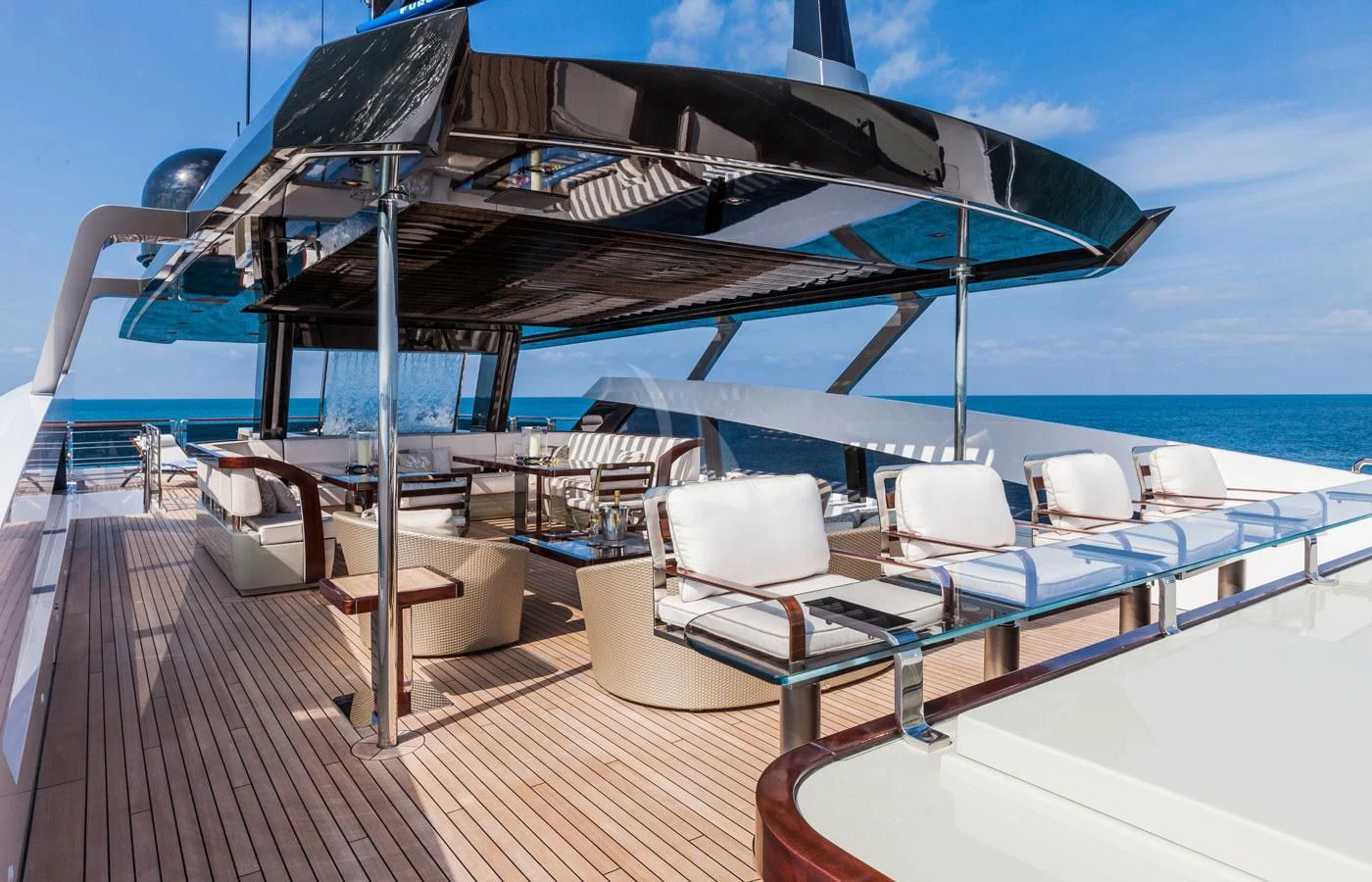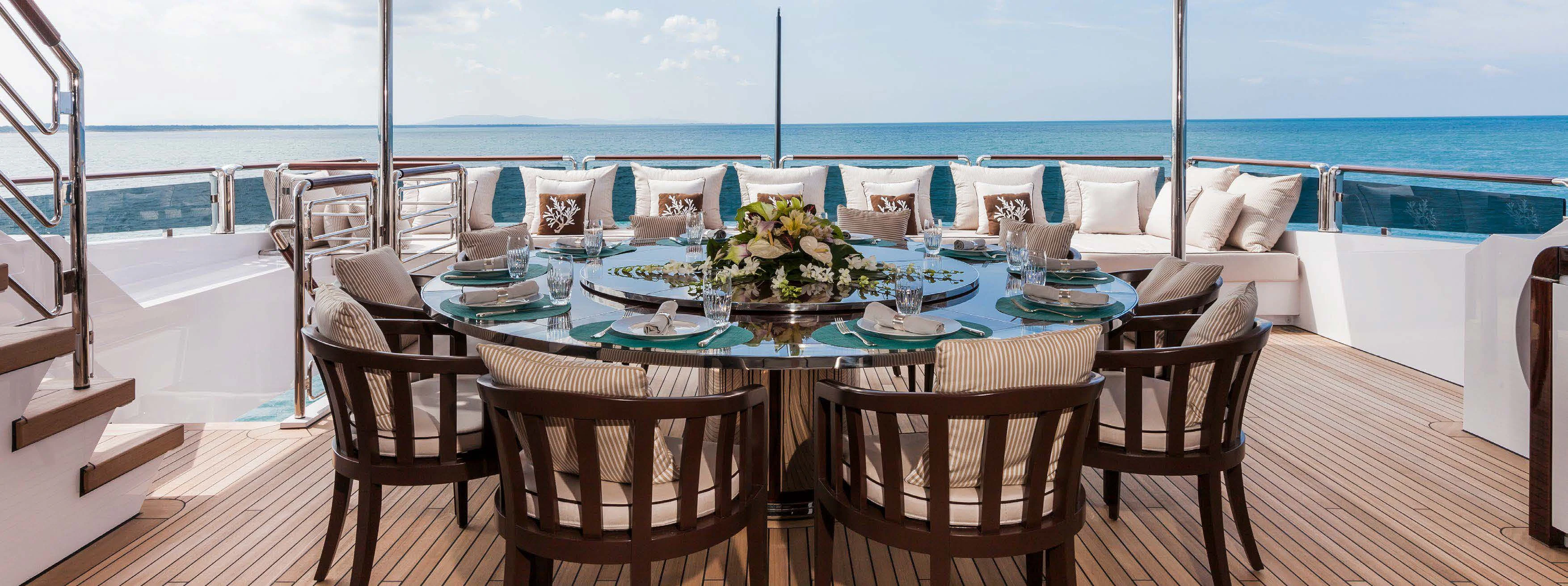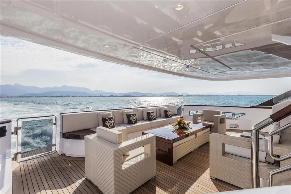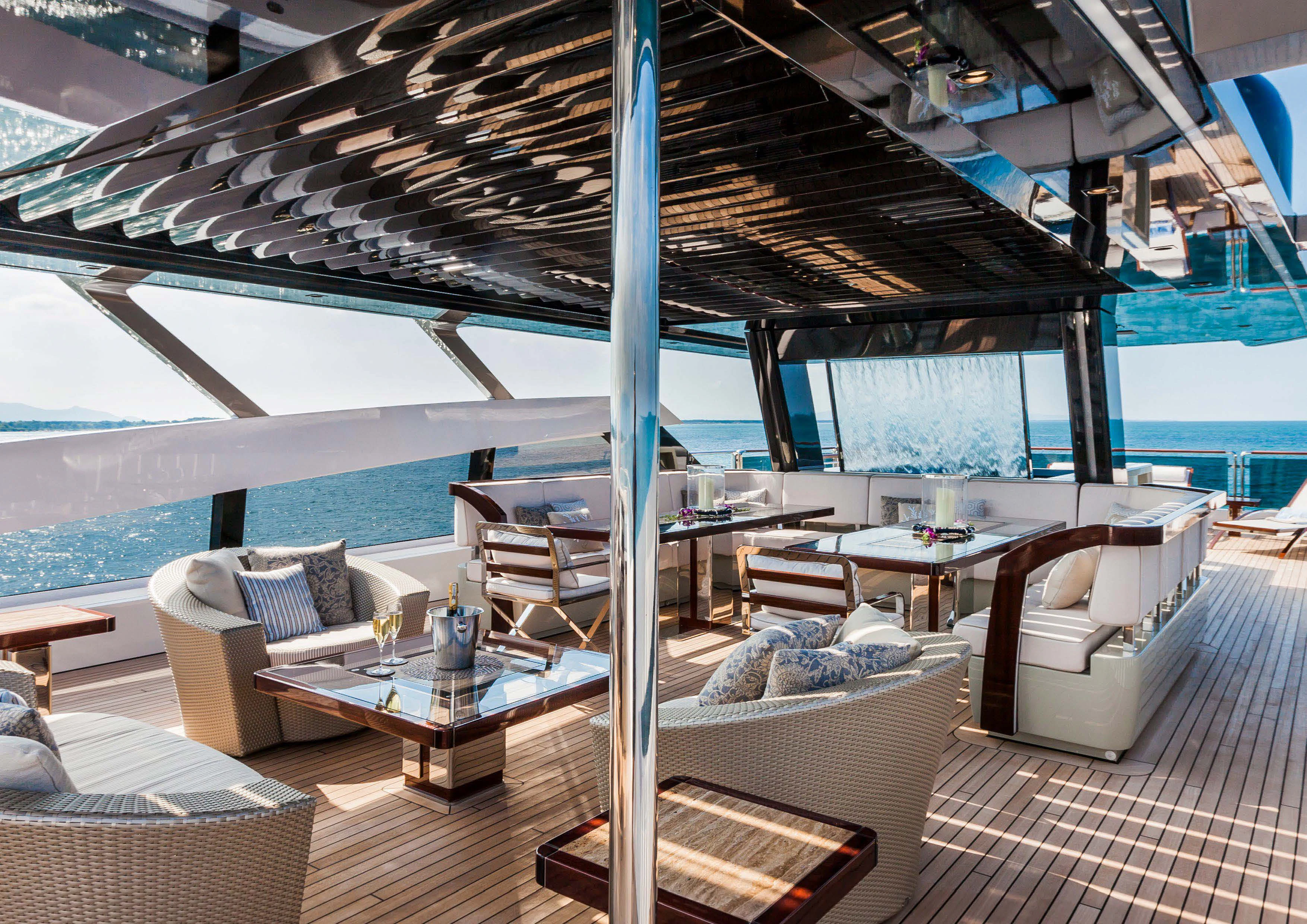 Upon setting foot on PARILLION's decks, one cannot help but marvel at the sheer volume of outdoor space available for relaxation or socializing. From sun-drenched sundecks perfect for lounging under azure skies to alfresco dining areas where guests can savor gourmet meals amidst stunning seascapes - every corner has been thoughtfully designed for ultimate enjoyment. The beam measures a generous 29 feet (8.9 meters) across, providing ample room for all onboard activities while maintaining stability during cruising at a comfortable speed of 15 knots.