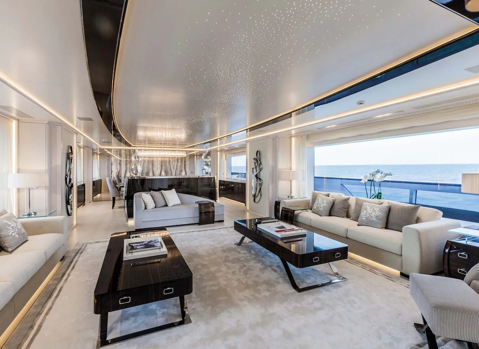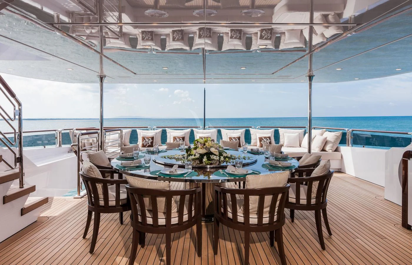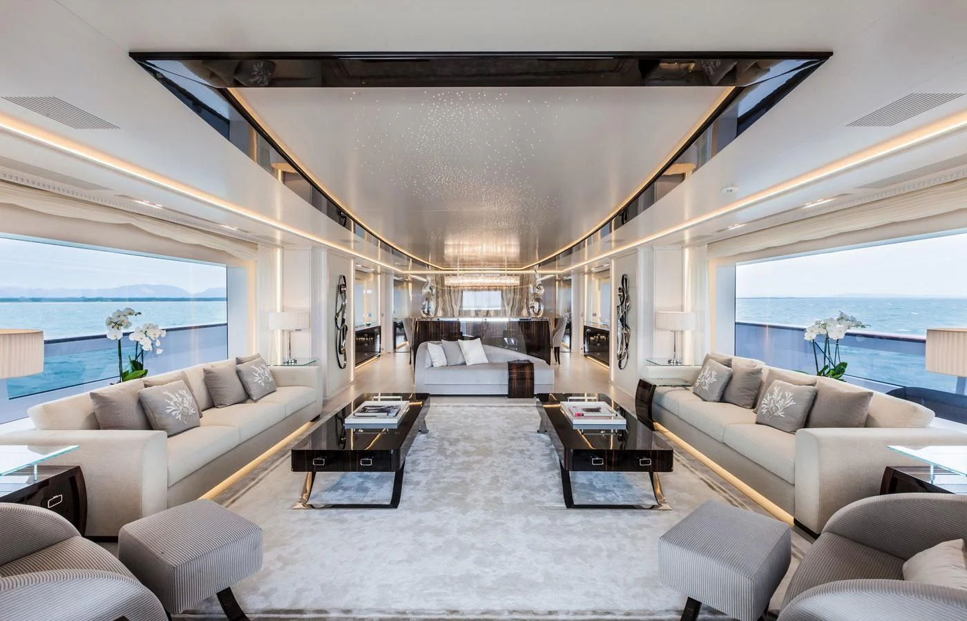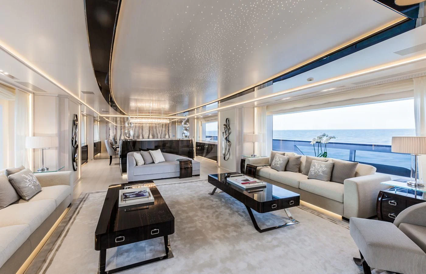 Upon setting foot on PARILLION's decks, one cannot help but marvel at the sheer volume of outdoor space available for relaxation or socializing. From sun-drenched sundecks perfect for lounging under azure skies to alfresco dining areas where guests can savor gourmet meals amidst stunning seascapes - every corner has been thoughtfully designed for ultimate enjoyment. The beam measures a generous 29 feet (8.9 meters) across, providing ample room for all onboard activities while maintaining stability during cruising at a comfortable speed of 15 knots.
