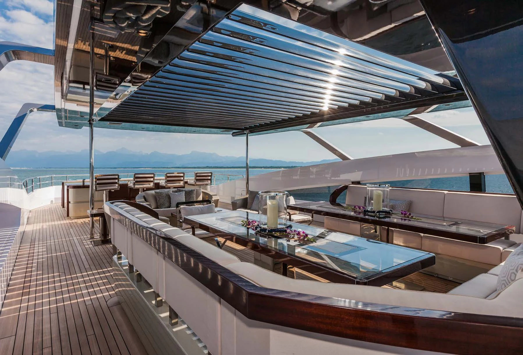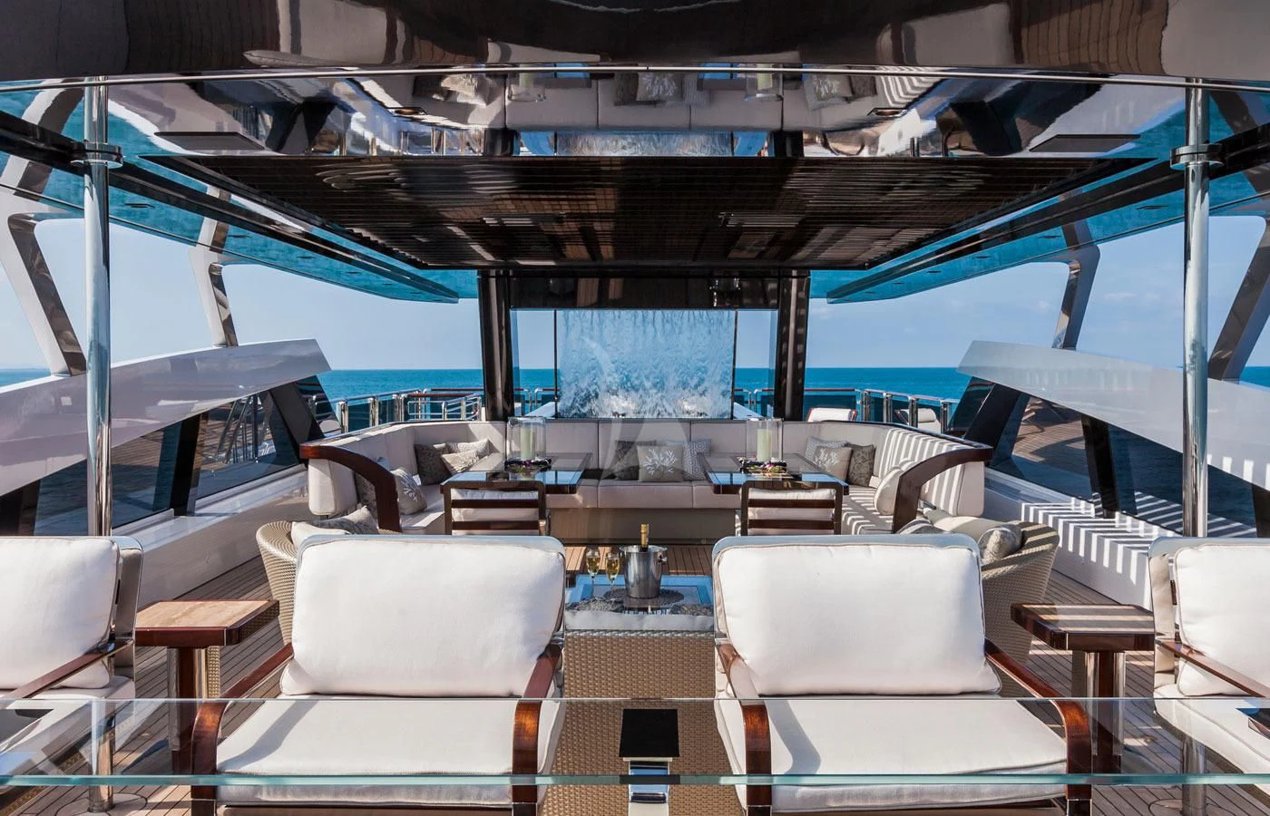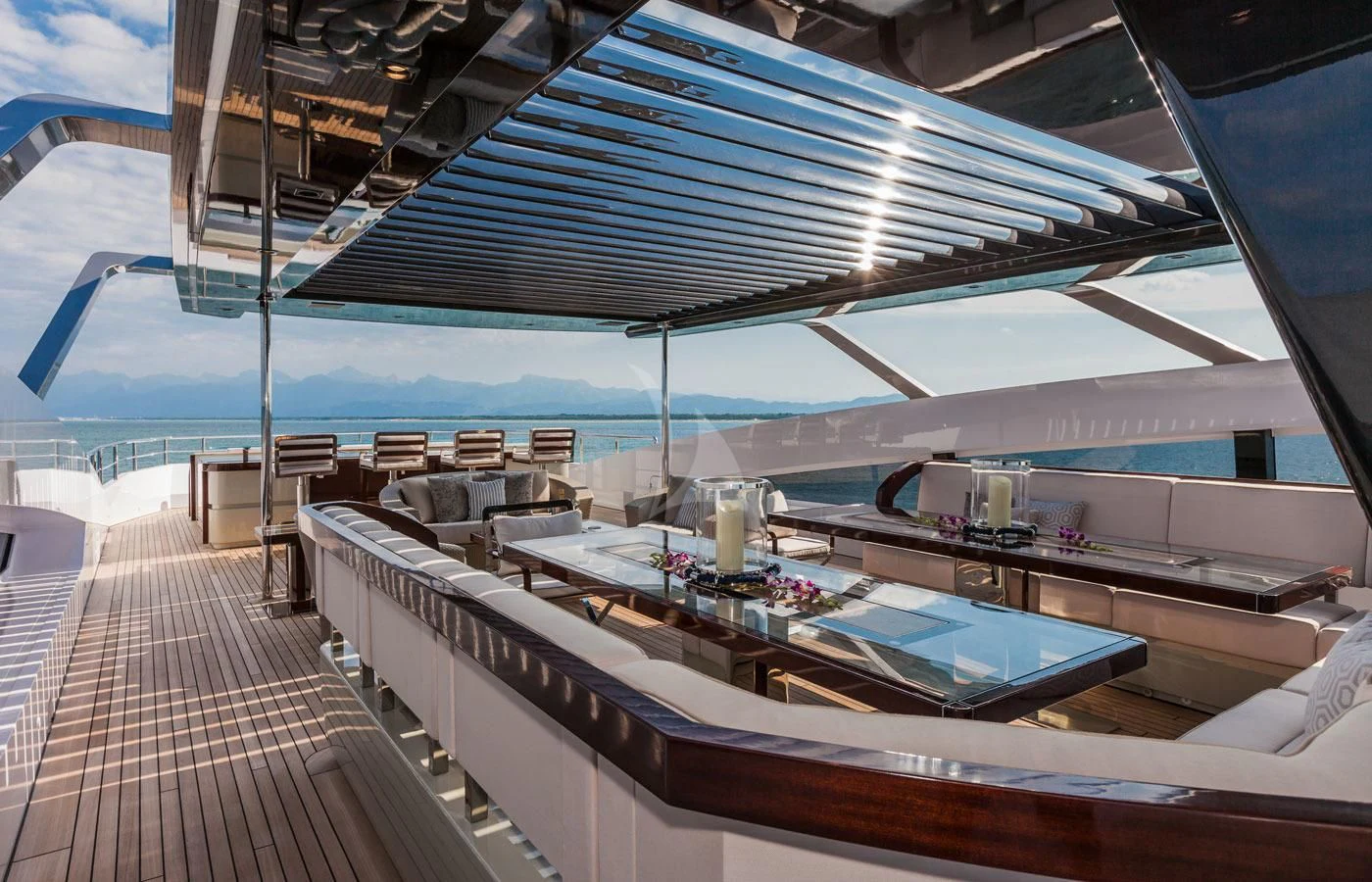 Upon setting foot on PARILLION's decks, one cannot help but marvel at the sheer volume of outdoor space available for relaxation or socializing. From sun-drenched sundecks perfect for lounging under azure skies to alfresco dining areas where guests can savor gourmet meals amidst stunning seascapes - every corner has been thoughtfully designed for ultimate enjoyment. The beam measures a generous 29 feet (8.9 meters) across, providing ample room for all onboard activities while maintaining stability during cruising at a comfortable speed of 15 knots.