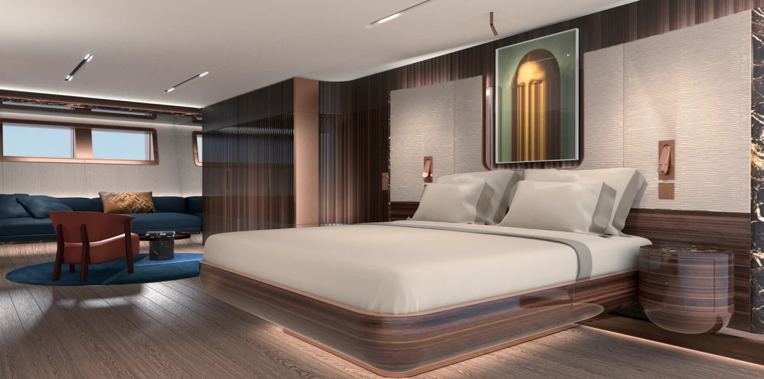 Stepping inside PERINI 47-M is akin to entering a floating palace; every corner speaks volumes about its superior interior design and meticulous attention to detail. Accommodating up to ten guests within its four lavish cabins, this superyacht ensures comfort is never compromised upon. The master stateroom stands as a symbol of opulence with its tasteful decor, high-quality furnishings, and state-of-the-art amenities - truly a private haven for those who appreciate luxury living at sea.