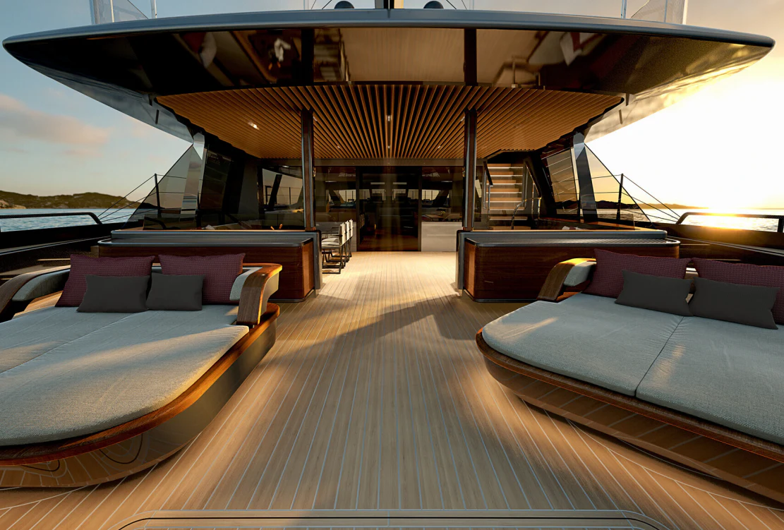 Introducing the magnificent PERINI 47-M, a custom model sailing superyacht that exudes luxury and sophistication. Launched by esteemed builder Perini Navi in 2024, this splendid vessel is a testament to exceptional craftsmanship and design prowess. With an impressive length of 154 feet (47 meters), she boasts an imposing presence on the water. Her exterior, sculpted from durable aluminum, showcases the perfect blend of strength and elegance. The yacht's beam stretches to 34 feet (10.5 meters), providing ample space for luxurious amenities and leisure areas.
