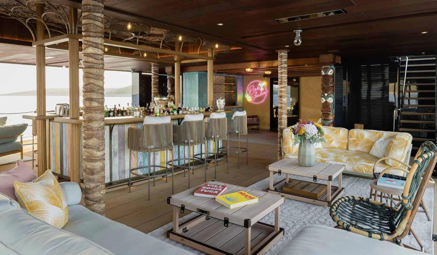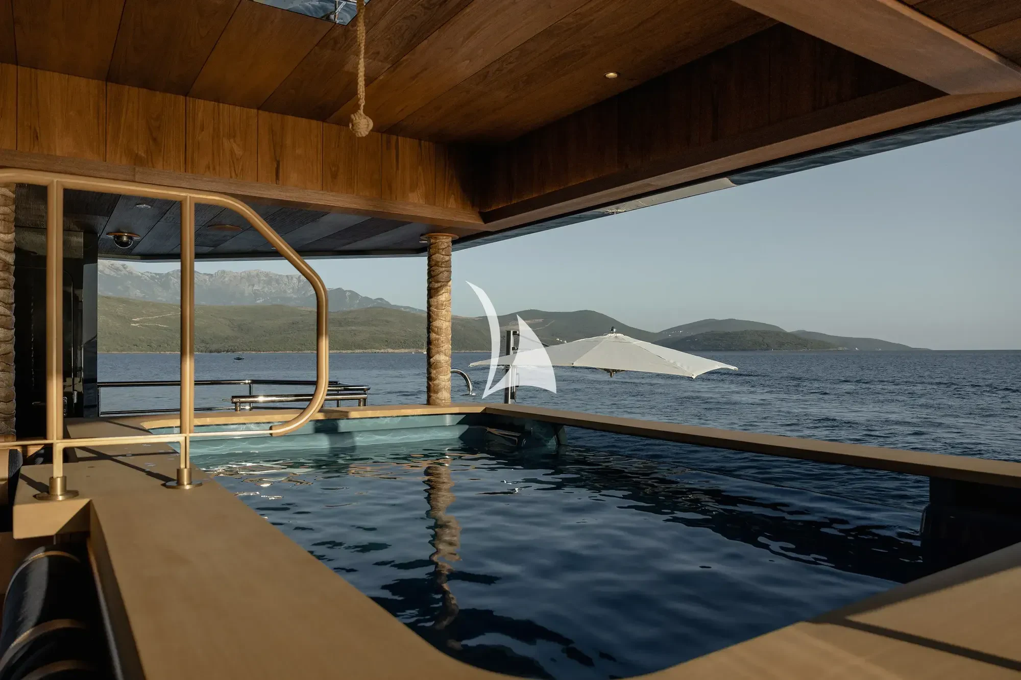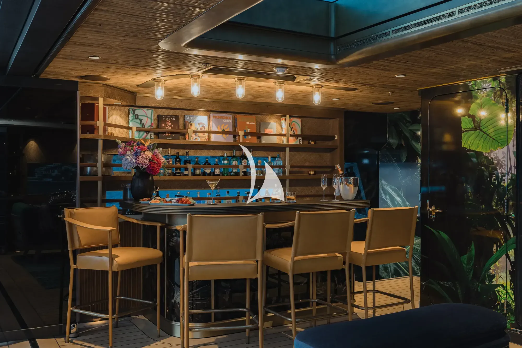 PINK SHADOW's interior is as impressive as its exterior with amenities that would put any five-star hotel to shame – from a well-equipped Beach Club for relaxation by the sea, a bubbling Jacuzzi for unwinding after a long day exploring exotic locales, Wi-Fi connectivity ensuring you’re always connected with the outside world even when sailing across vast oceans, right down to an elevator providing easy access across floors.