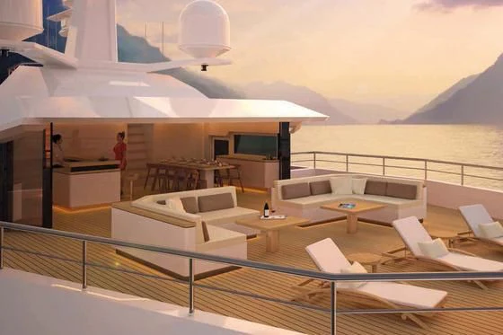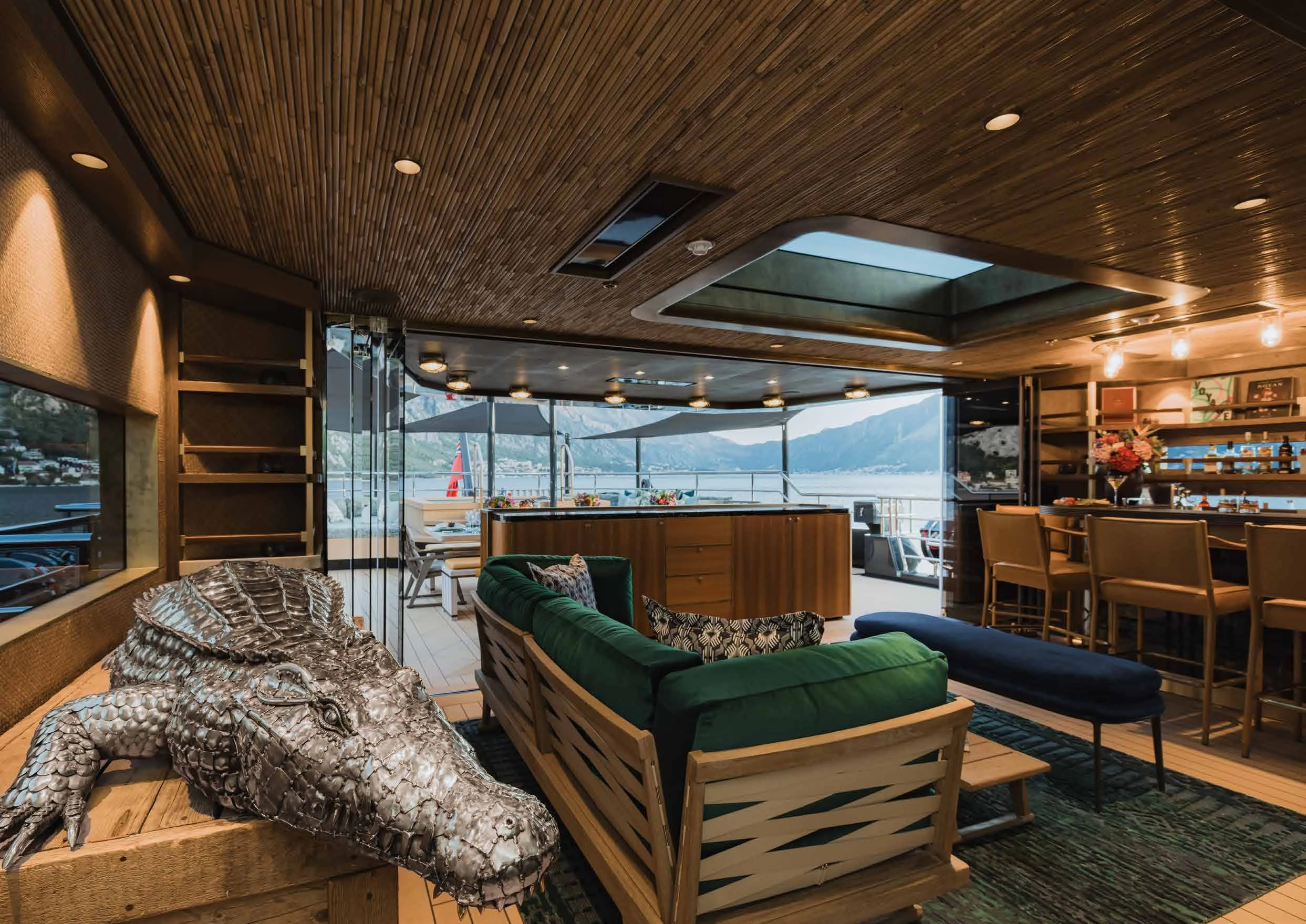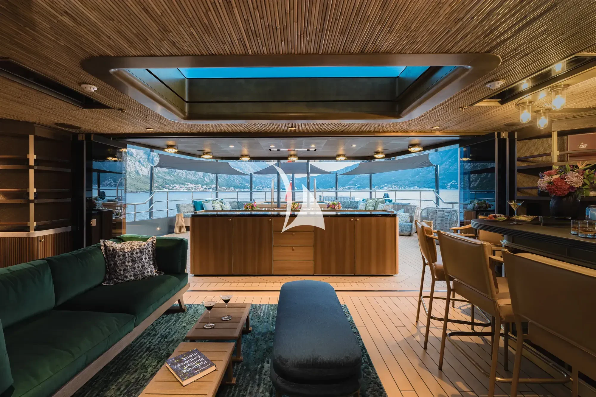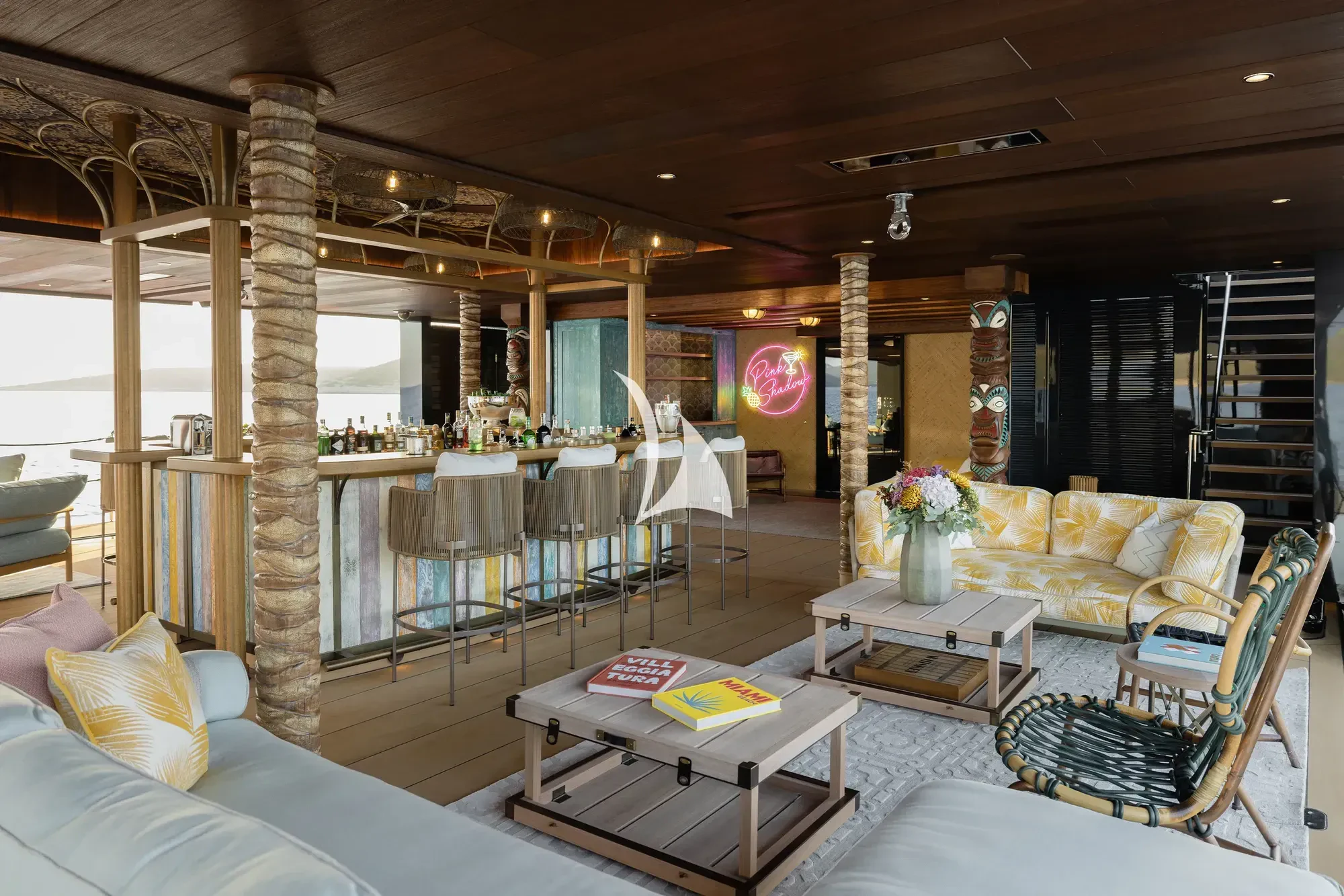 PINK SHADOW's interior is as impressive as its exterior with amenities that would put any five-star hotel to shame – from a well-equipped Beach Club for relaxation by the sea, a bubbling Jacuzzi for unwinding after a long day exploring exotic locales, Wi-Fi connectivity ensuring you’re always connected with the outside world even when sailing across vast oceans, right down to an elevator providing easy access across floors.