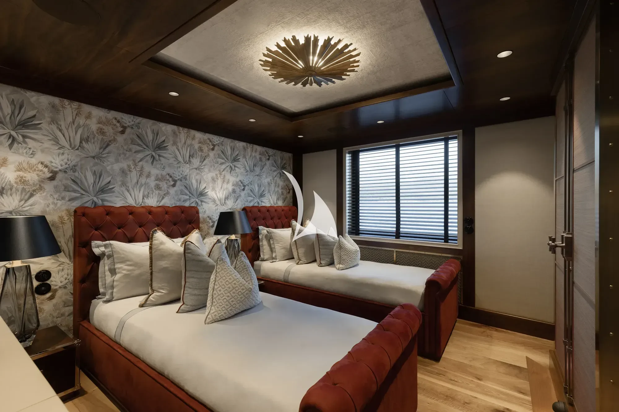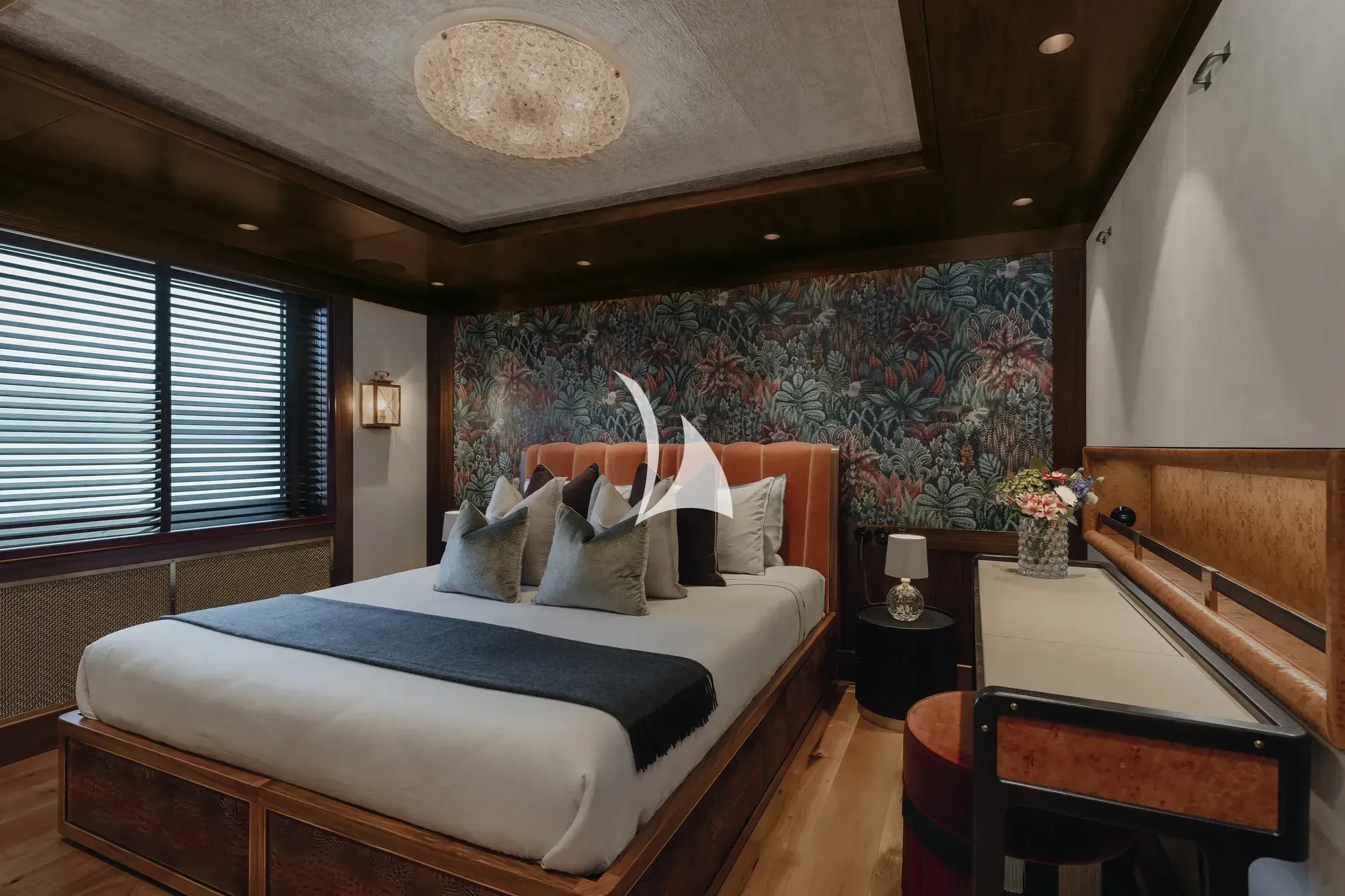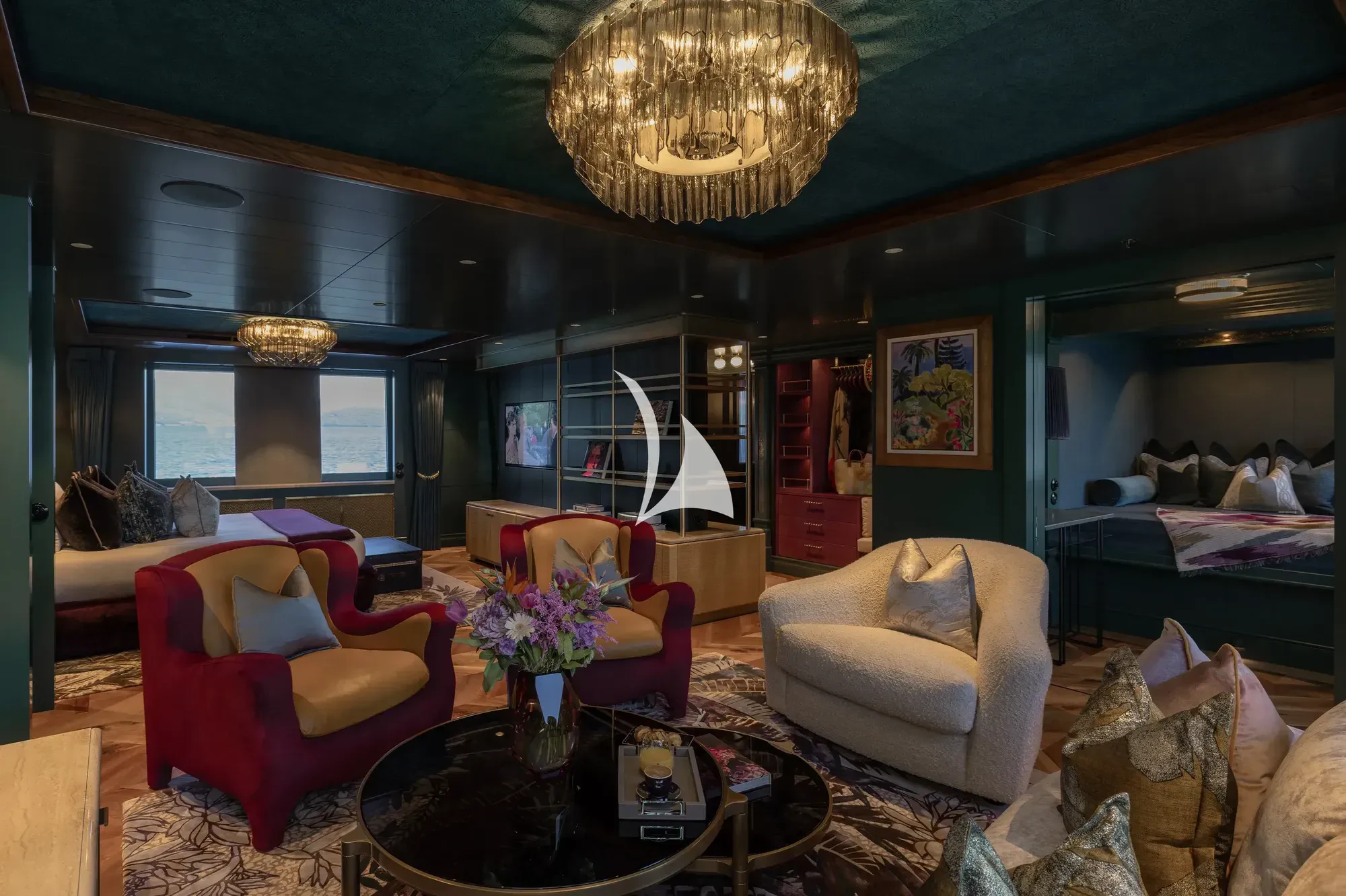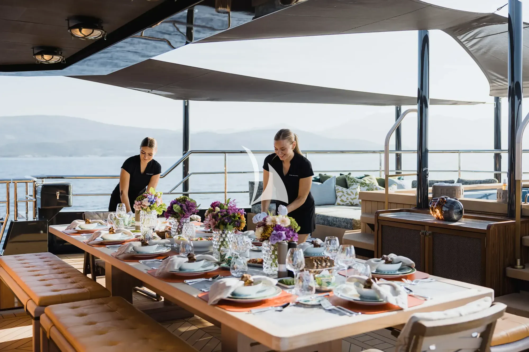 Step aboard PINK SHADOW and you'll find yourself surrounded by six luxurious cabins designed to accommodate up to twelve guests in utter comfort, ensuring privacy without compromising on space or luxury. An attentive crew team comprising eighteen members ensures every need is catered for during your voyage on this magnificent vessel.