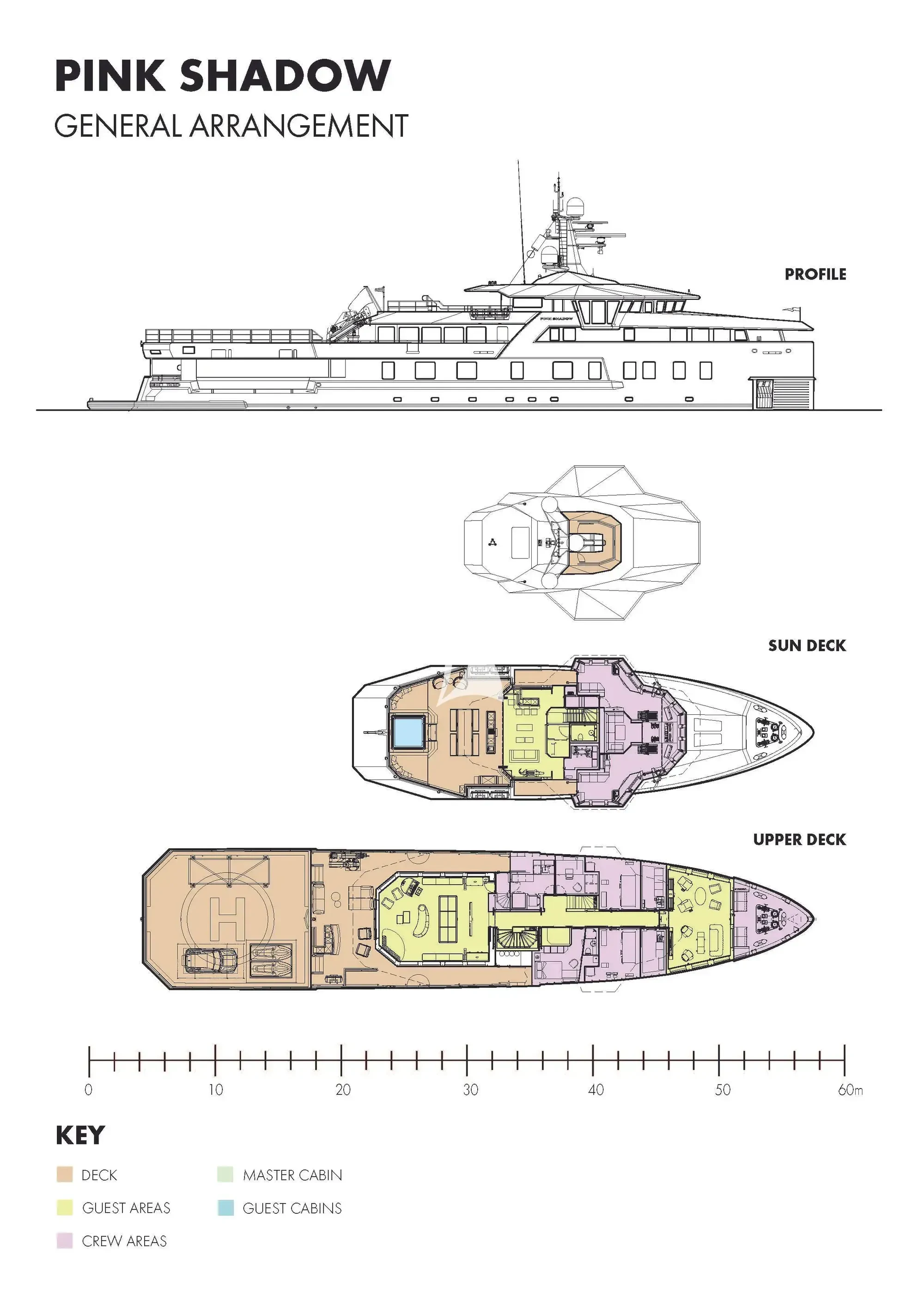 But what truly sets PINK SHADOW apart from other yachts are its unique features like the Helipad which gives guests the freedom and convenience for air travel directly from the yacht itself! So whether you're looking forward to exploring uncharted territories on your next expedition trip or simply wish to experience life at sea in grand style - look no further than PINK SHADOW!
