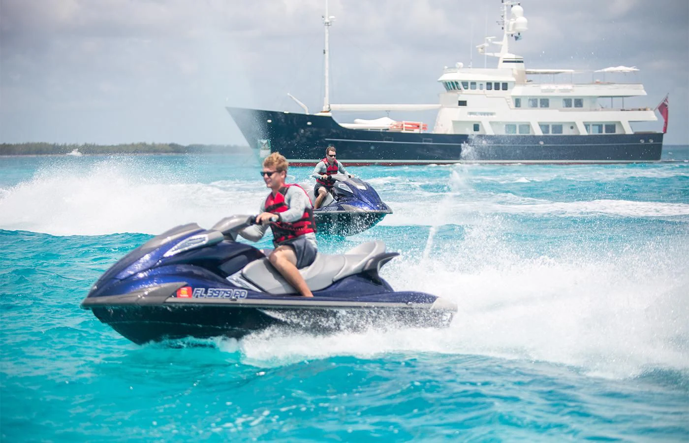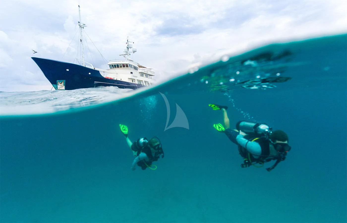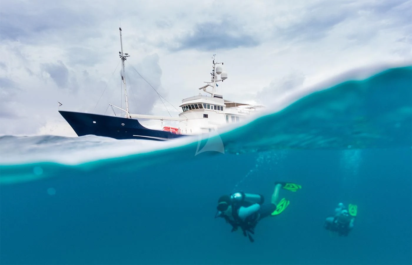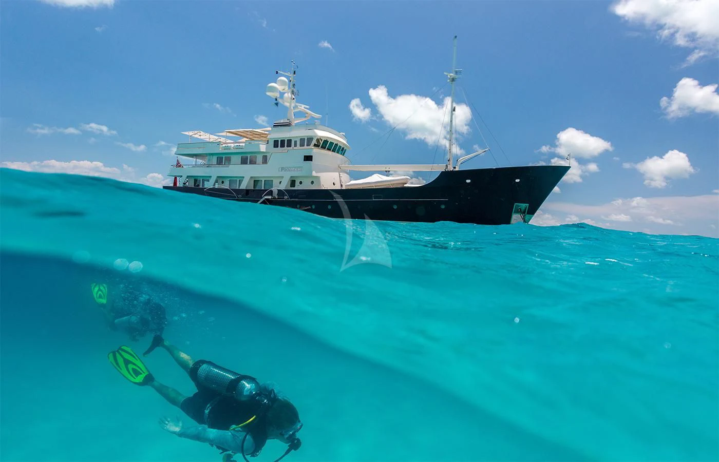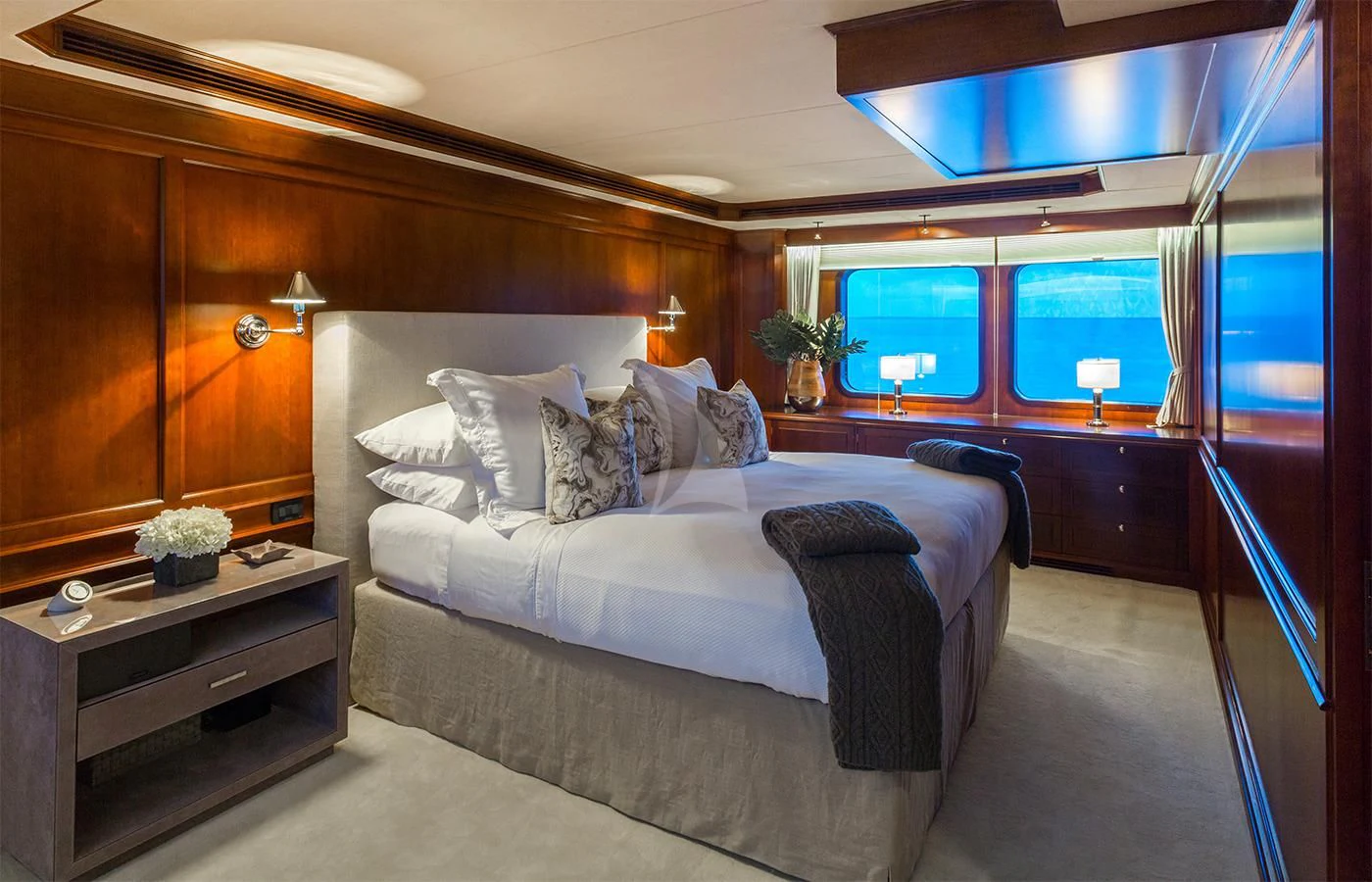PIONEER comfortably accommodates ten guests across five lavish cabins - each thoughtfully designed to offer ultimate comfort paired with stunning views through large picture windows that let natural light flood into these private sanctuaries at sea level. The master stateroom stands out as a luxurious retreat featuring king-size bed draped in fine linens, ample storage space for personal belongings, en-suite bathroom fitted with premium fixtures including Jacuzzi tubs for ultimate relaxation after a day full of adventure.