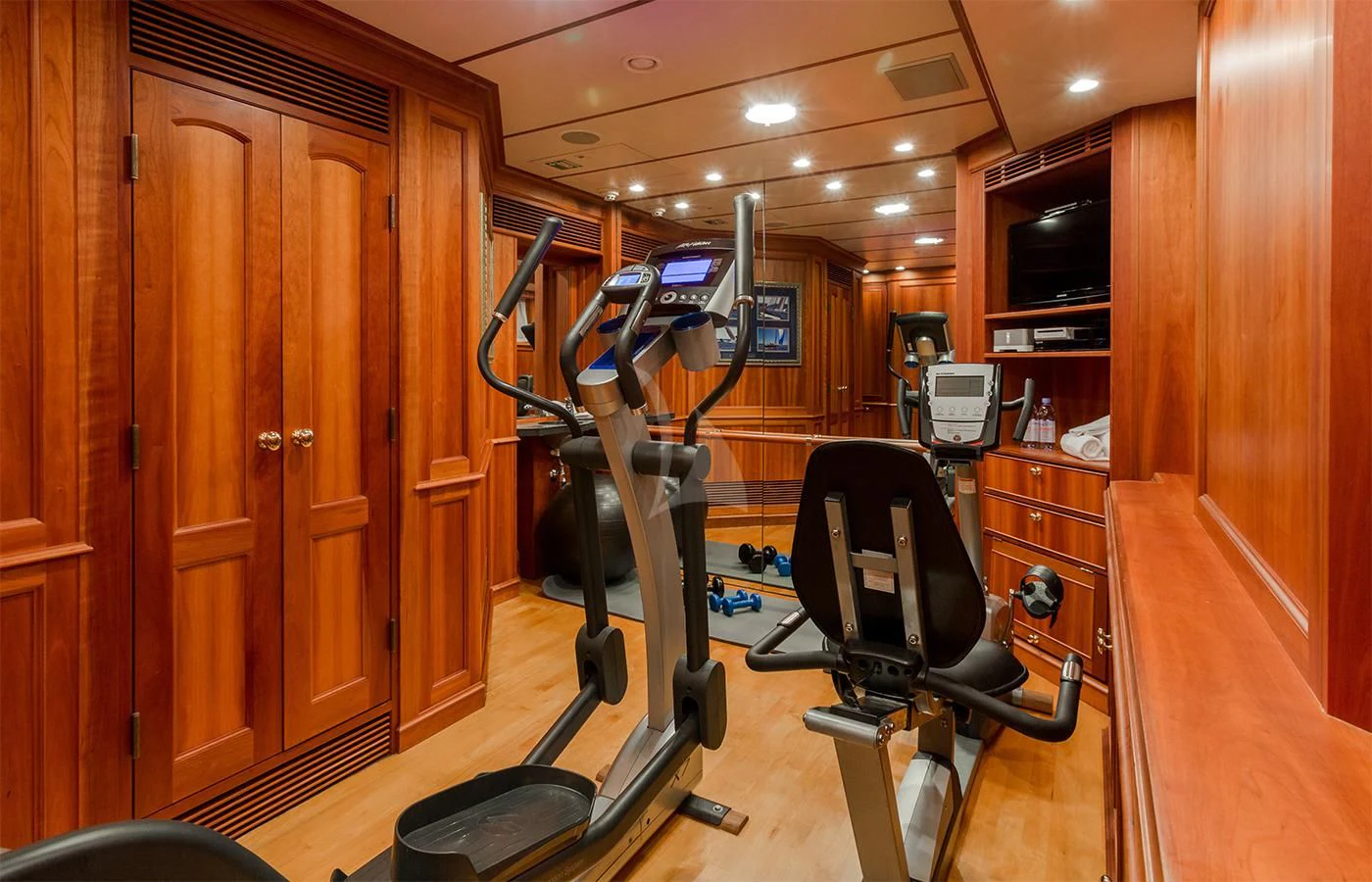But what truly sets PIONEER apart from other yachts in its class is its range of onboard amenities which includes Wi-Fi connectivity throughout so you can stay connected even while sailing across remote waters; also present onboard is a fully equipped gymnasium where fitness enthusiasts can keep up their workout routine without missing out on any fun during their voyage aboard this magnificent yacht.