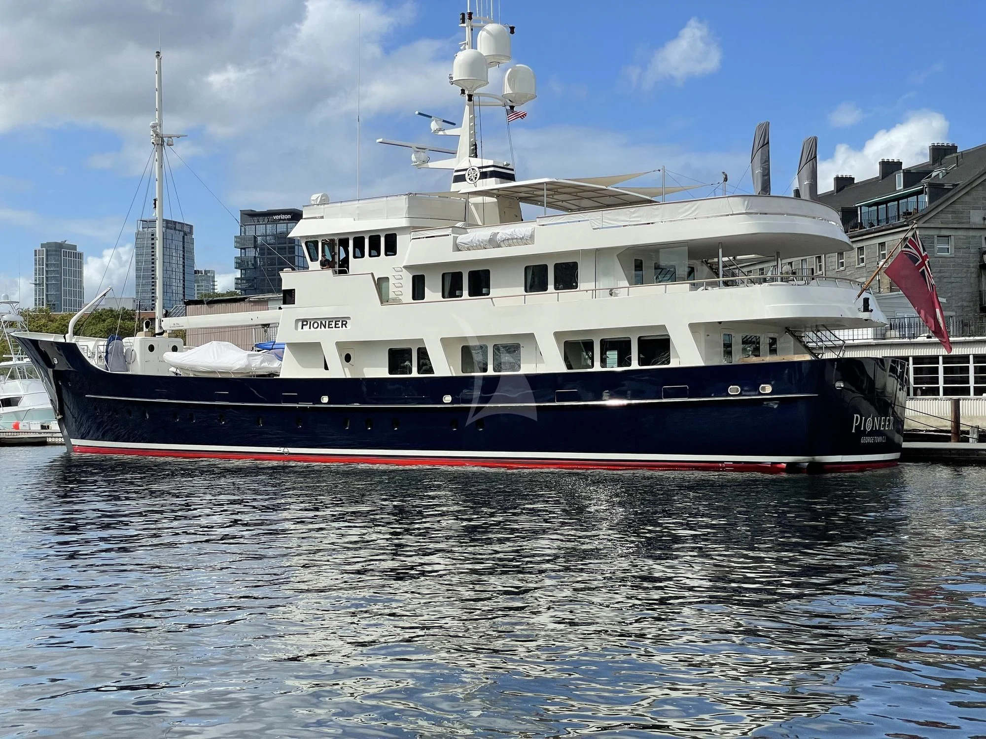 Introducing, PIONEER, a striking testament to the craftsmanship of Palmer Johnson. Launched in 1996 and meticulously refitted in 2015, this custom model expedition yacht showcases an exquisite blend of robust engineering and luxurious aesthetics. With a length overall (LOA) of 150 feet or approximately 46.2 meters, PIONEER is an embodiment of grandeur and elegance on the high seas. The hull material is aluminum, giving her strength yet lightness for smooth cruising at speeds up to 15.4 knots with a cruising speed of about 12.5 knots.