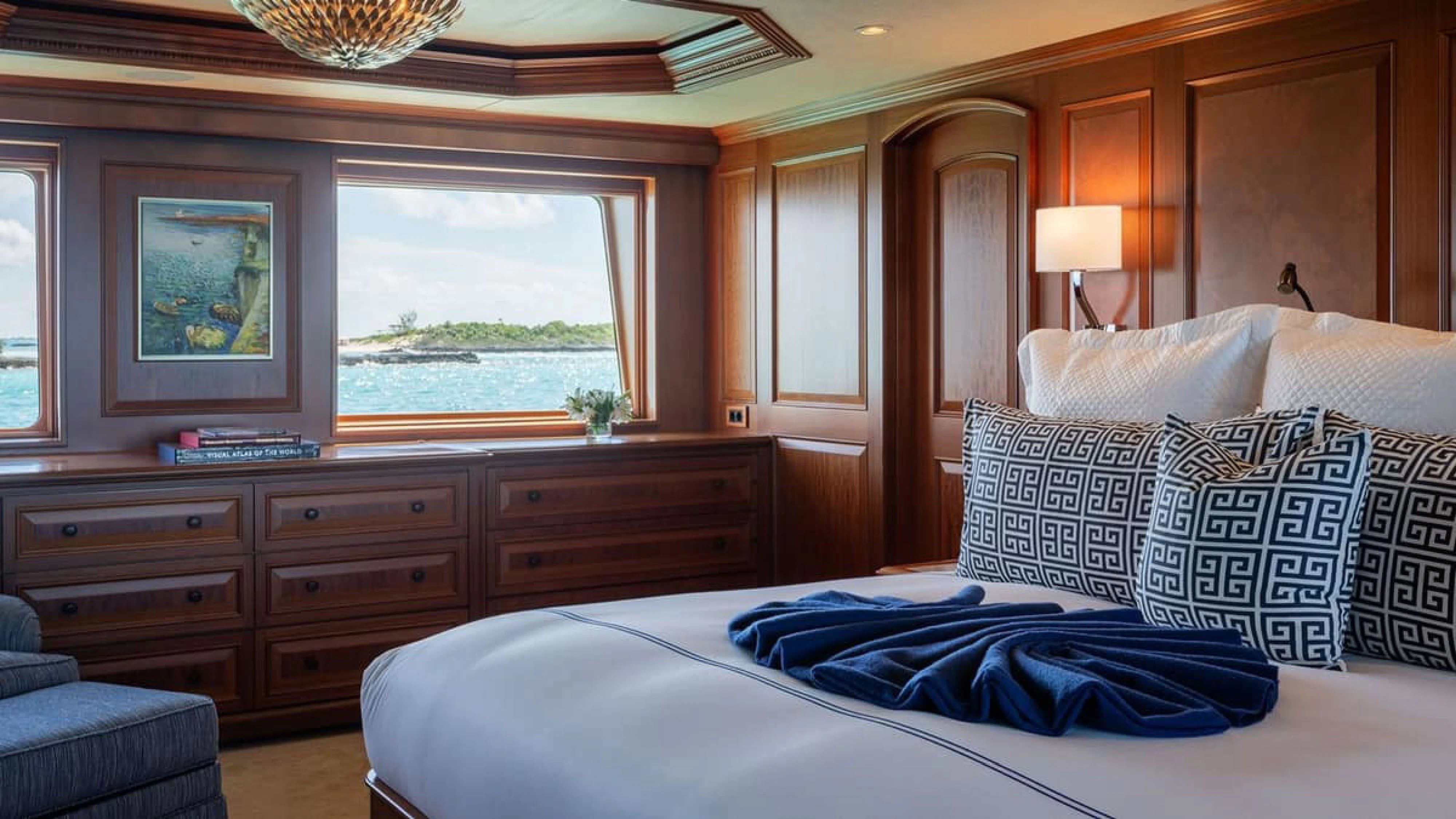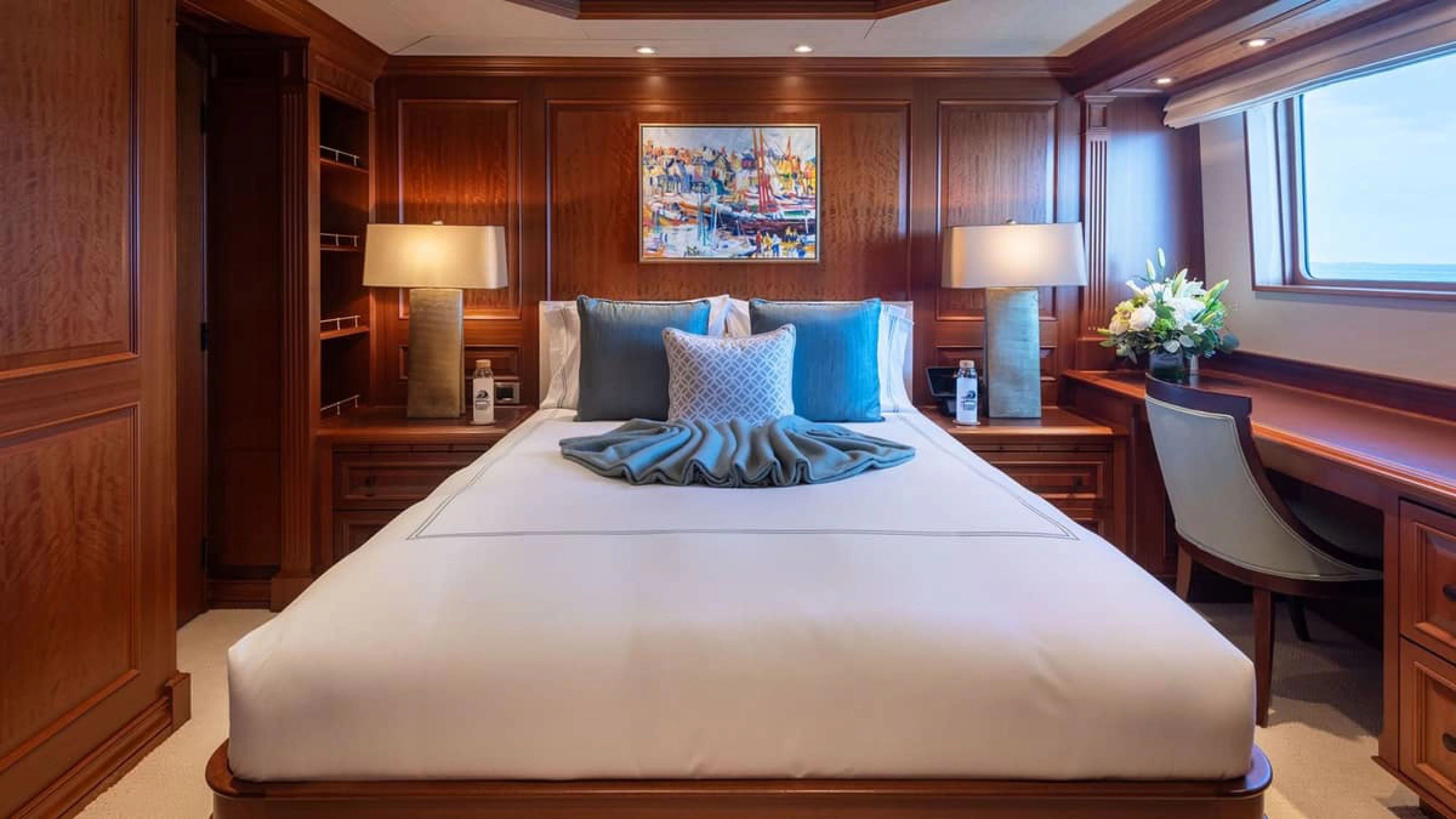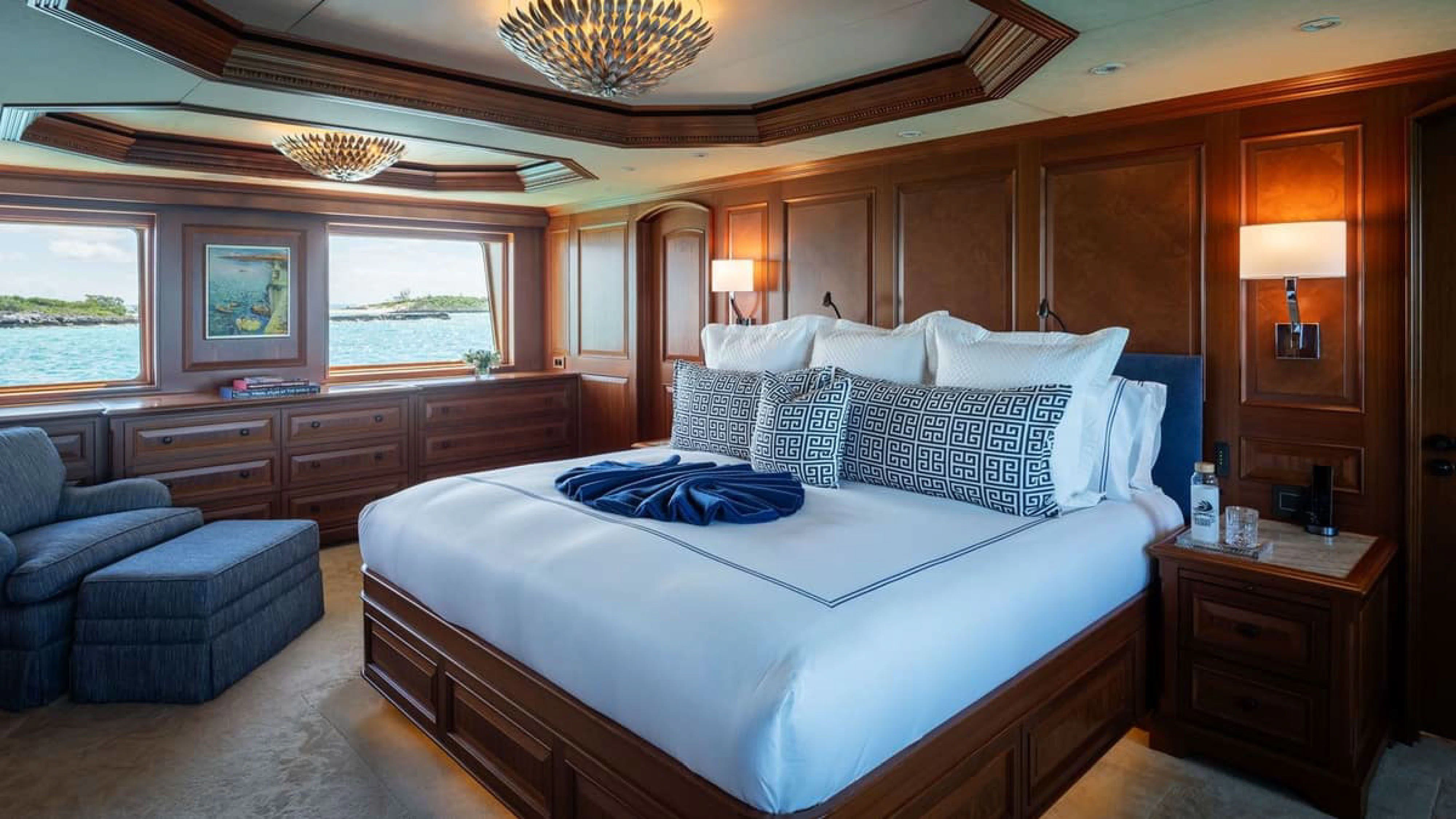 Step inside CROSSED SABRE to discover an interior that exudes sophistication and comfort. Seven sumptuous cabins accommodate up to twelve guests, ensuring everyone experiences unparalleled luxury during their stay aboard this floating palace. The master stateroom stands as a testament to ultimate indulgence with opulent furnishings, lavish en-suite facilities, and breathtaking views from expansive windows.
