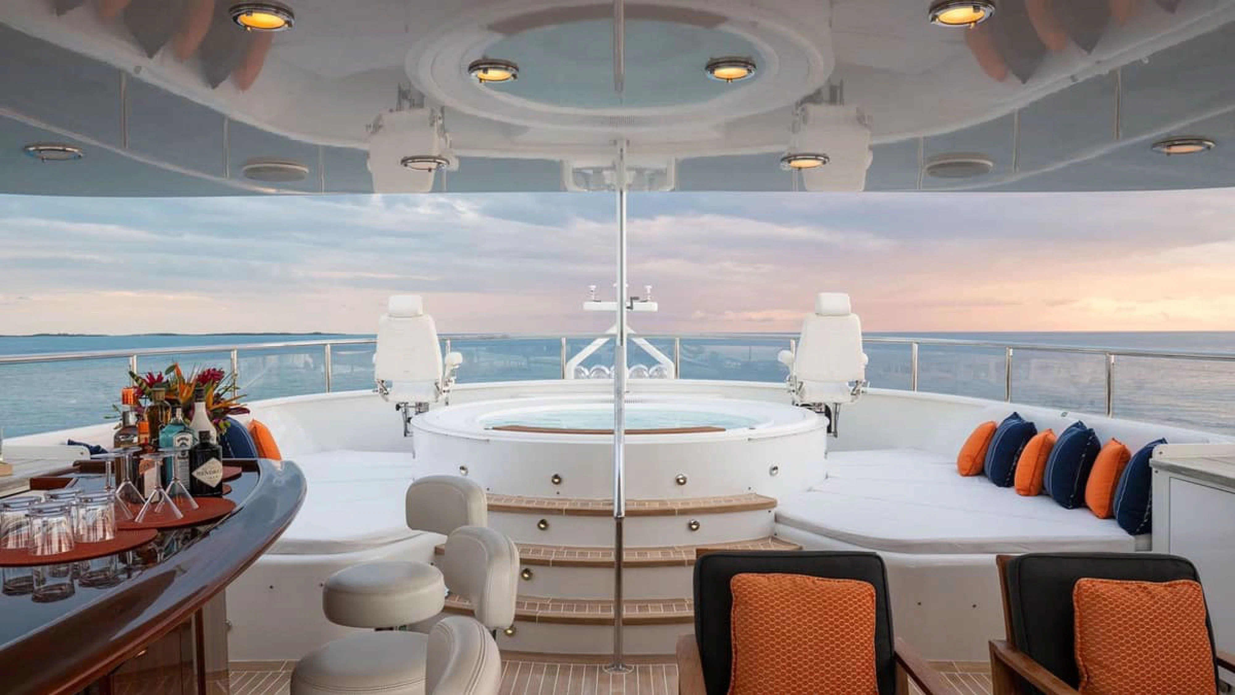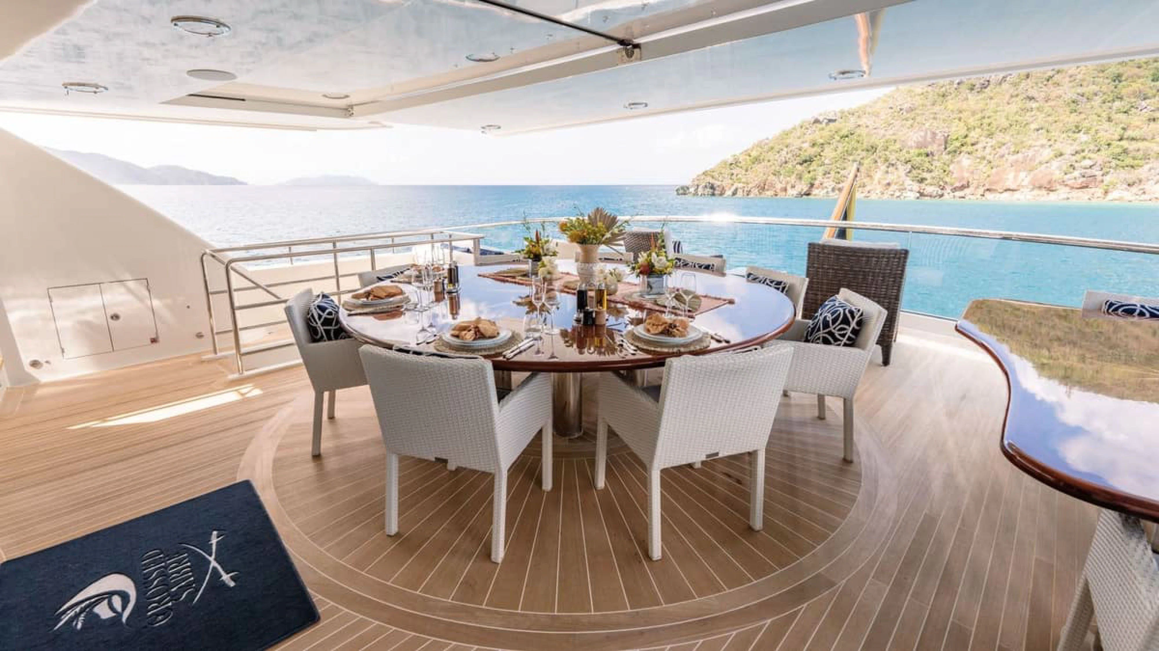 CROSSED SABRE's stunning exterior is the work of renowned designers who have crafted an exquisite haven for alfresco living. The sundeck invites relaxation with plush loungers, while the dining areas set the stage for unforgettable outdoor feasts under the stars. Notable features include a beach club for easy access to the water and an exhilarating water slide that plunges into the azure waves below.