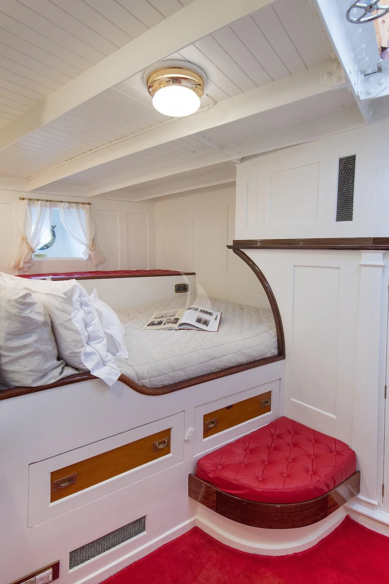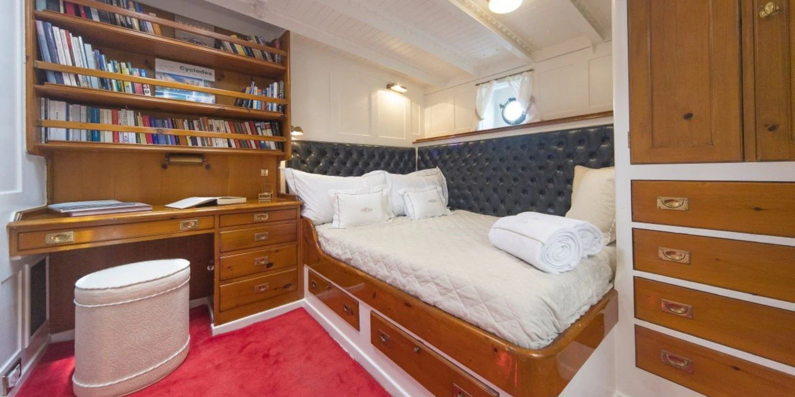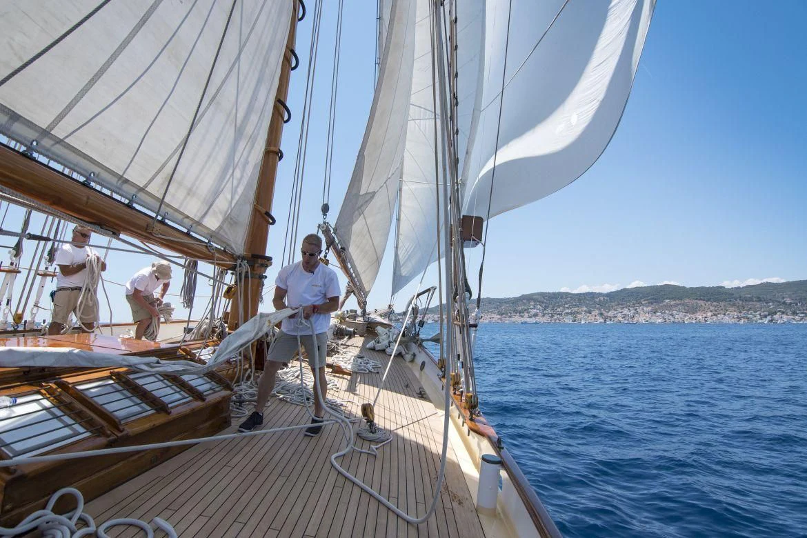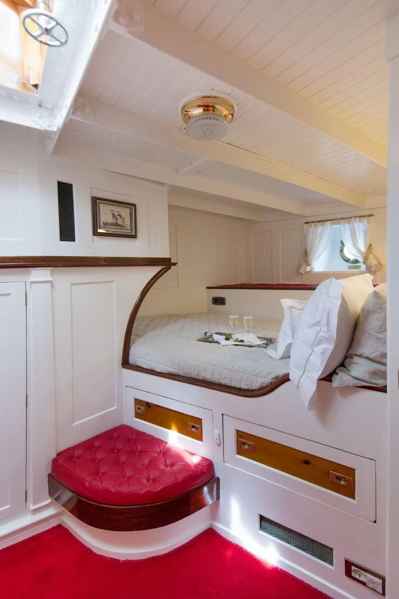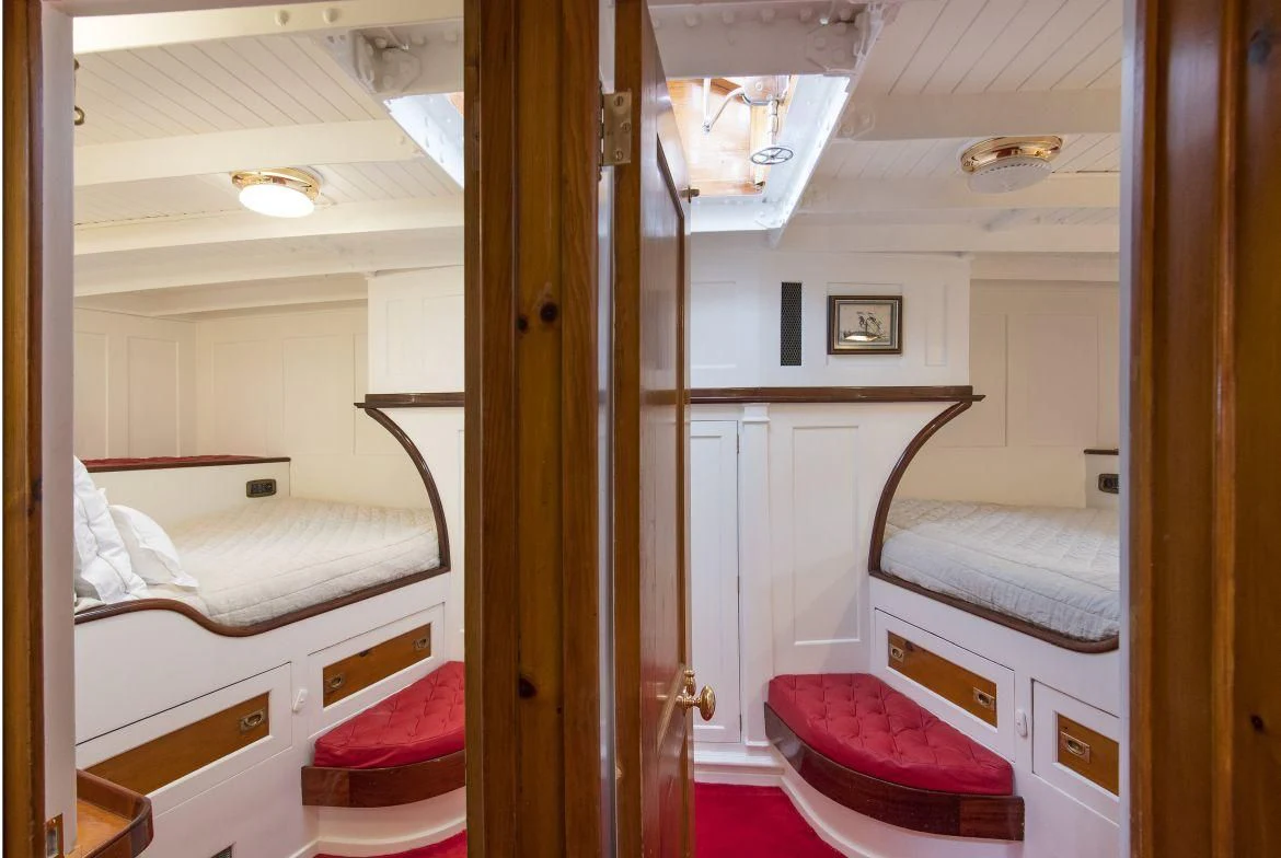 Step inside PURITAN and find yourself enveloped by an ambiance that radiates luxury and comfort. The interior palette is tastefully chosen to complement its classic style, with each element meticulously curated to create an inviting atmosphere onboard. With four sumptuous cabins accommodating up to eight guests, each stateroom stands as a sanctuary offering tranquility after a day filled with adventure on the sea.