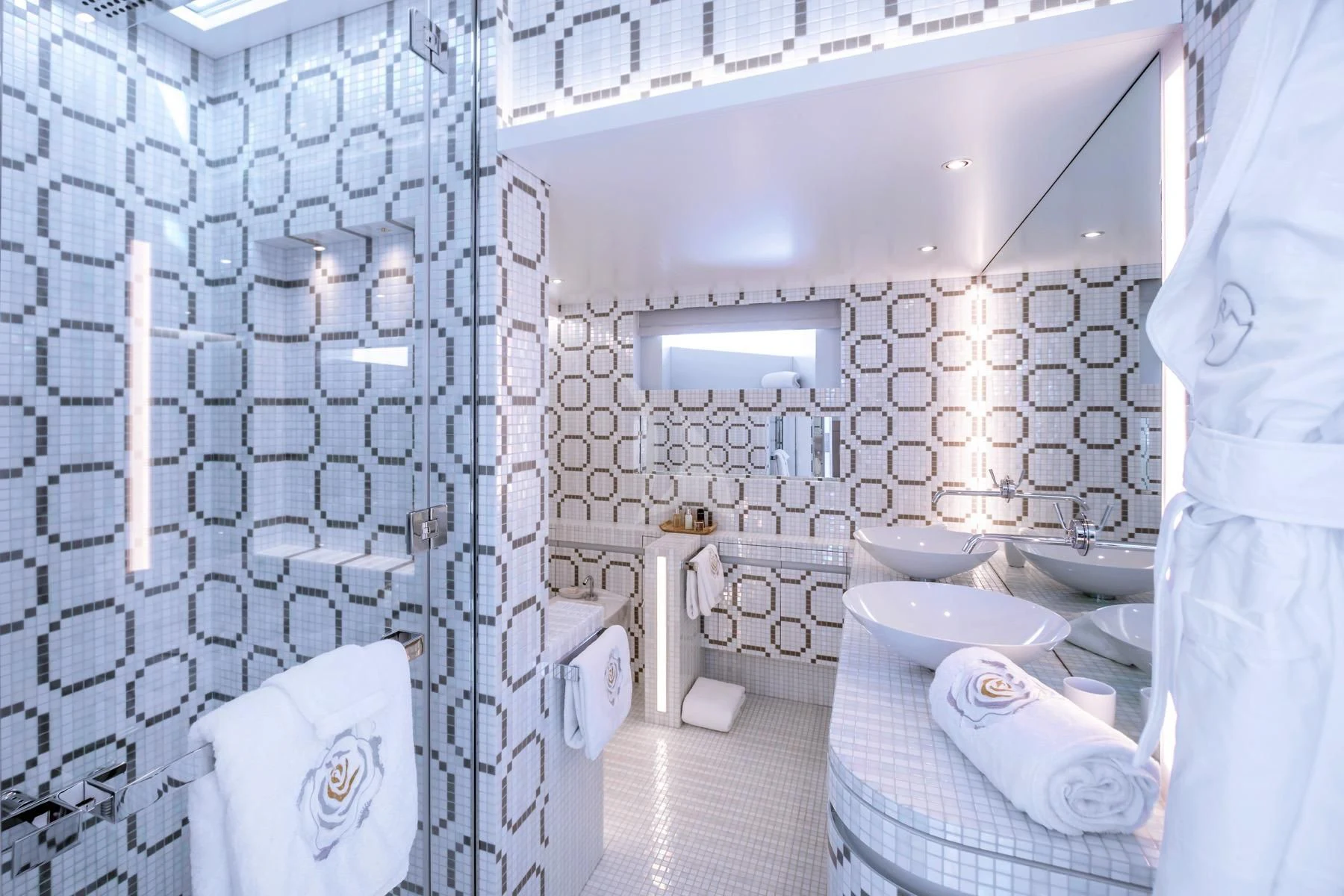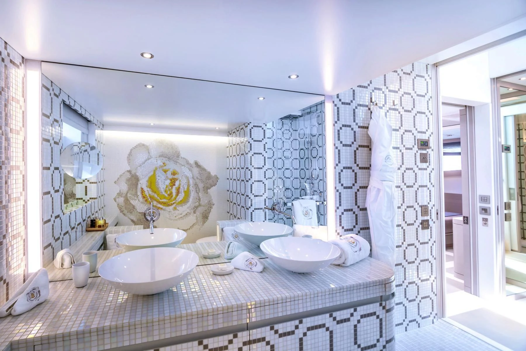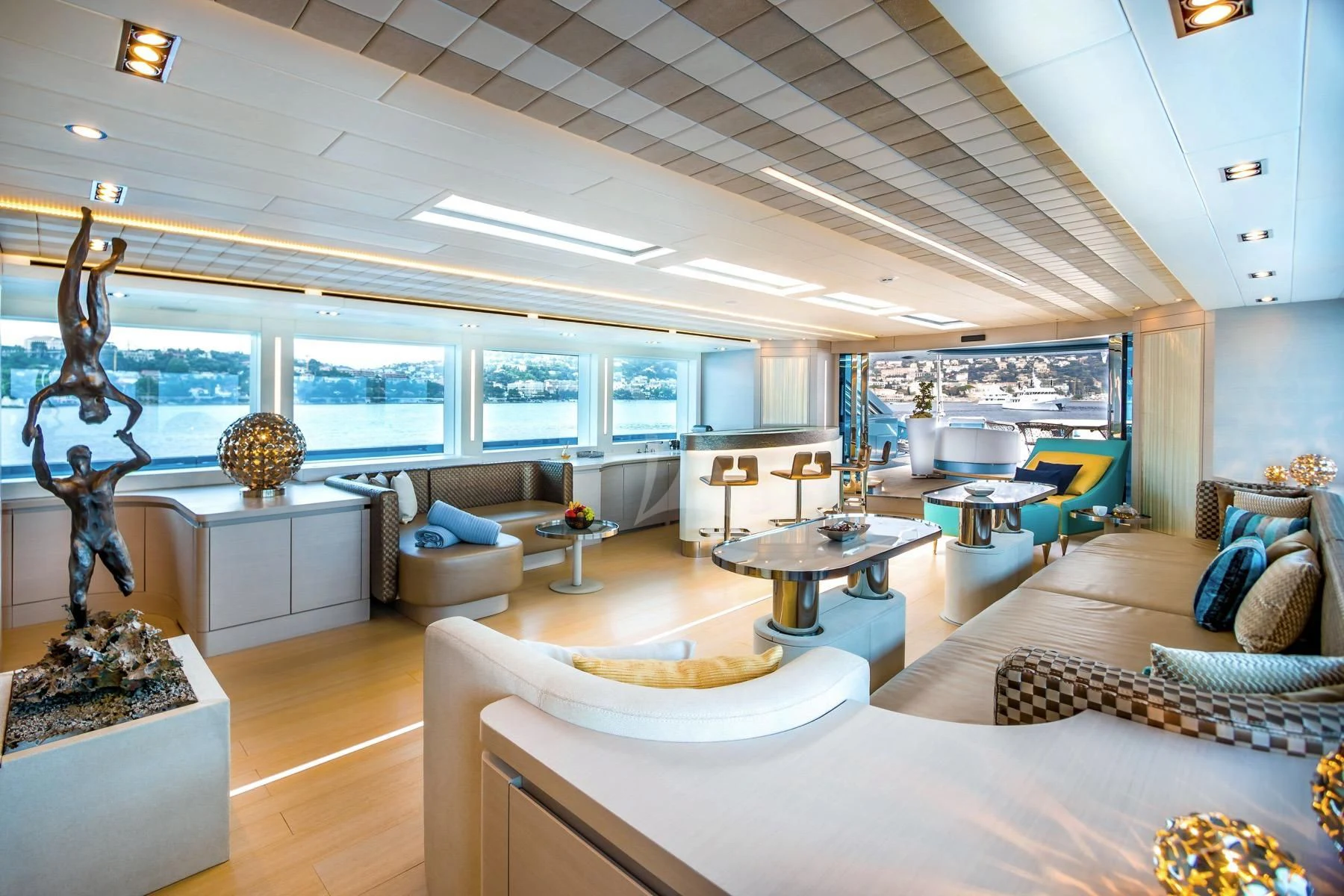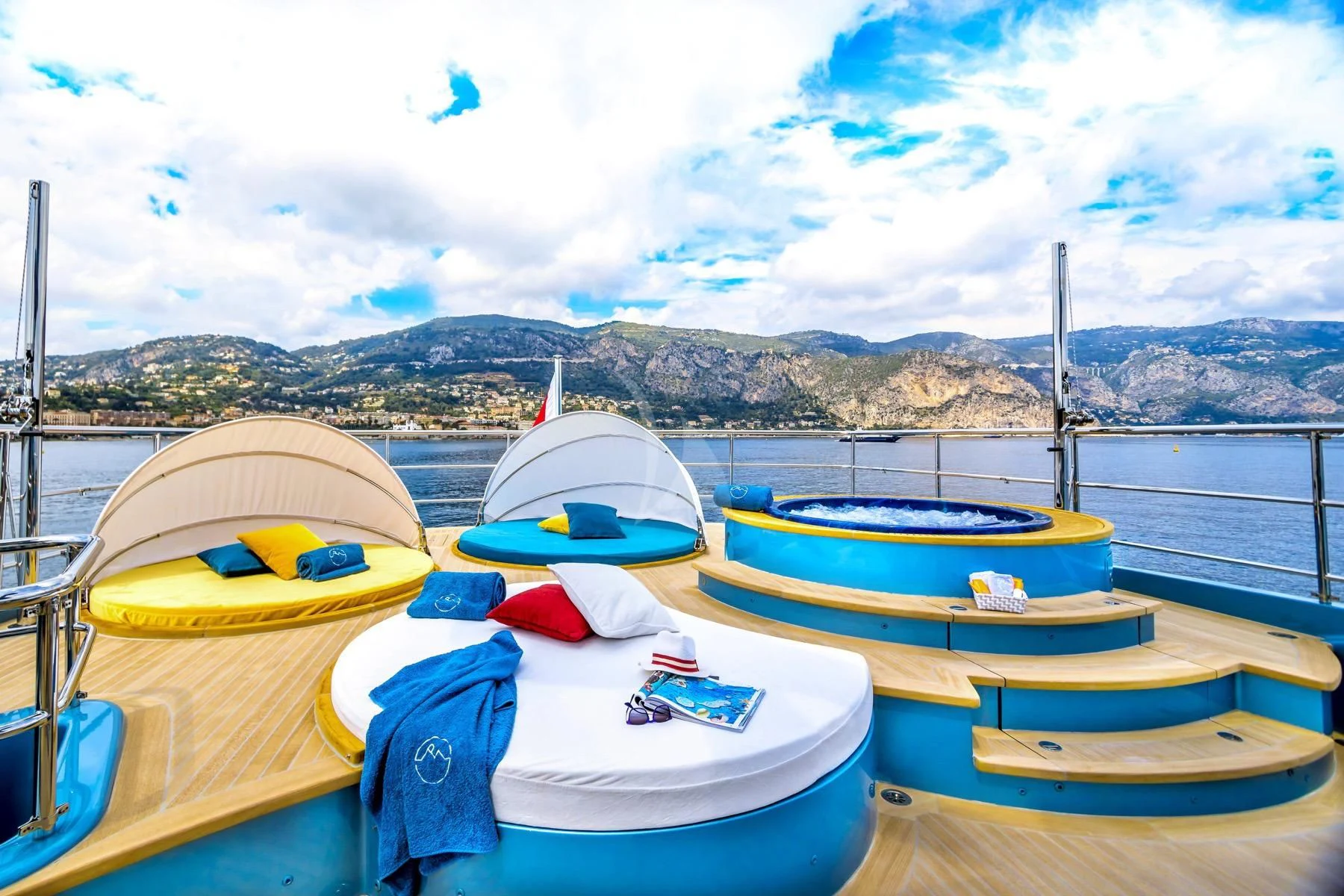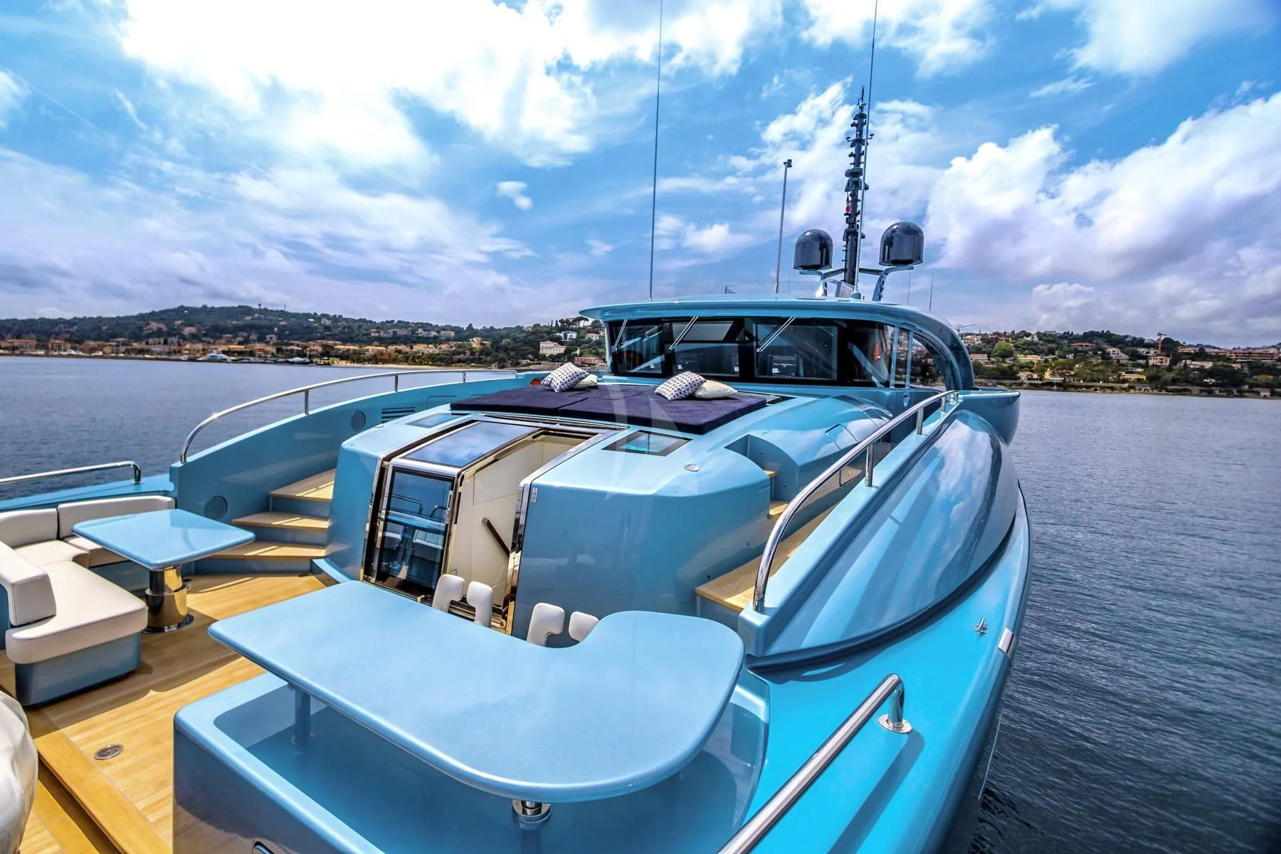 Her exterior design is nothing short of breathtaking. The expansive beam stretching to about 28 feet (8.6 meters) provides ample space for outdoor relaxation and entertainment areas. Her sundecks offer the perfect spot for sunbathing or simply enjoying panoramic ocean views under clear blue skies. Alfresco dining areas are strategically positioned to allow guests to relish their meals amidst serene seascapes, while lounging areas provide comfortable spaces for rest and recreation.