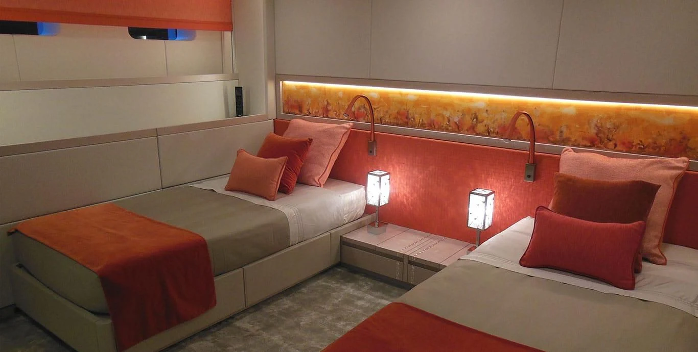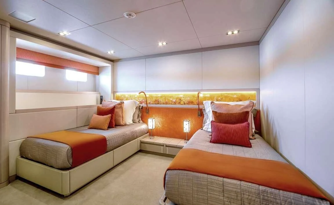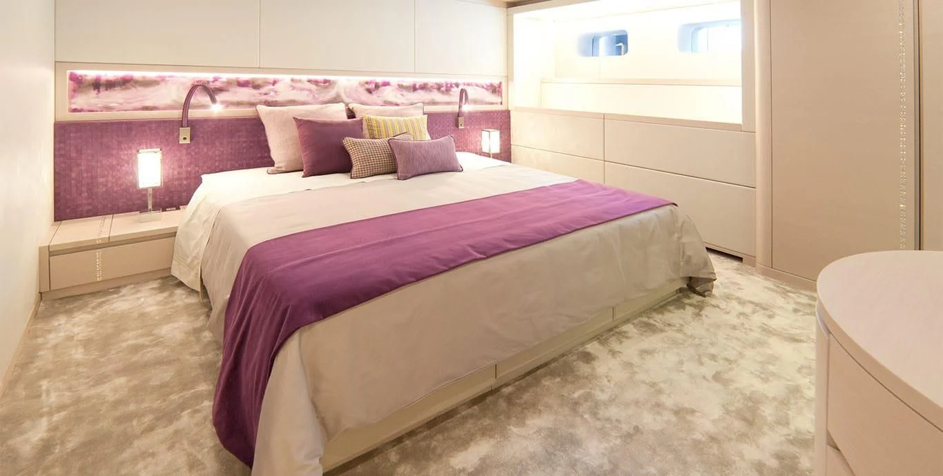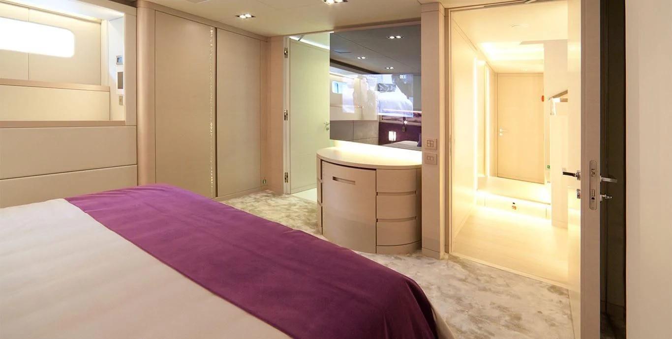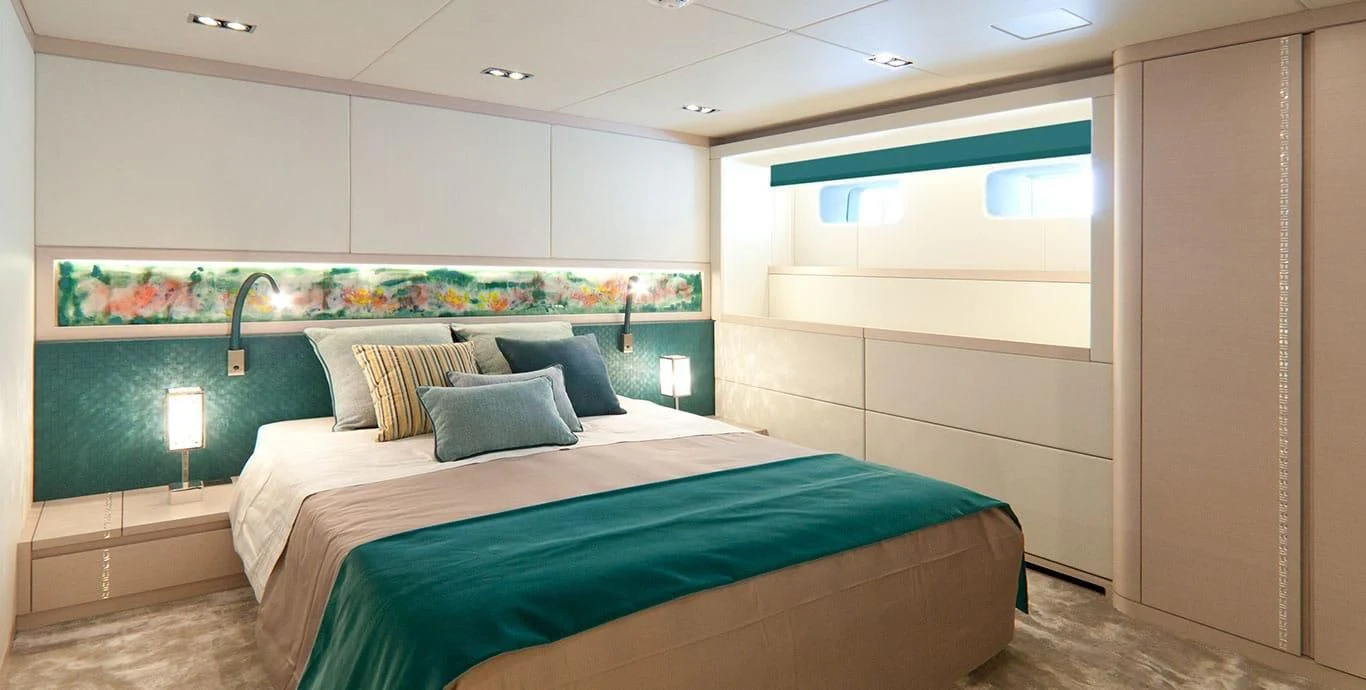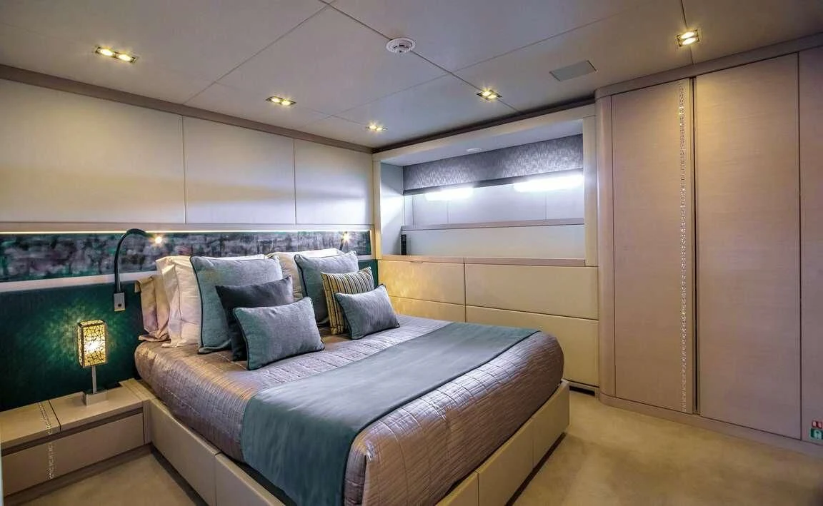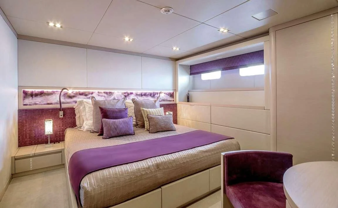 The master stateroom stands out with its opulent design elements and high-end furnishings, promising absolute comfort and privacy for its occupants. Each additional stateroom features plush bedding arrangements and state-of-the-art amenities ensuring all guests experience unparalleled luxury during their stay aboard QUEEN ALLA.