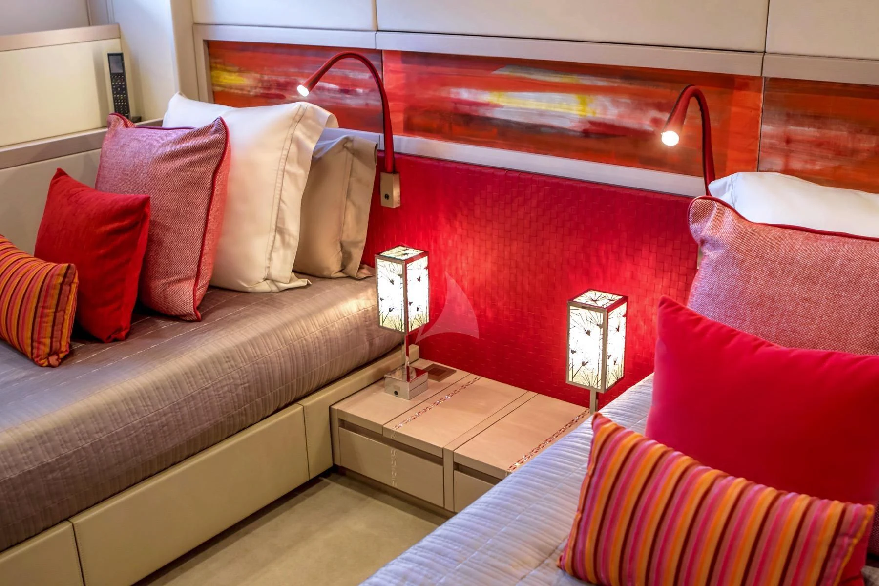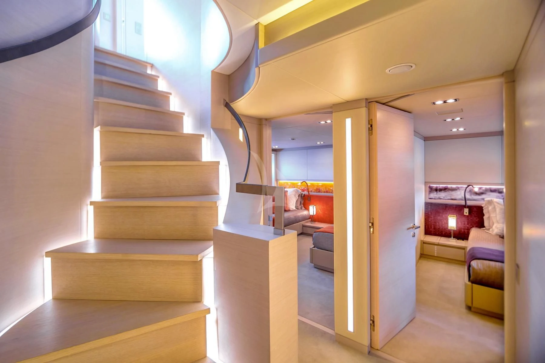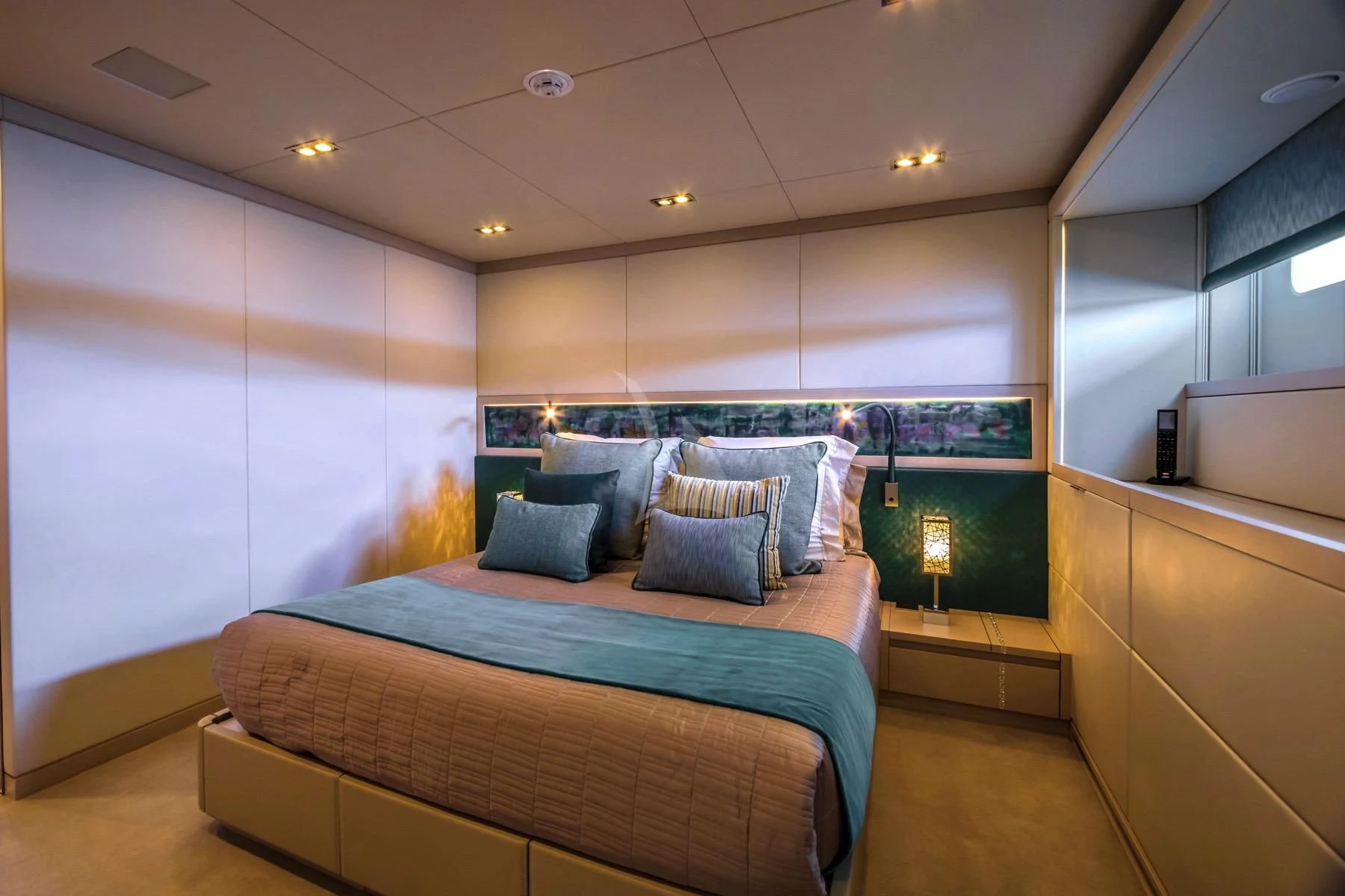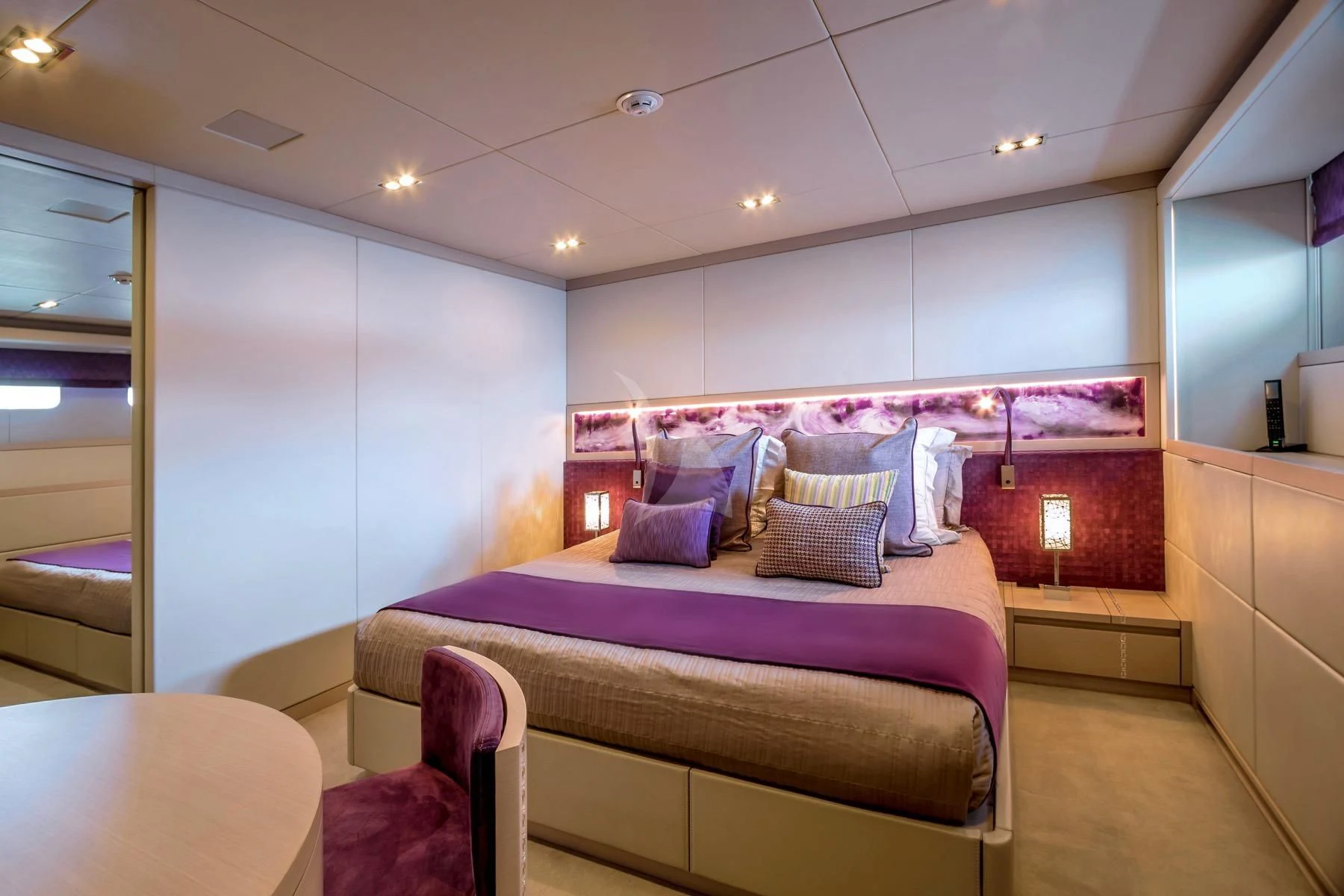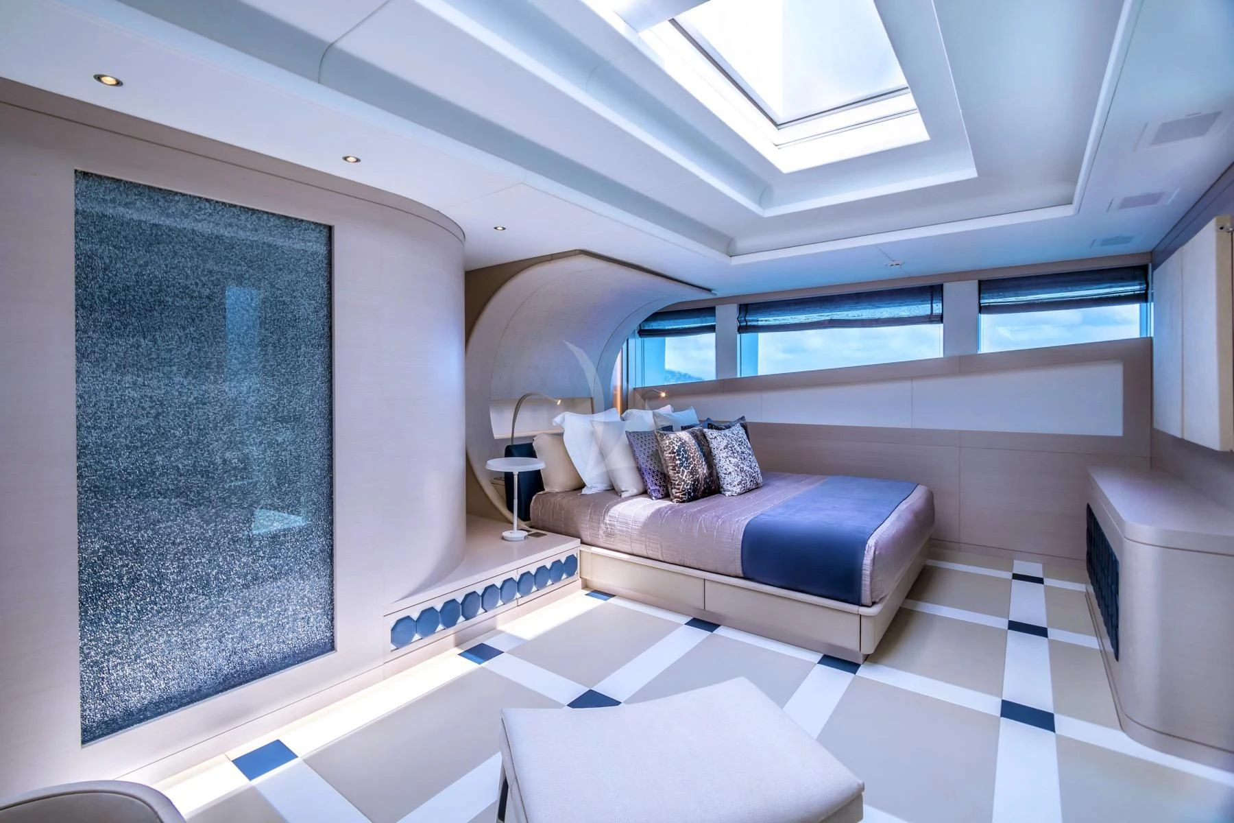 The master stateroom stands out with its opulent design elements and high-end furnishings, promising absolute comfort and privacy for its occupants. Each additional stateroom features plush bedding arrangements and state-of-the-art amenities ensuring all guests experience unparalleled luxury during their stay aboard QUEEN ALLA.