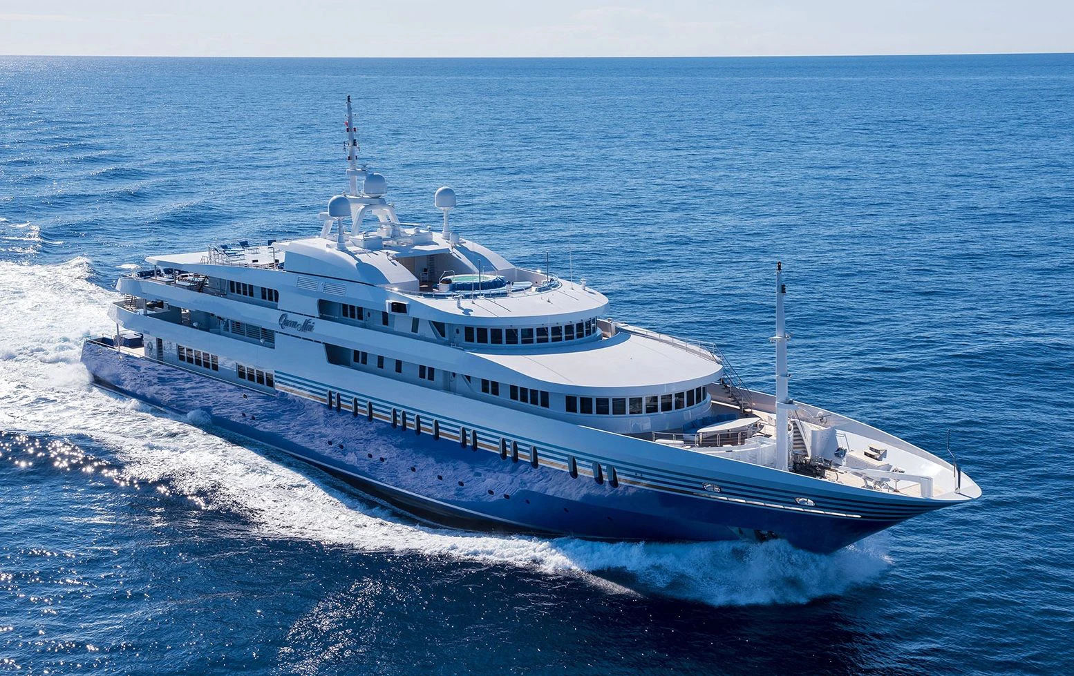But what makes QUEEN MIRI truly stand out are her remarkable amenities designed for recreation, relaxation, and business alike – from the wine cellar stocked with some of the world's finest vintages to the tender garage housing top-of-the-line water toys for endless aquatic fun. The onboard conference room caters to those who wish to mix business with pleasure without compromising on either aspect.