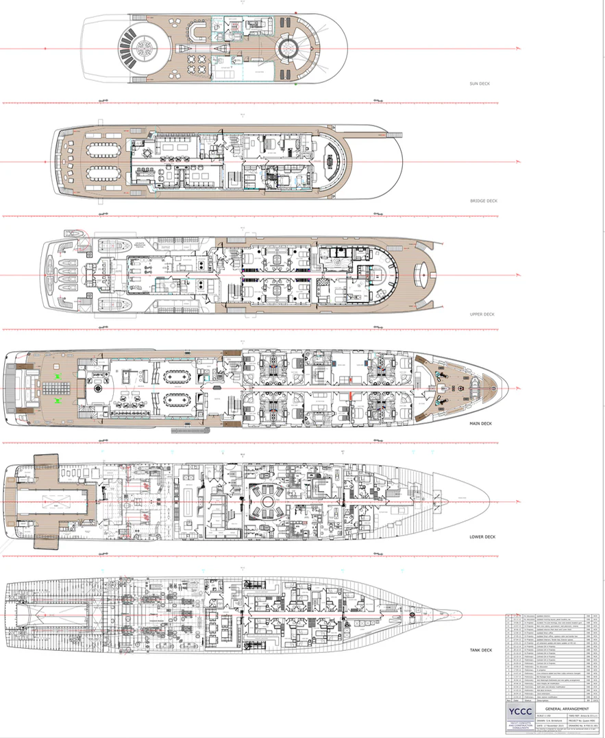 Behold the majestic QUEEN MIRI, an exquisite epitome of luxury and elegance, built by the renowned Neorion shipyard. Launched in 2004 and refitted to perfection in 2015, this custom model is a true testament to superior craftsmanship and innovation. With a gross tonnage of 3367, she stands as an imposing figure on the waters, her steel hull cutting through waves with ease. Boasting an impressive length overall (LOA) of 298 feet (91.5 meters), a beam width of 48'3" (14 meters), and a maximum draft of 13'2" (4.4 meters), QUEEN MIRI is not just a yacht; she's a floating palace.