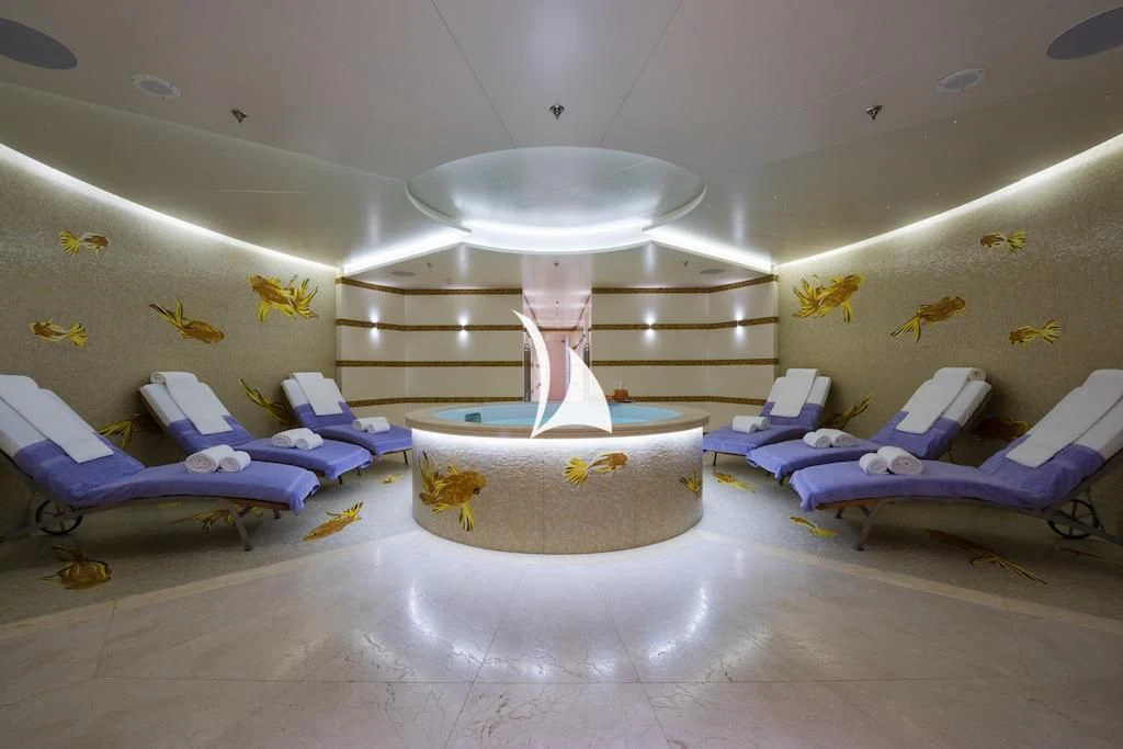 The movie theater offers immersive cinematic experiences at sea while fitness enthusiasts can maintain their workout regimen at the well-equipped gym or unwind in the steam room post-exercise. And if you're seeking ultimate relaxation? Look no further than our Jacuzzi or sauna – perfect spots for rejuvenation after a day filled with adventure.