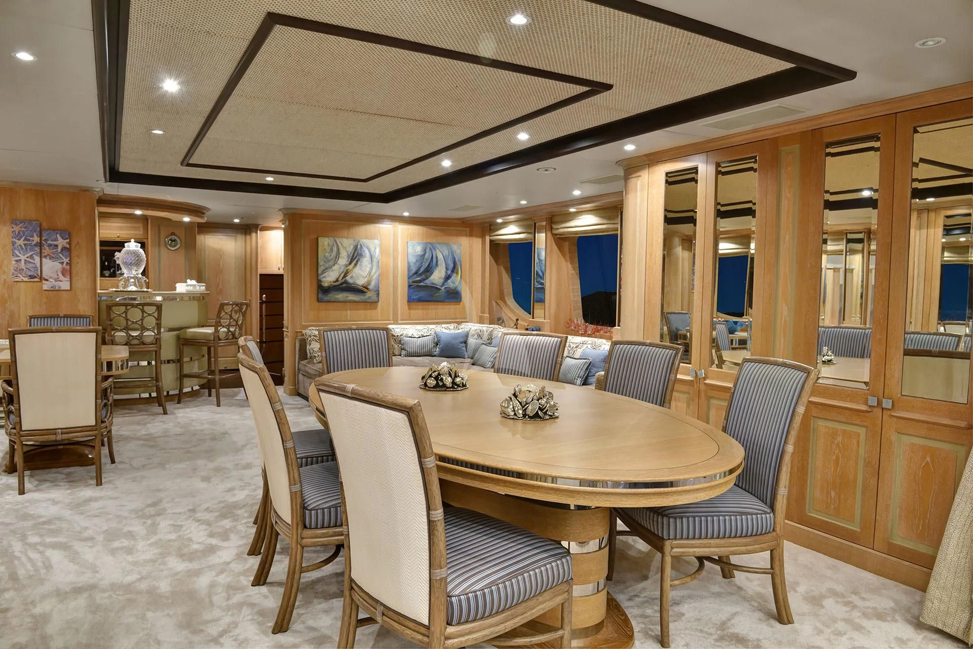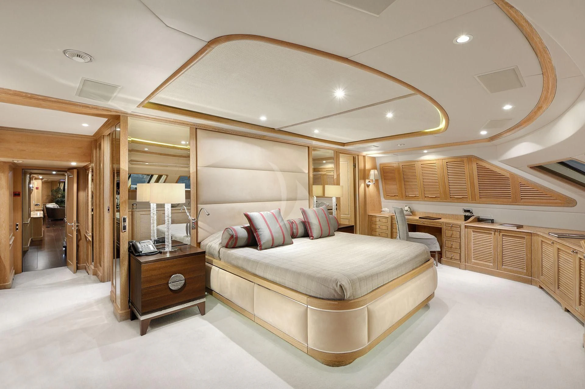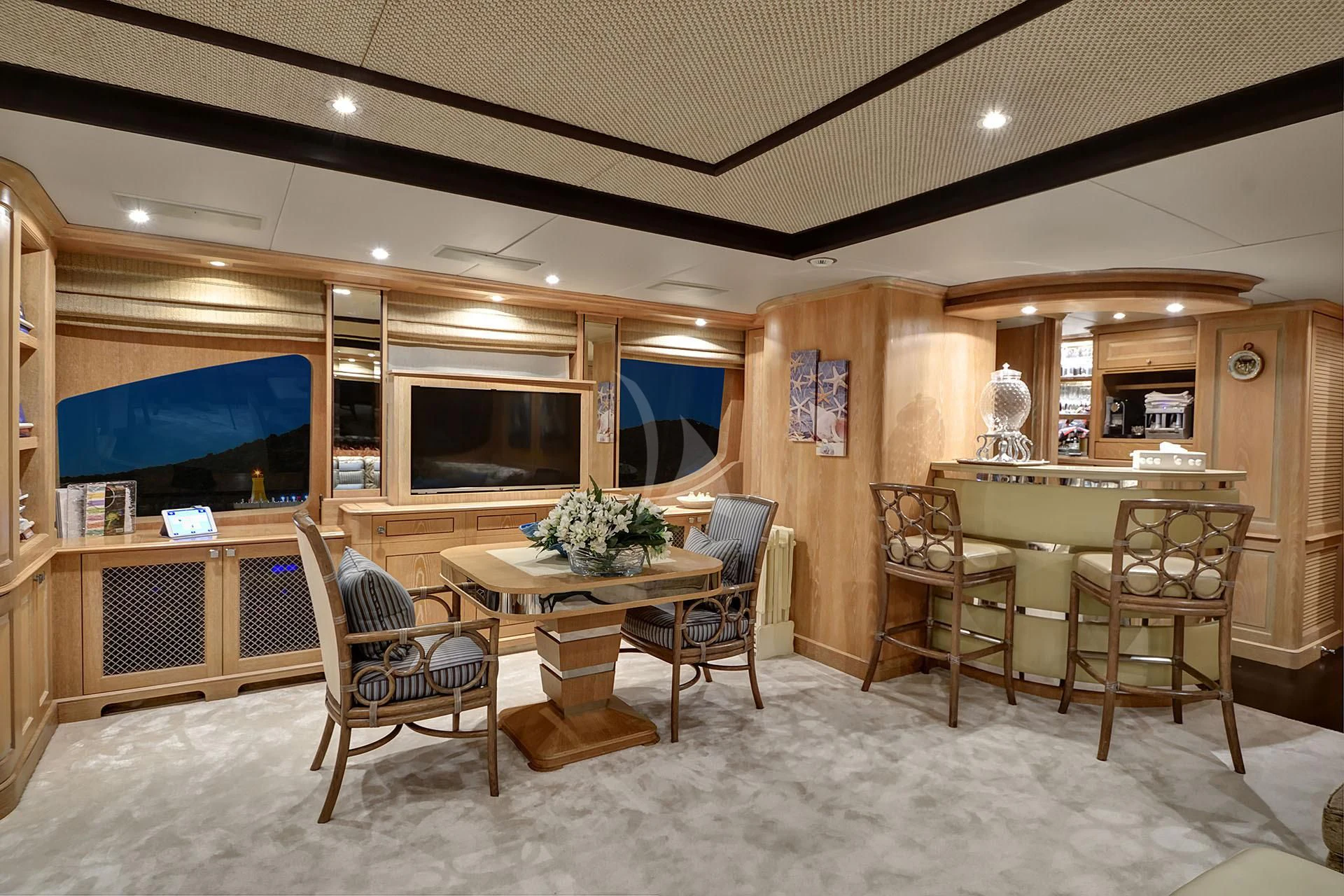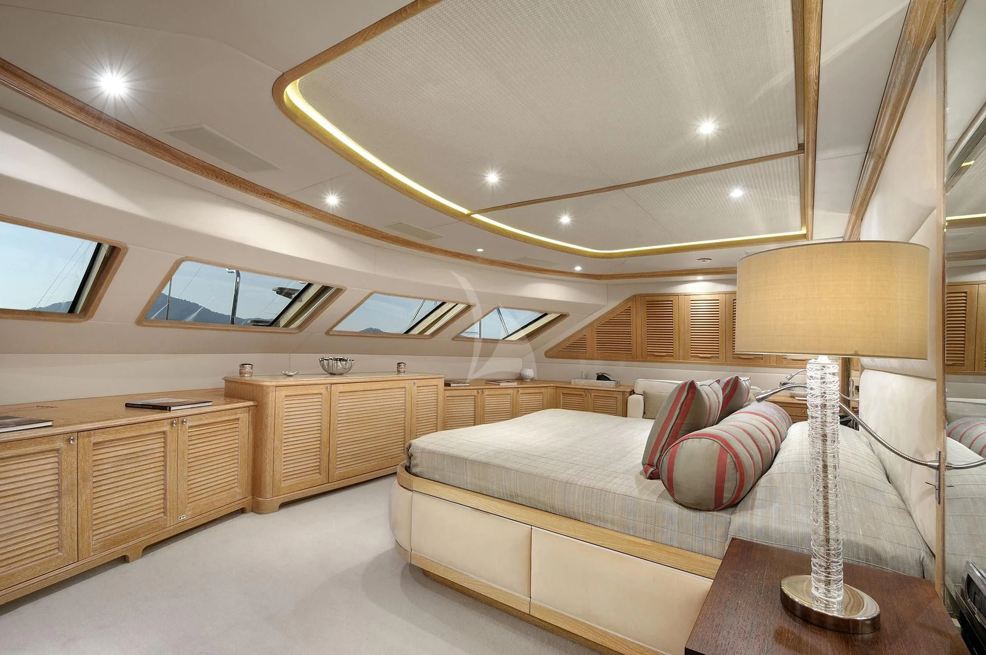 As you step aboard QUEST R, prepare to be mesmerized by her opulent interiors designed with meticulous attention to detail. Accommodating twelve guests within five luxurious cabins, each area within this superyacht exudes comfort and style. The master stateroom offers unparalleled luxury with its plush furnishings and state-of-the-art facilities while additional guest rooms ensure every passenger experiences the finest stay during their maritime journey. An experienced crew of eight members is always available to cater your needs providing service par excellence.