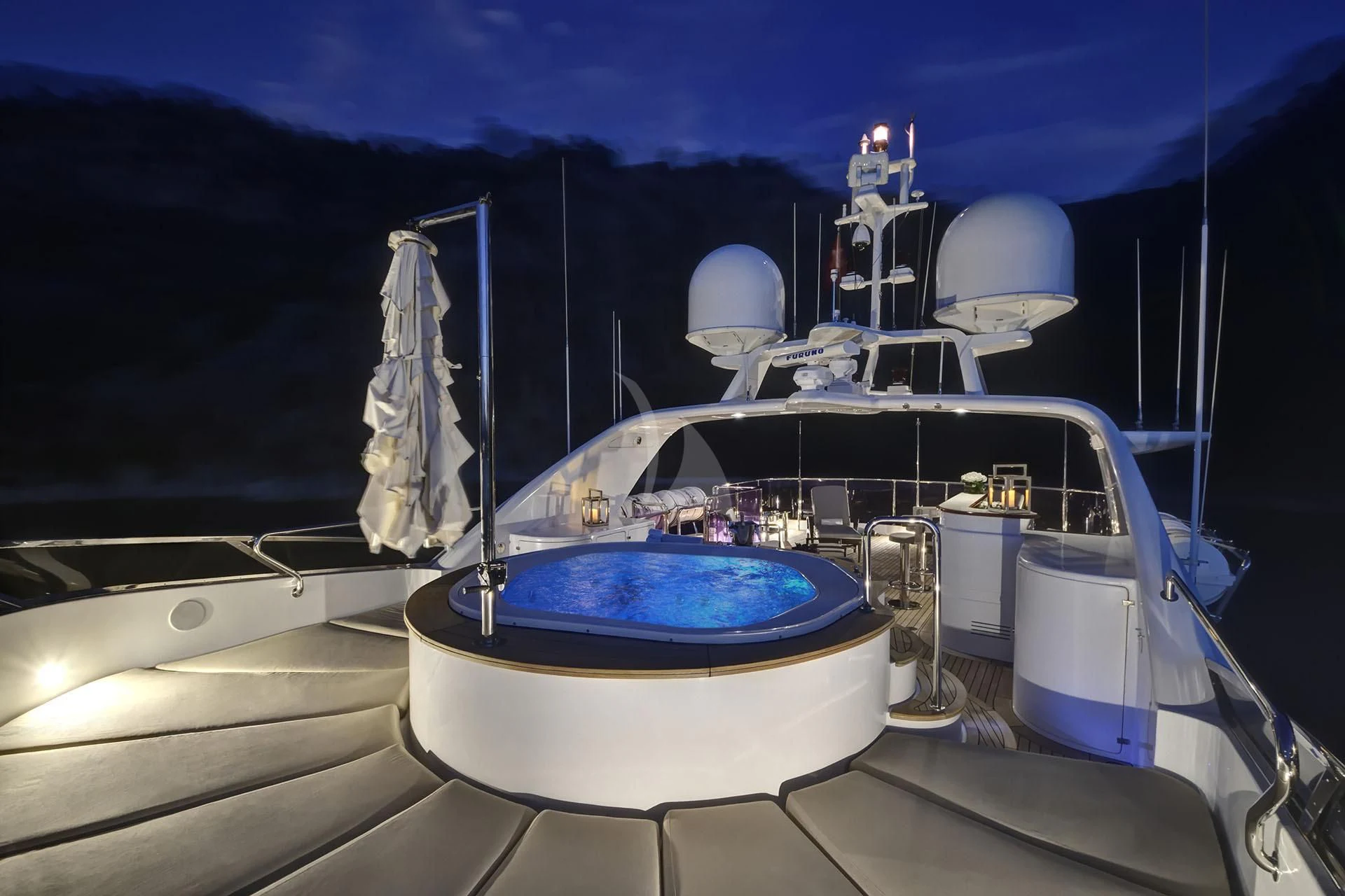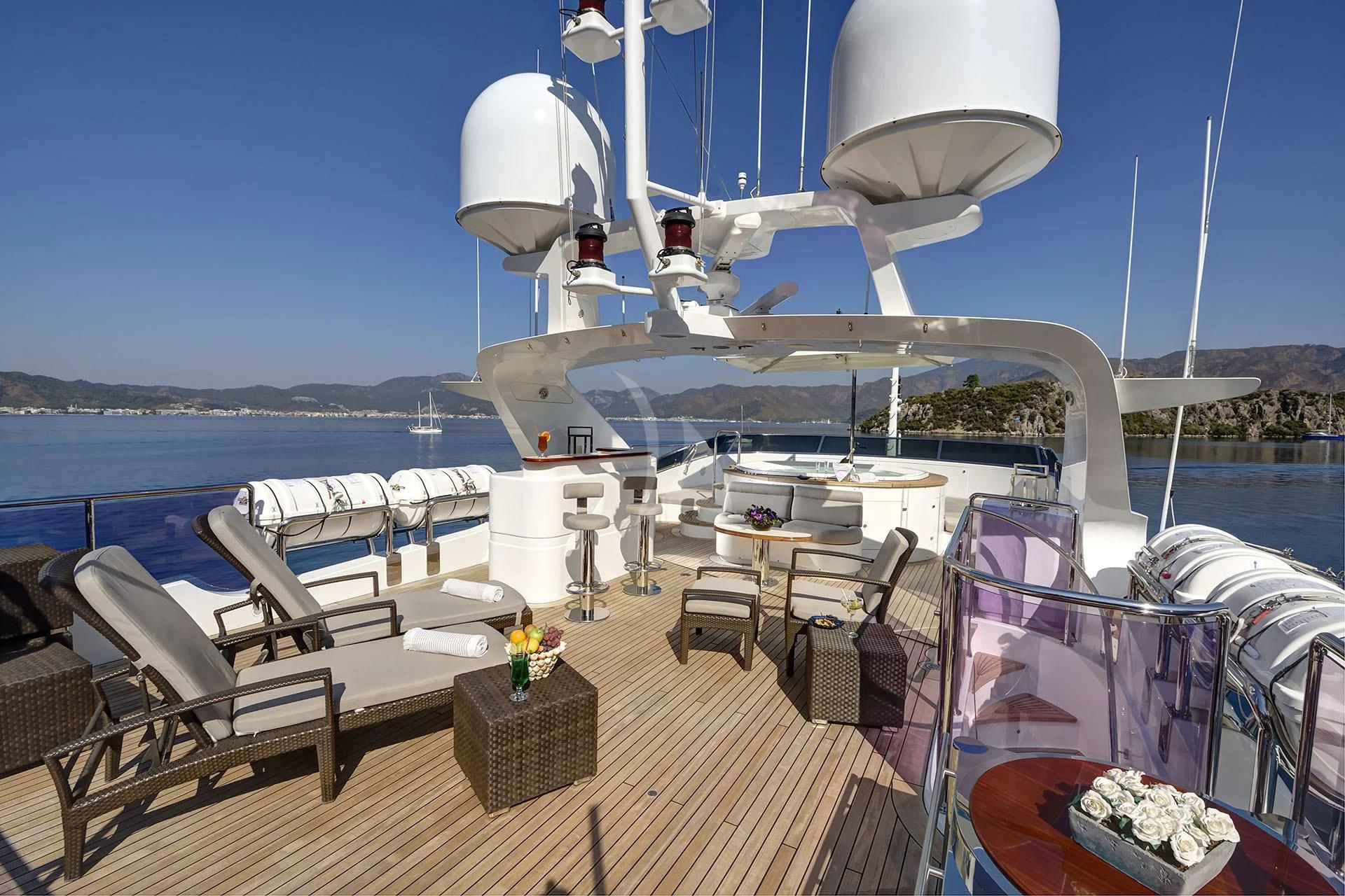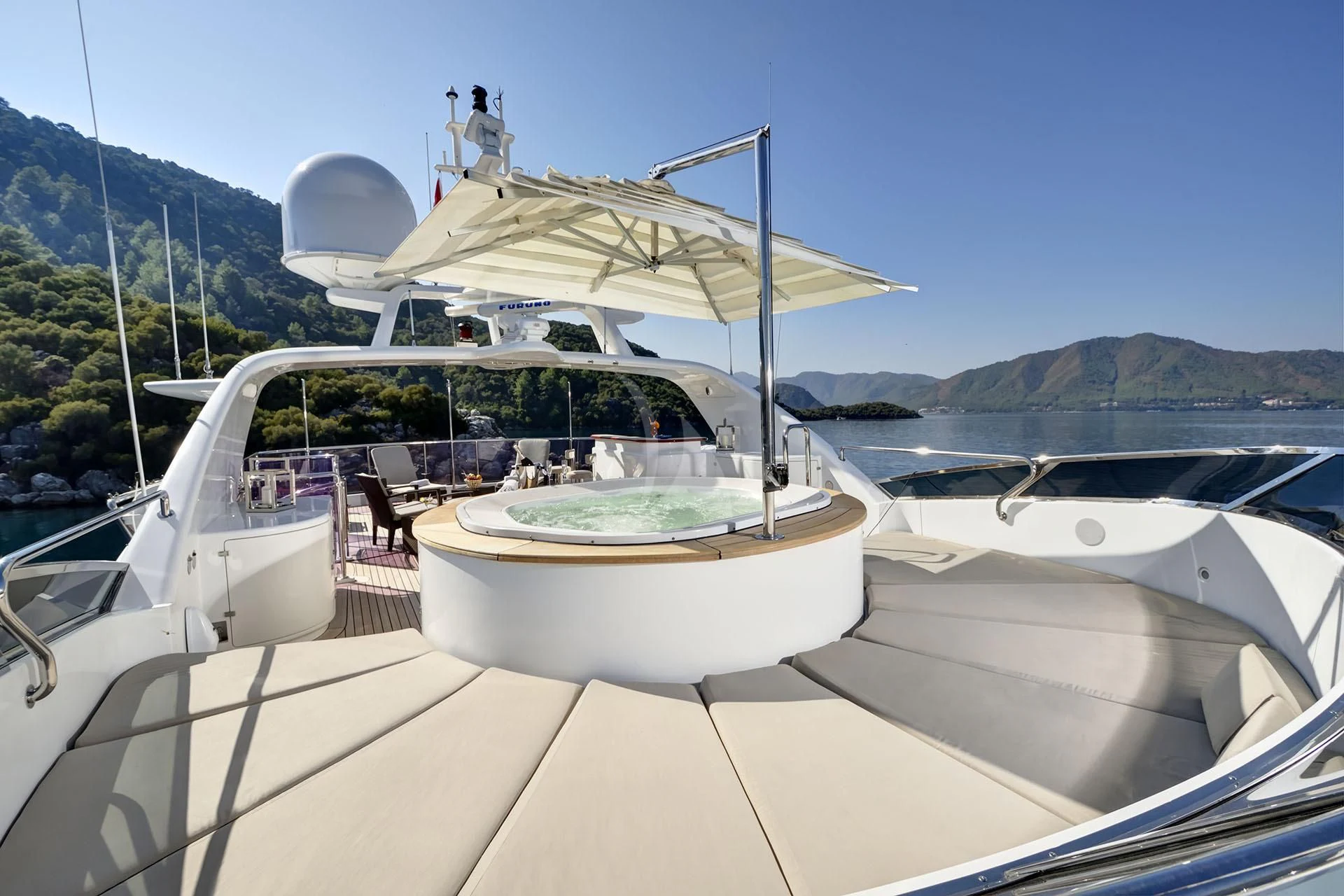 The amenities onboard QUEST R are thoughtfully curated for utmost pleasure and convenience for everyone aboard – whether it’s unwinding in the Jacuzzi under the starlit sky or maintaining fitness routine at the well-equipped gymnasium – every moment spent on this yacht is bound to be memorable one! Furthermore, stabilizers ensure smooth cruising even in choppy waters while Wi-Fi connectivity keeps you connected with the world as you sail into distant horizons.