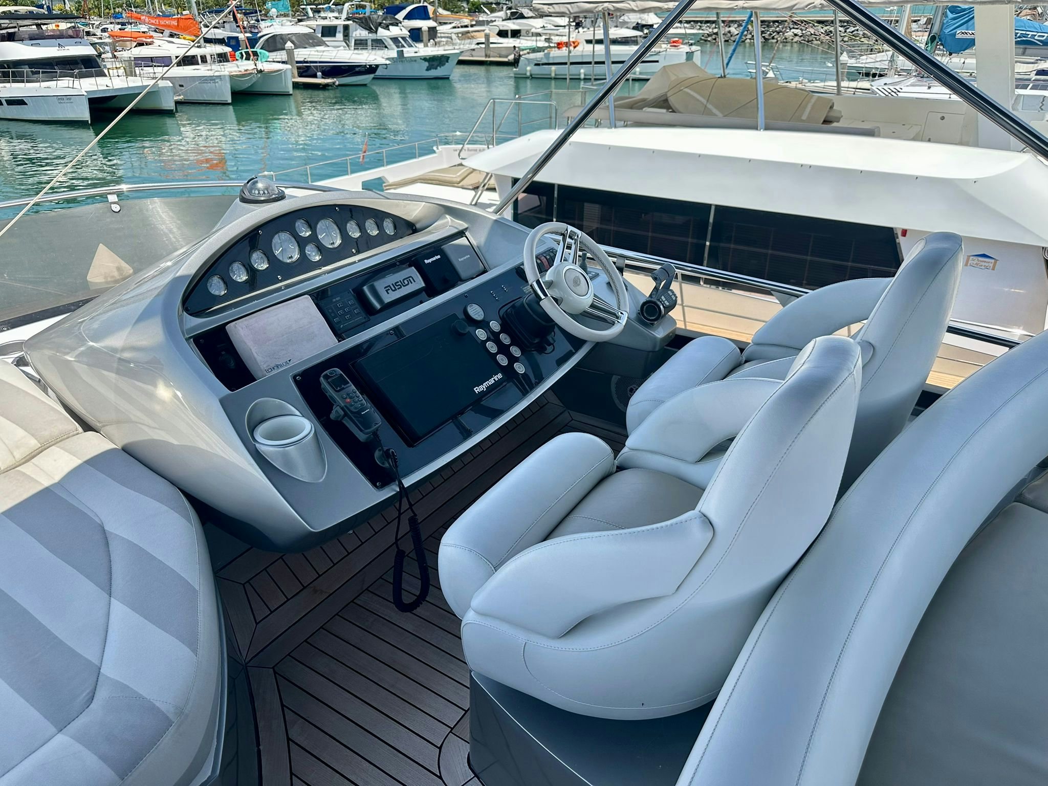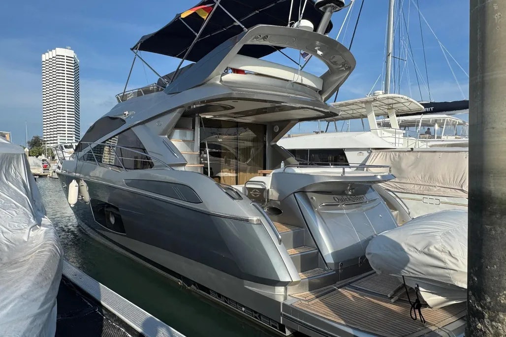 QUICKSILVER I's stand-out features include her expansive flybridge, luxurious full-beam master suite, light-filled saloon and dining area, hydraulic bathing platform, and the renowned Sunseeker finish that ensures quality and sophistication throughout. If you're looking for a capable, stylish yacht that performs on every level, this Manhattan 53 is ready to impress.