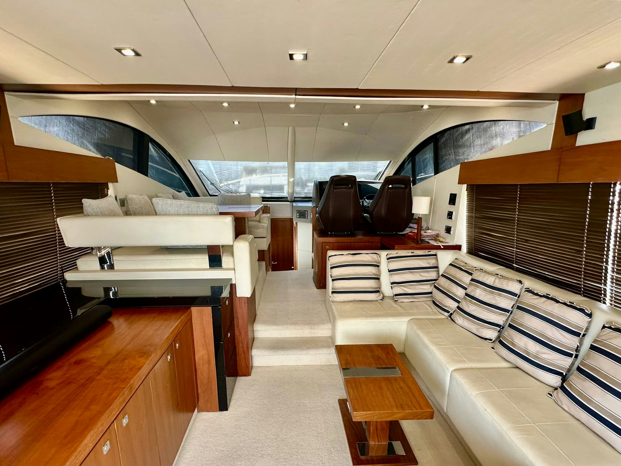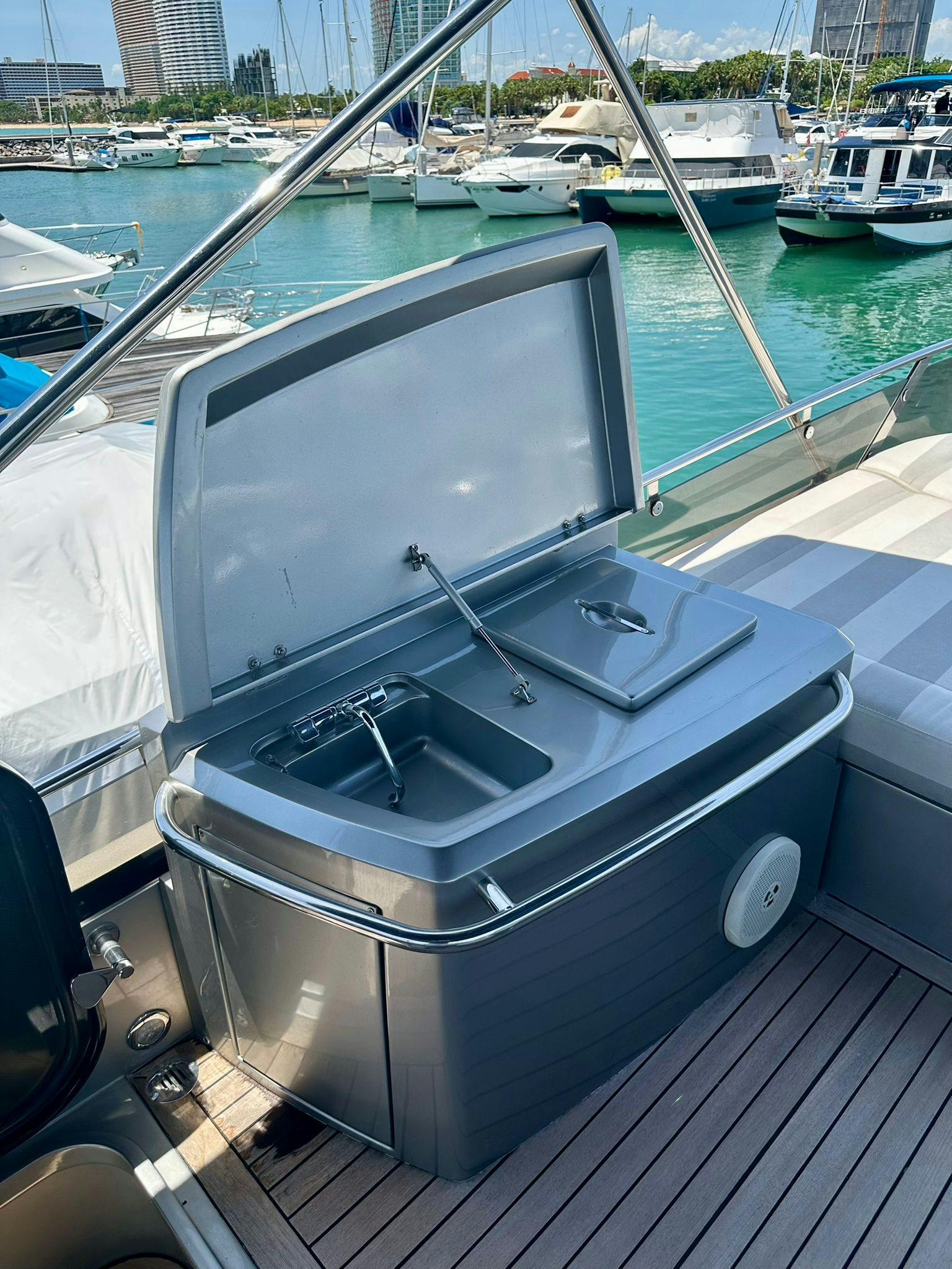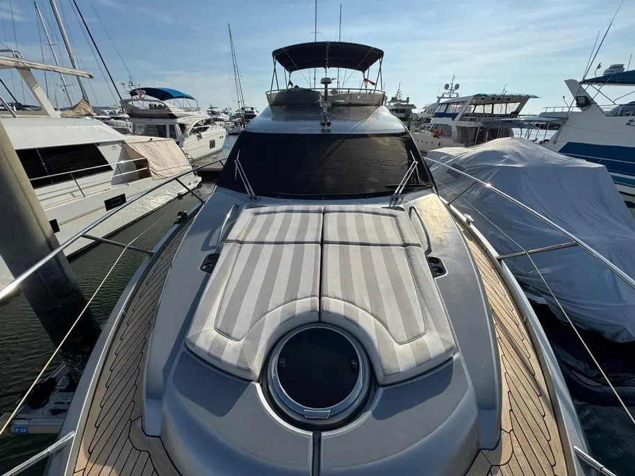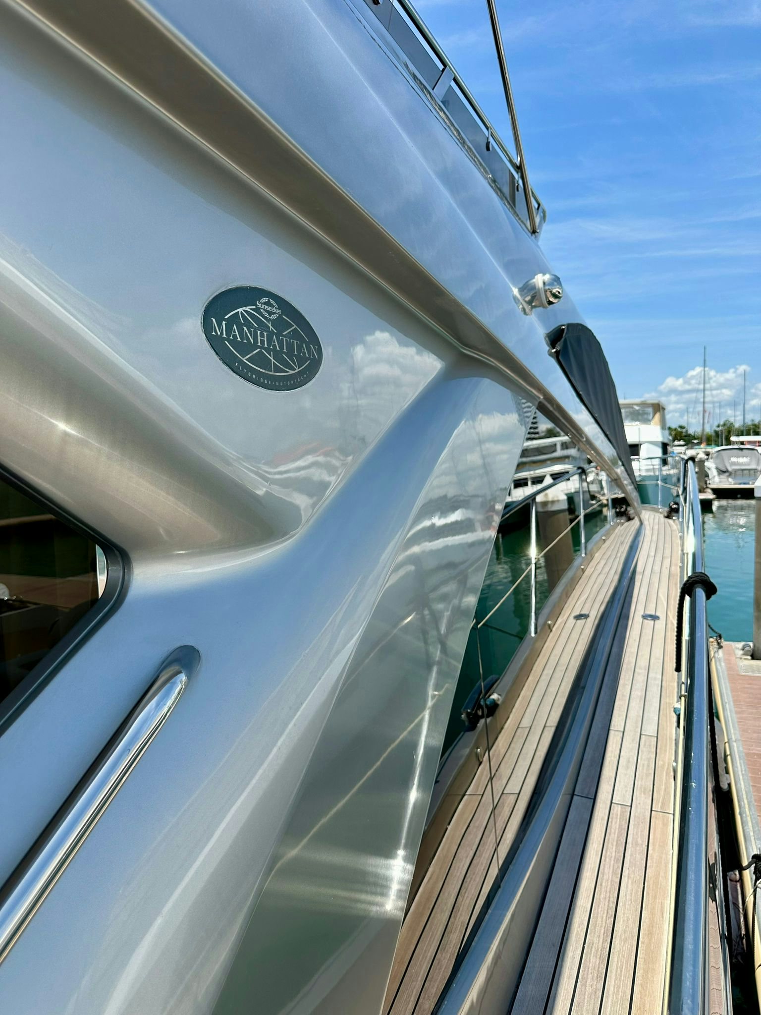 QUICKSILVER I, a 2013 Sunseeker Manhattan 53, is an excellent example of this ever-popular model, blending Sunseeker's iconic styling with practical design and premium finish throughout. She stands out for her seaworthiness and safety, built with a collision bulkhead and five watertight compartments. These are accessed through robust aluminum hatches that can be securely dogged down, making her one of the safest vessels in her class. QUICKSILVER I handles extended cruising with ease and can comfortably cover over 200 nautical miles per day. Thanks to her roller furling rig, she remains manageable even for a crew of just two.