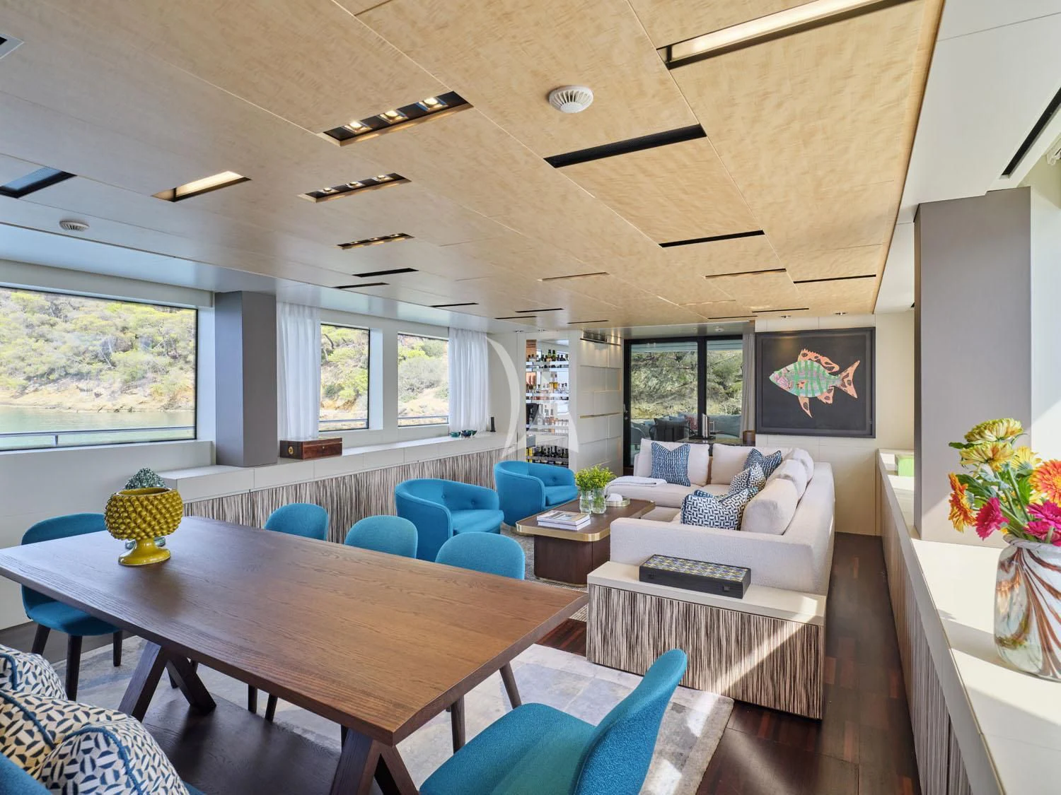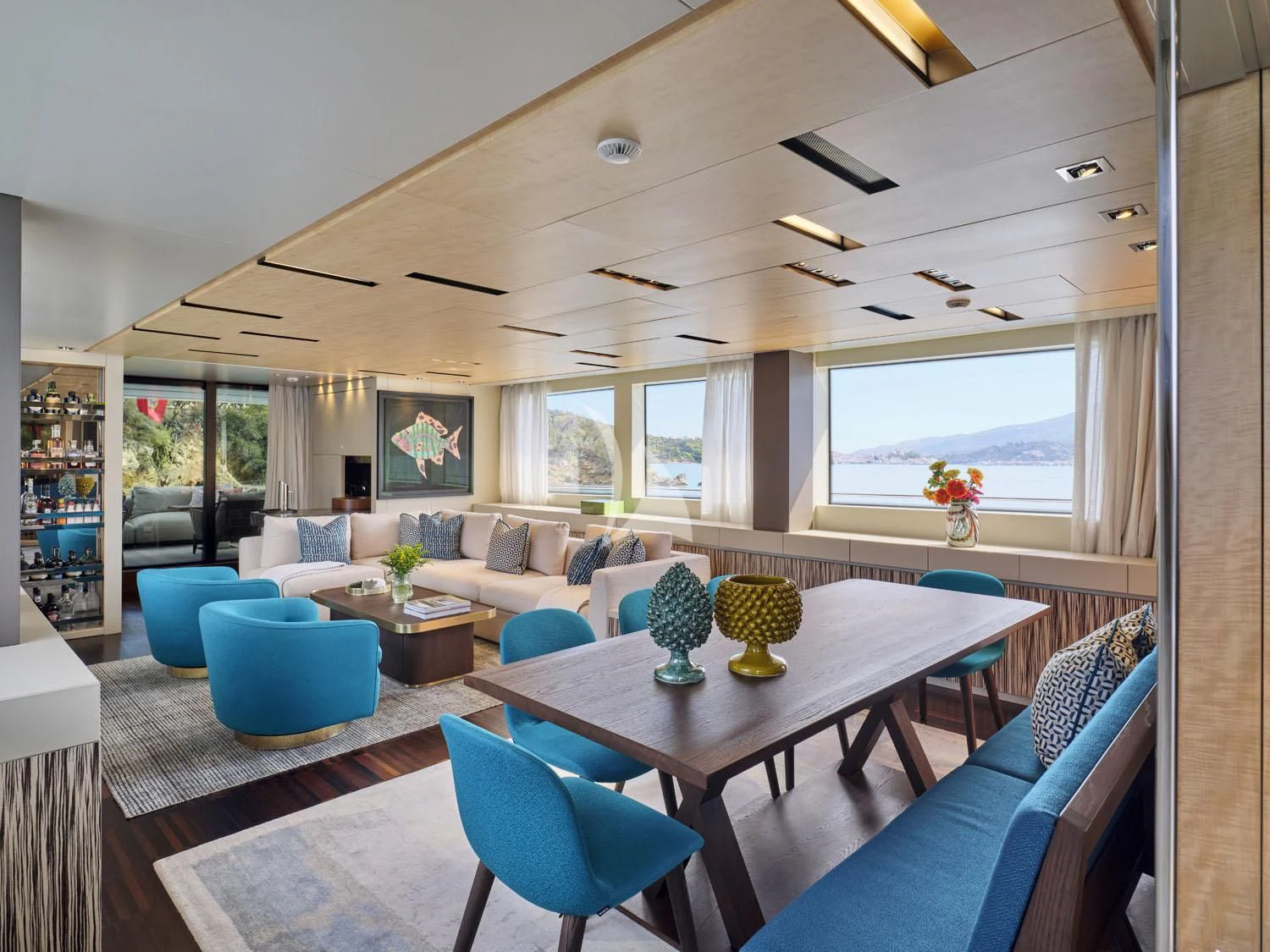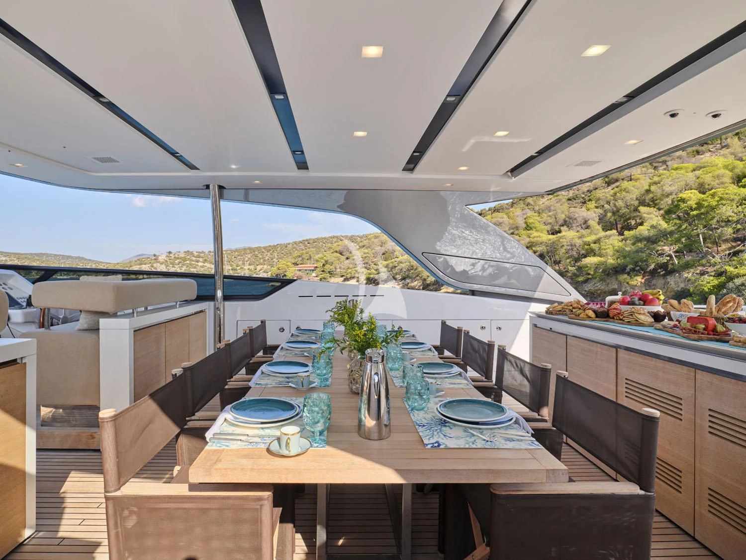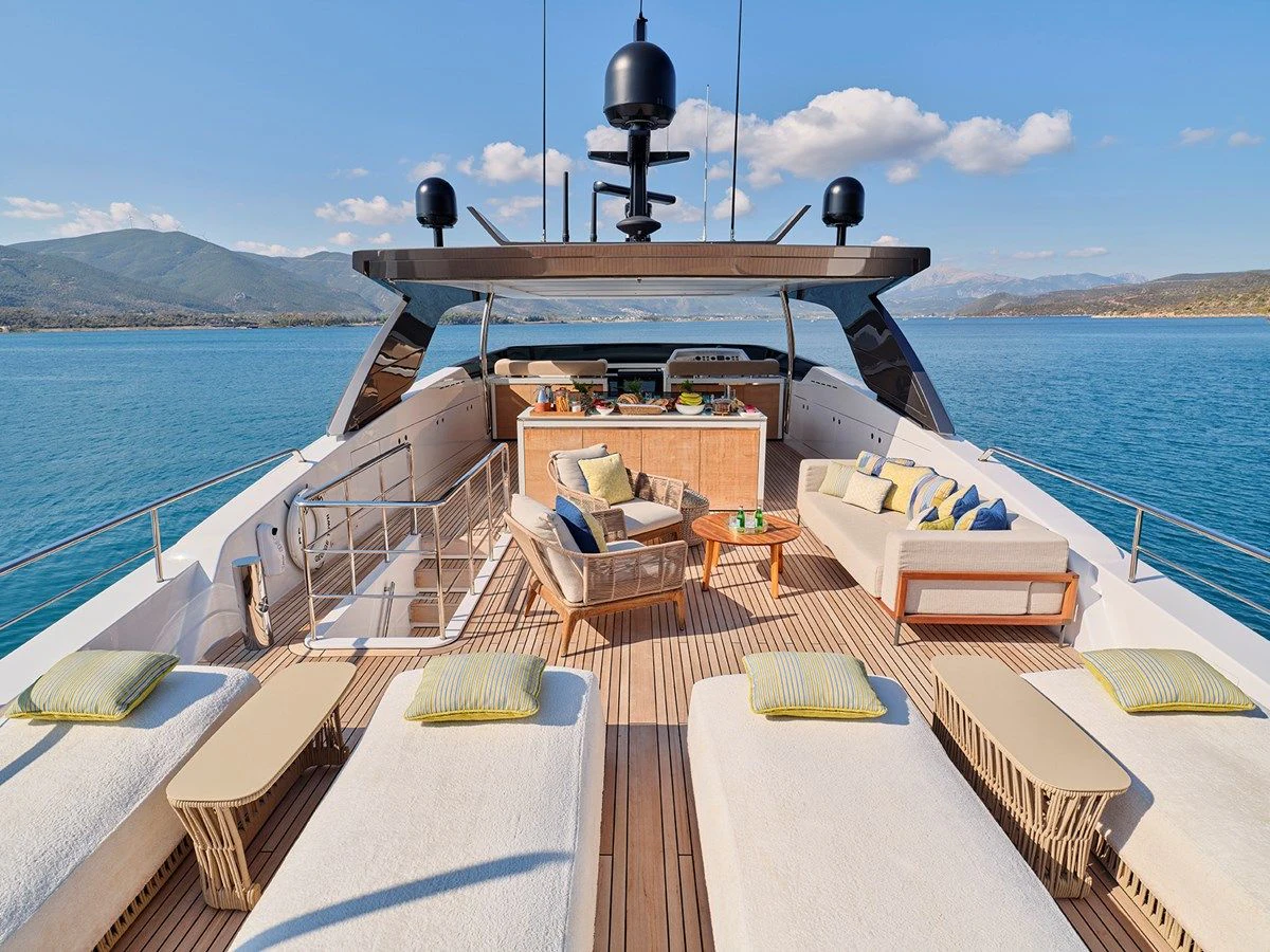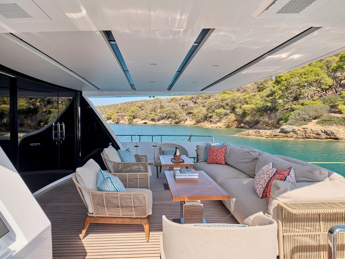 RARE DIAMOND's exterior spaces are thoughtfully designed for maximum comfort and enjoyment under the sun or stars. The sundeck invites guests to unwind with panoramic ocean views, while alfresco dining areas offer exquisite outdoor dining experiences amidst the sea breeze. Lounging areas provide perfect spots for soaking up the sun or enjoying cocktails at sunset.