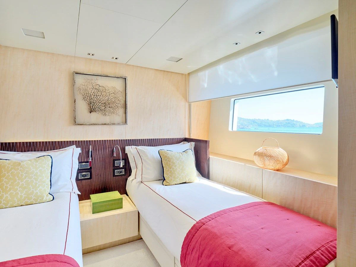 The master stateroom stands as a testament to luxury living at sea with its spacious layout, plush furnishings, and state-of-the-art amenities including Wi-Fi connectivity throughout the vessel. Additional staterooms are equally well-appointed offering restful havens after days filled with seafaring adventures.