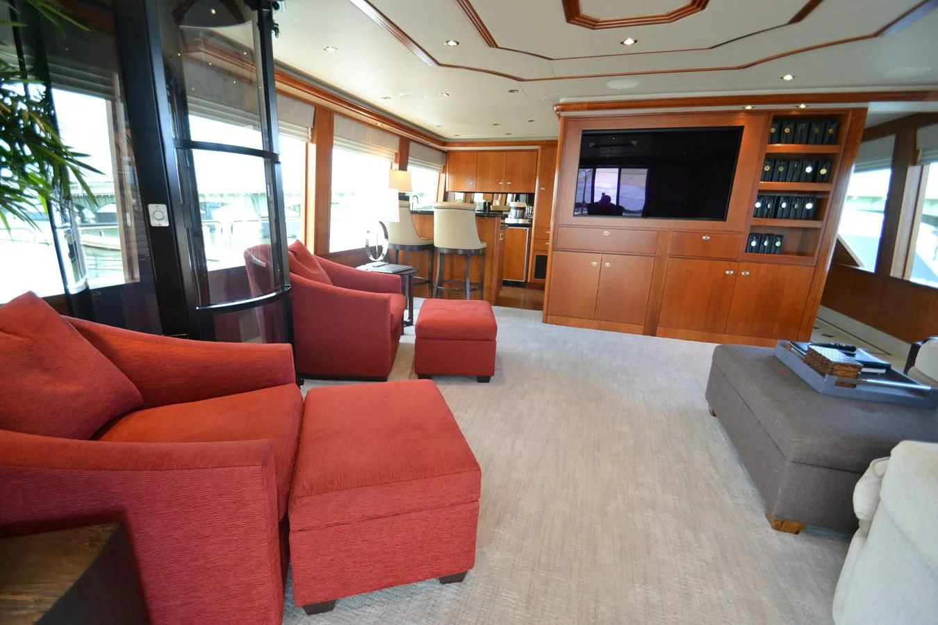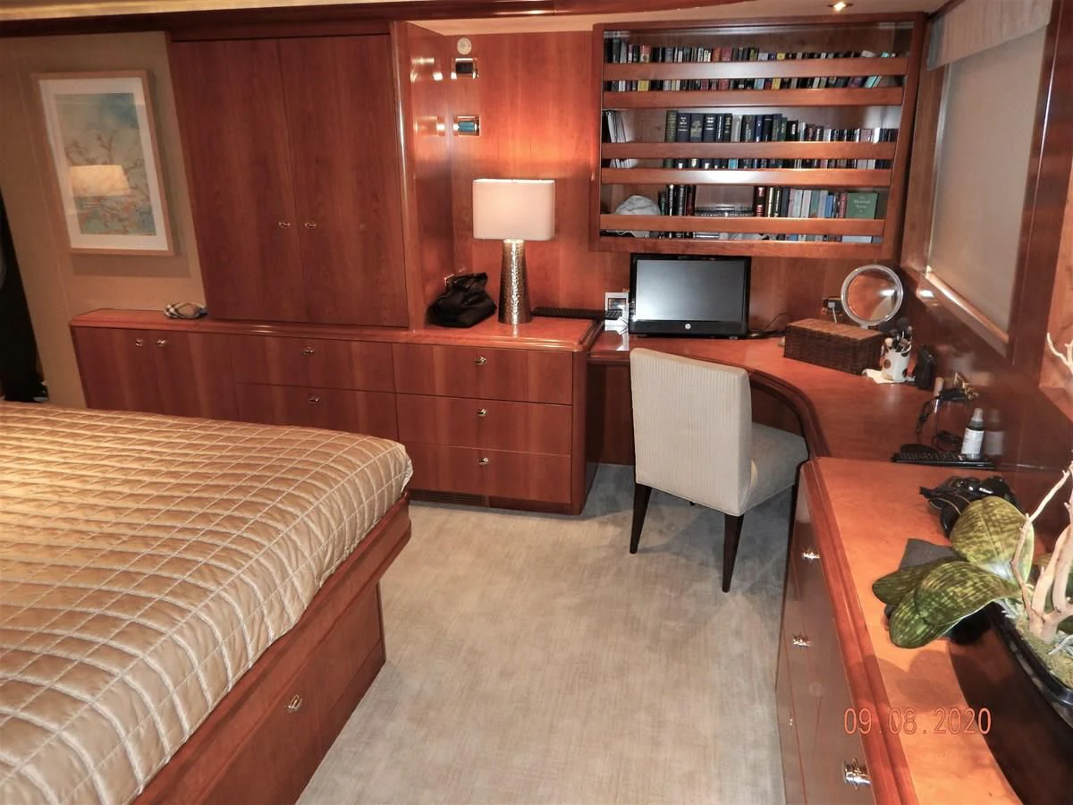 Over the past two years, Rebellious has been tastefully updated with new furniture, soft goods, designer fabrics, and decor. New lighting has been added to create a warm inviting, yet modern, ambiance throughout the yacht. In the pilothouse, the electronics have been brought up to date with either new equipment or by upgrading the existing equipment with the latest software and operating systems. Three full bars, each on a different deck, mean refreshments are always conveniently nearby. Two Yamaha EX Series Deluxe Jet Skis (each with less than 35 hours) reside on the boat deck inviting any guests wishing to enjoy some extra excitement to give them a try.