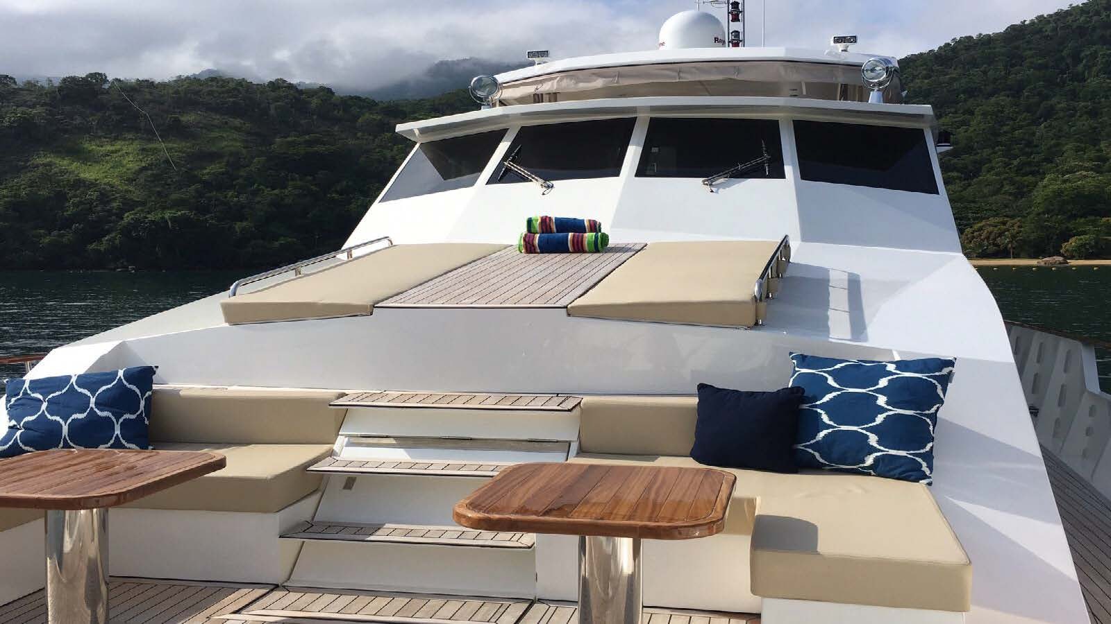 Onboard amenities are meticulously designed to cater to every whim of its esteemed guests - from the main salon where one can enjoy intimate gatherings or grand celebrations; dining area where gastronomic delights are served; gym equipped with state-of-the-art fitness equipment; movie theater providing entertainment like no other; beach club offering direct access to the sea as well as water toys inventory including jet skis, inflatable slides, snorkeling gear among others – ensuring endless fun-filled activities during your voyage.
