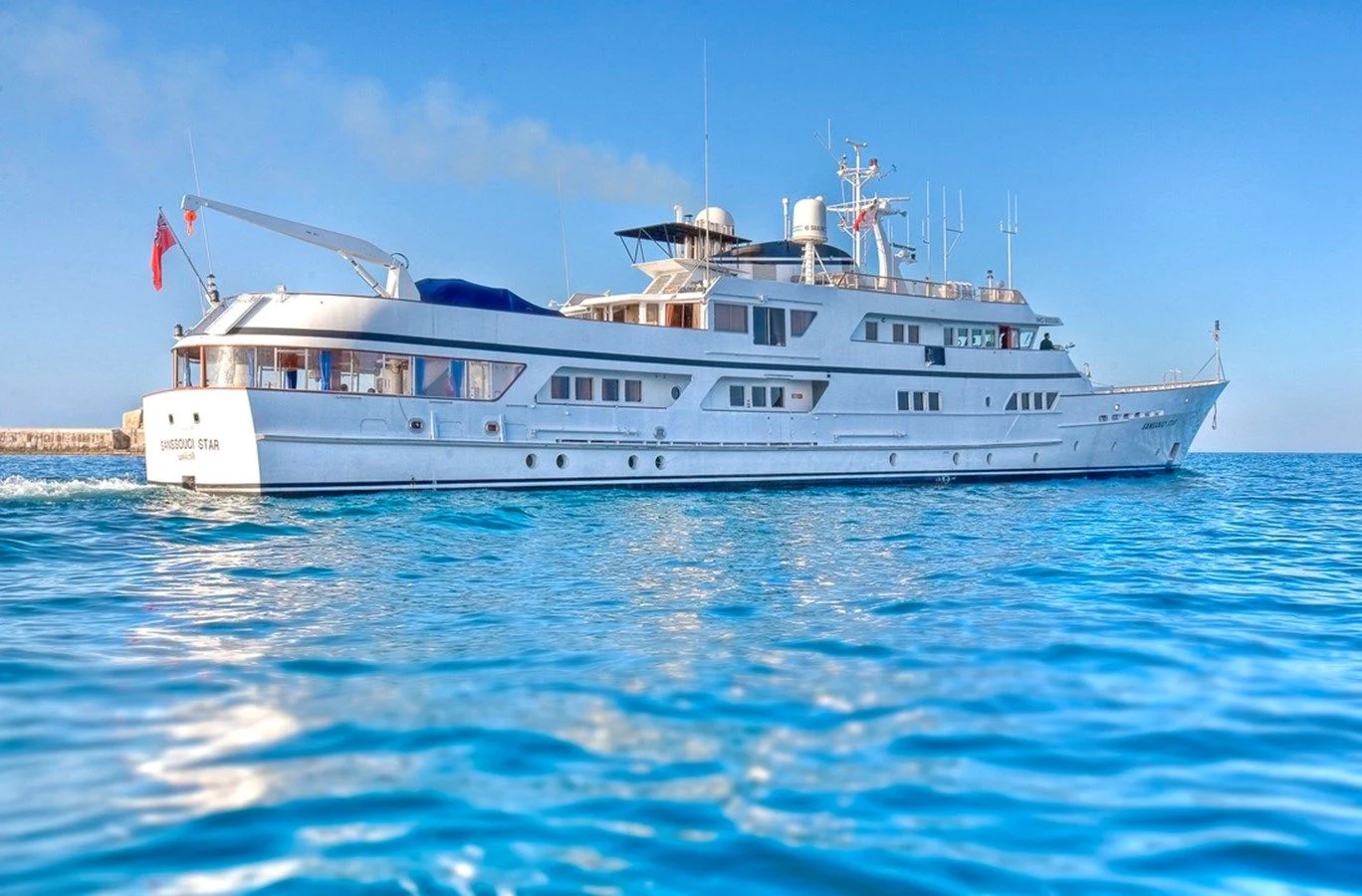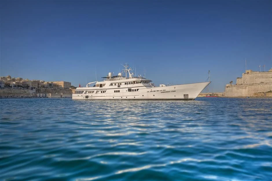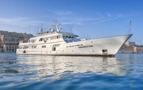 SANSSOUCI STAR is a 53-meter twin-screw displacement motor yacht built at the German Husumer Schiffswerft shipyard. Originally launched at a length of 37 meters, she has since undergone two extensions, first in 1984 and then in 2001, reaching her current impressive size.