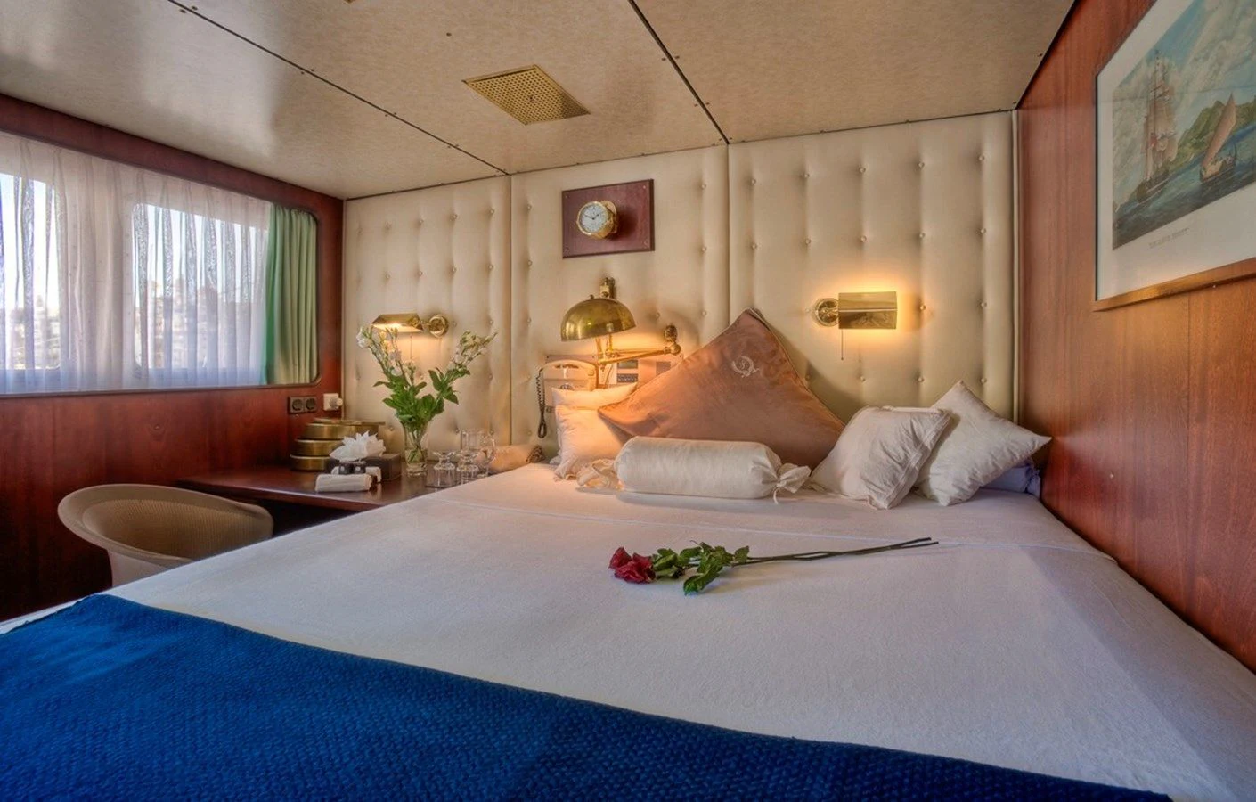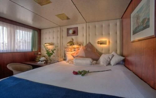 Accommodating up to 12 guests across seven staterooms, SANSSOUCI STAR offers unparalleled luxury and comfort. The Master suite, located on the upper deck, boasts a king-size bed, a private living room area, and a well-appointed en-suite bathroom. On the main deck, there are two VIP double cabins, while the lower deck features two double cabins and two twin cabins, all equipped with en-suite facilities.