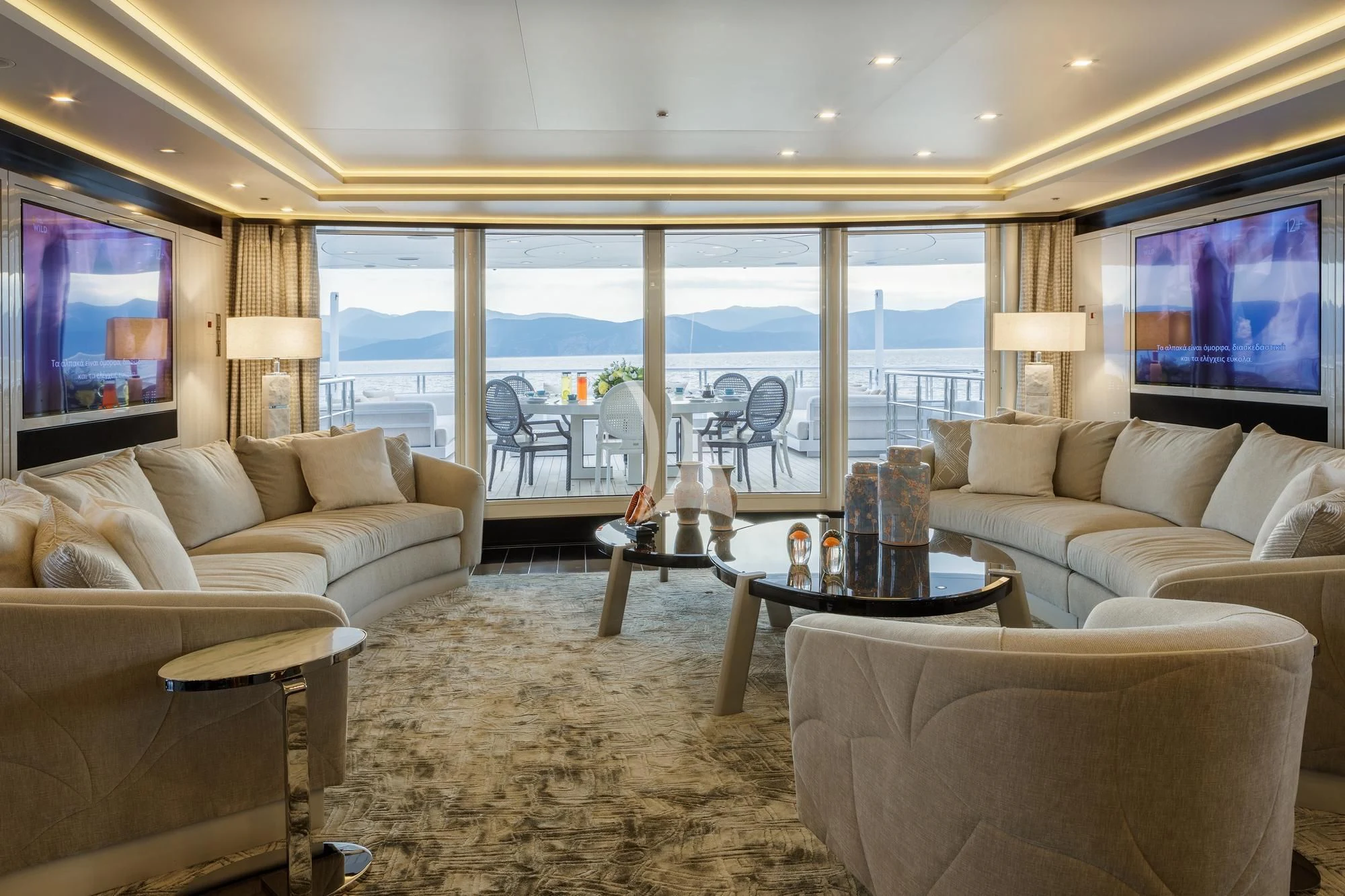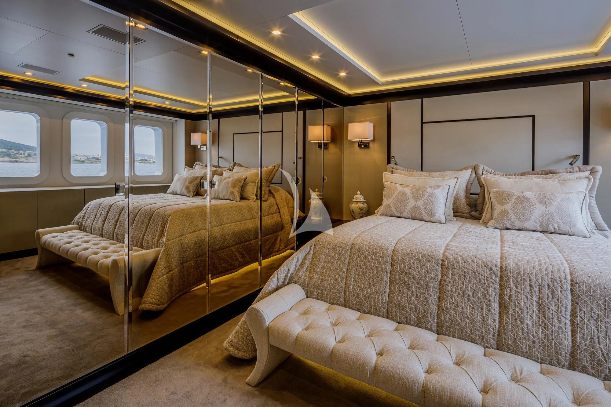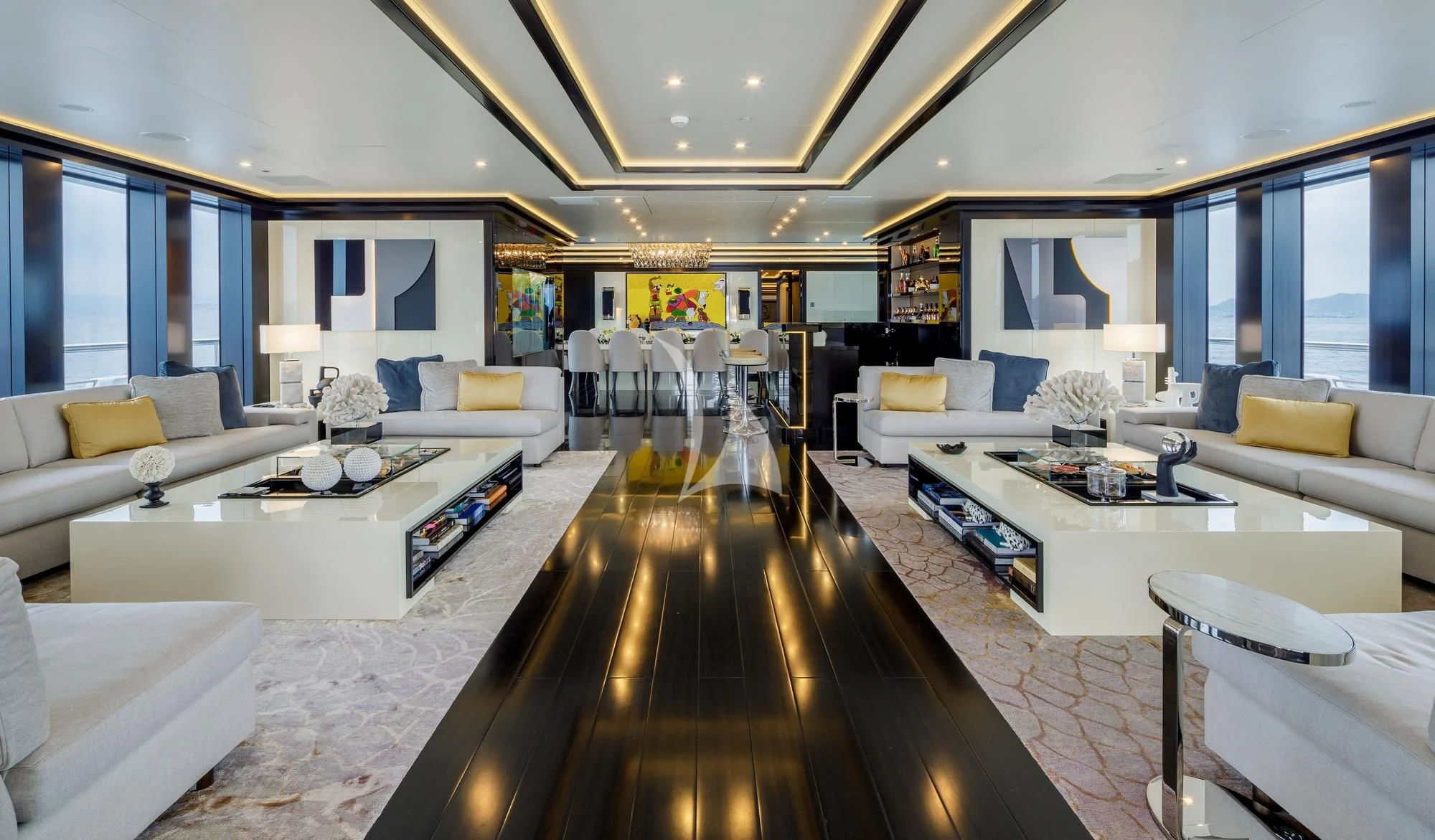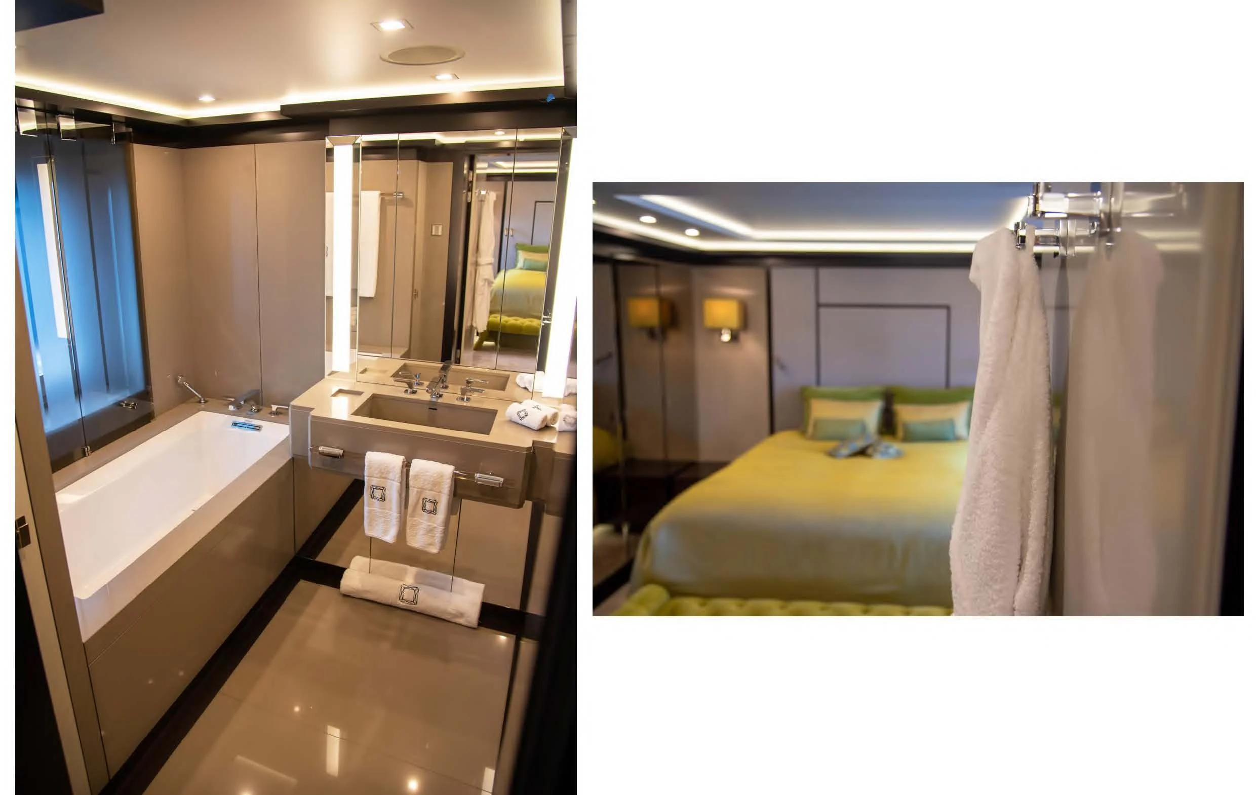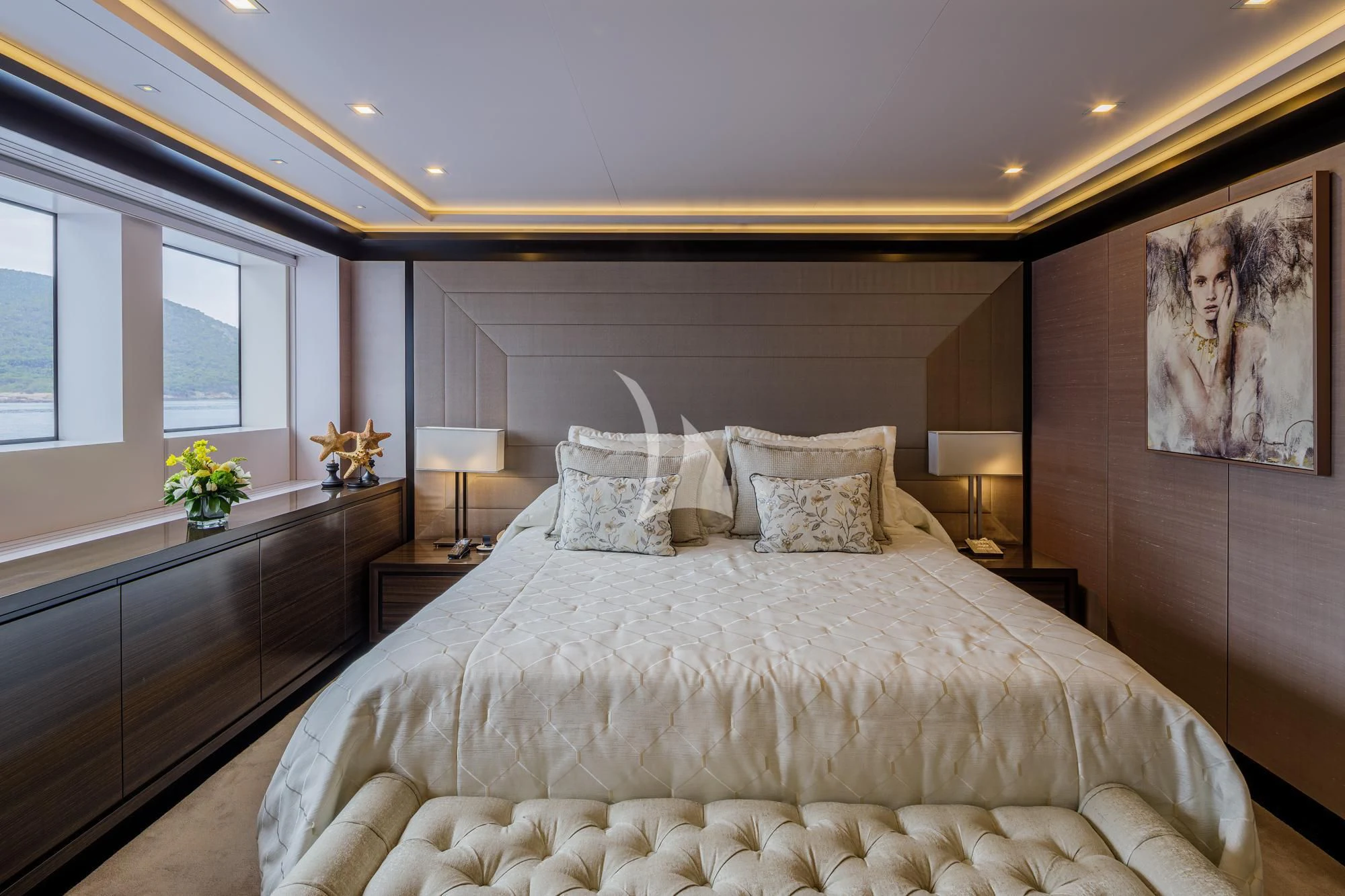 Step inside LADY VERA, and you are greeted by an ambiance that exudes opulence at every turn. The interior design harmoniously blends contemporary aesthetics with timeless elegance, creating a serene environment for relaxation or entertainment alike. Capable of accommodating up to 12 guests within its six luxurious cabins, each room offers a sanctuary where comfort meets style. The master stateroom stands out with its extravagant layout and exquisite decor, promising a stay that rivals any five-star suite on land.