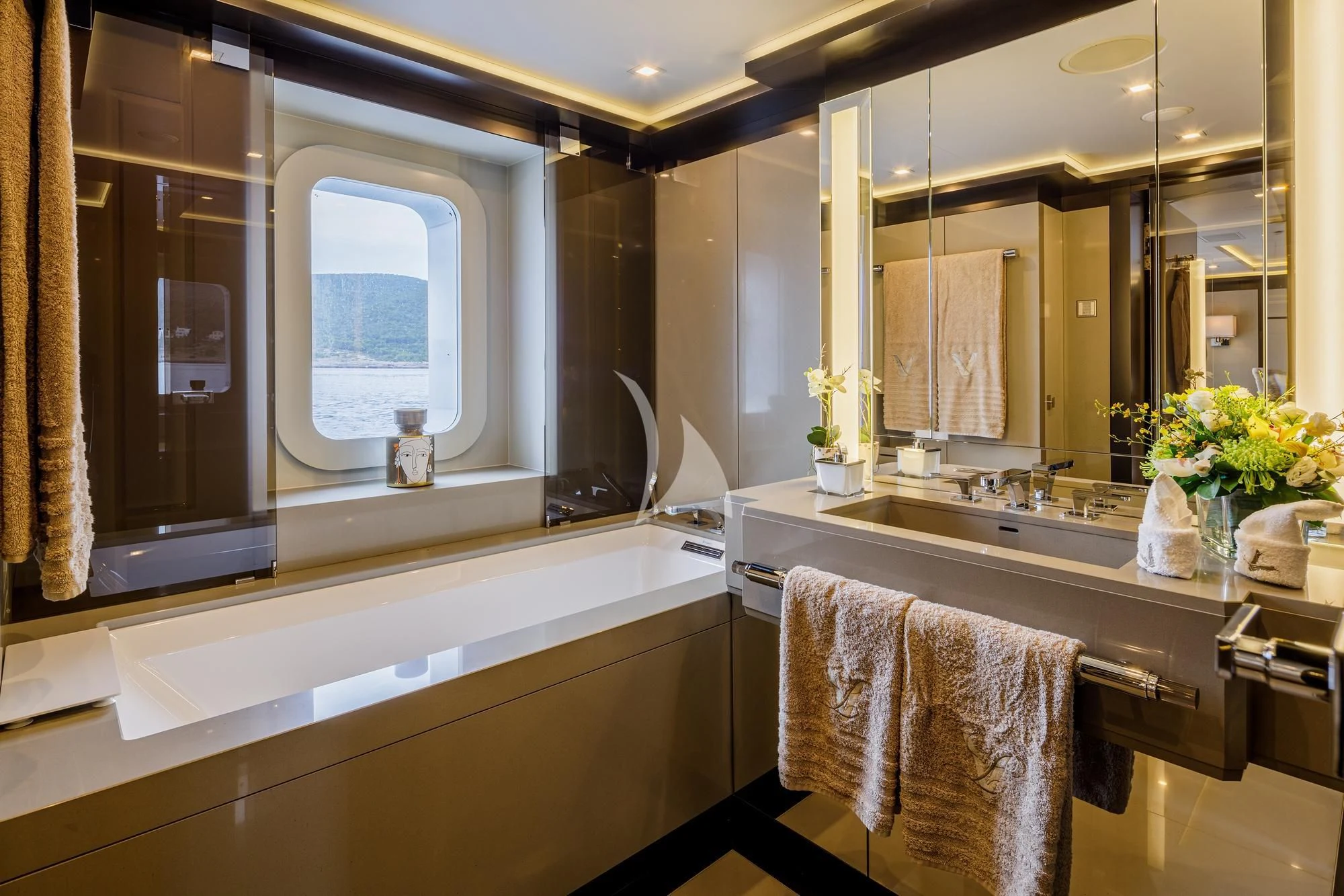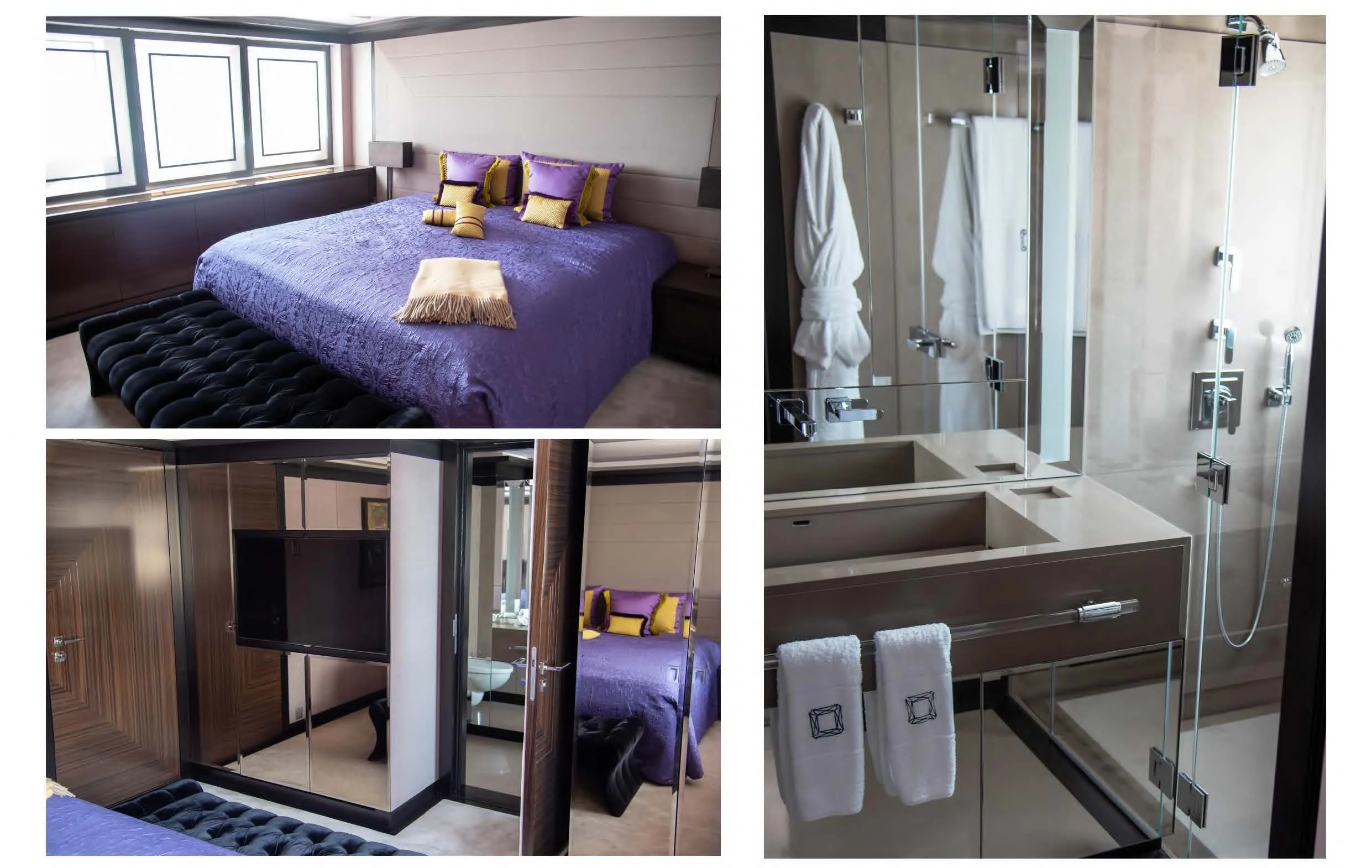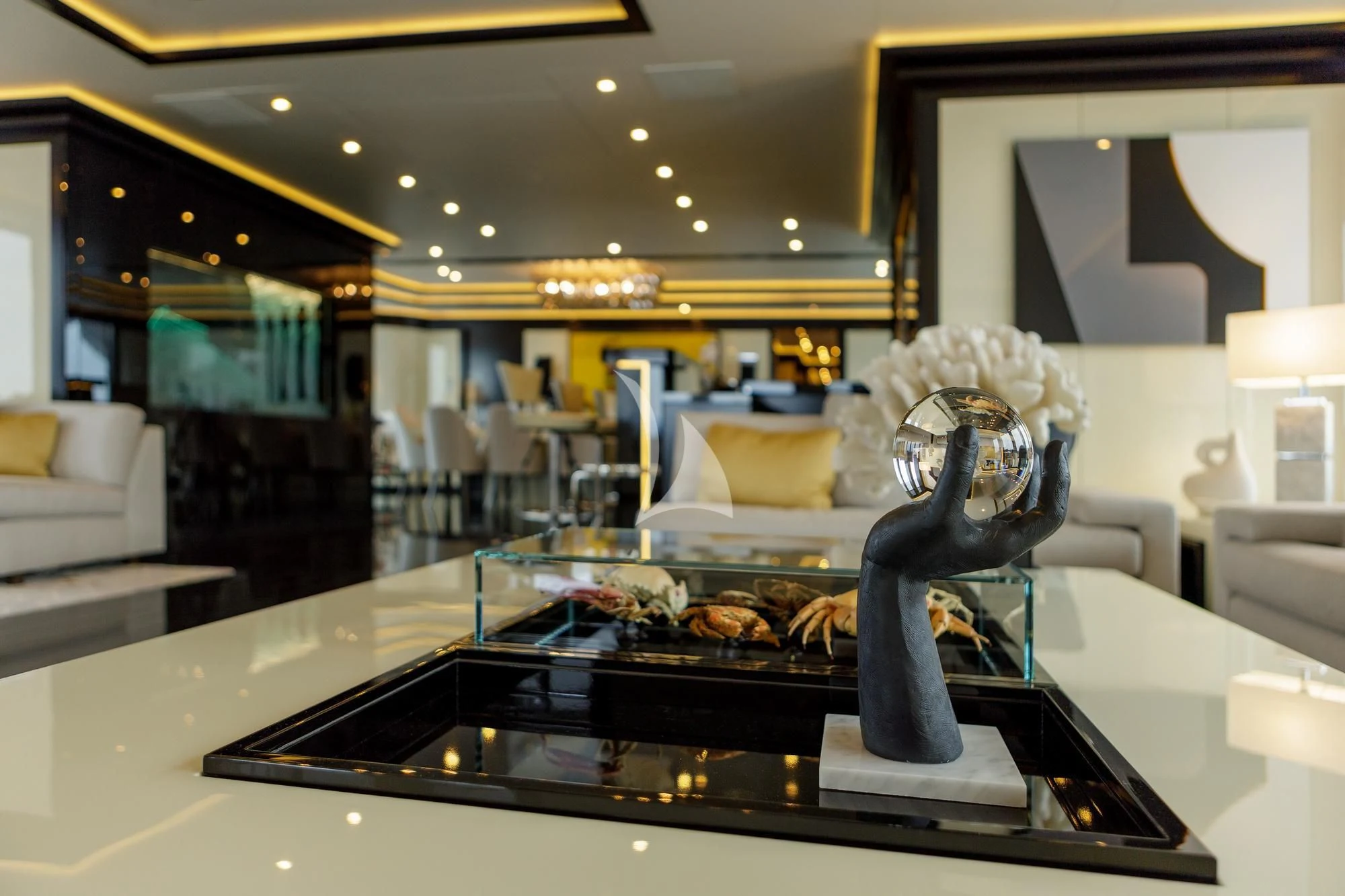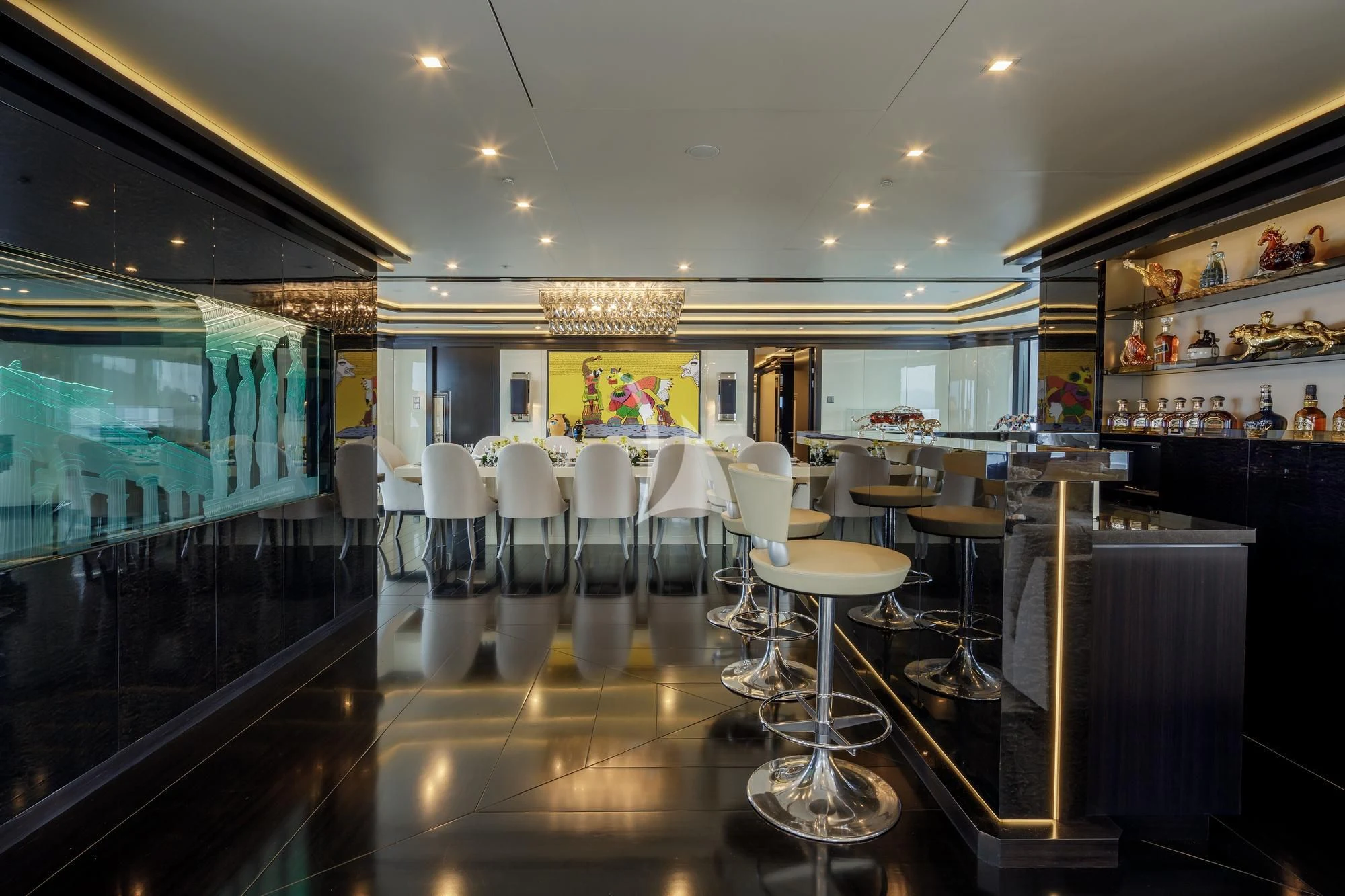 Step inside LADY VERA, and you are greeted by an ambiance that exudes opulence at every turn. The interior design harmoniously blends contemporary aesthetics with timeless elegance, creating a serene environment for relaxation or entertainment alike. Capable of accommodating up to 12 guests within its six luxurious cabins, each room offers a sanctuary where comfort meets style. The master stateroom stands out with its extravagant layout and exquisite decor, promising a stay that rivals any five-star suite on land.