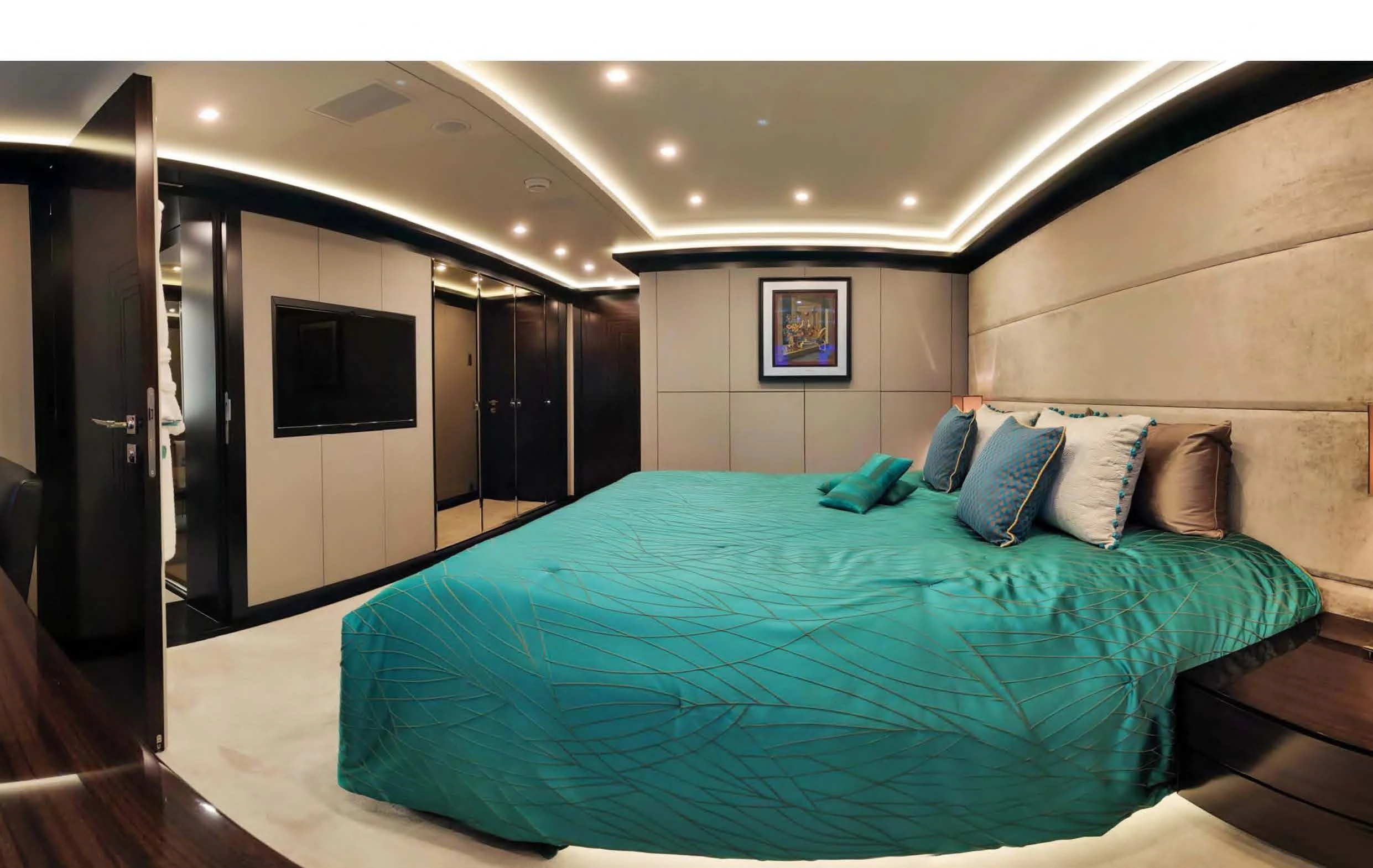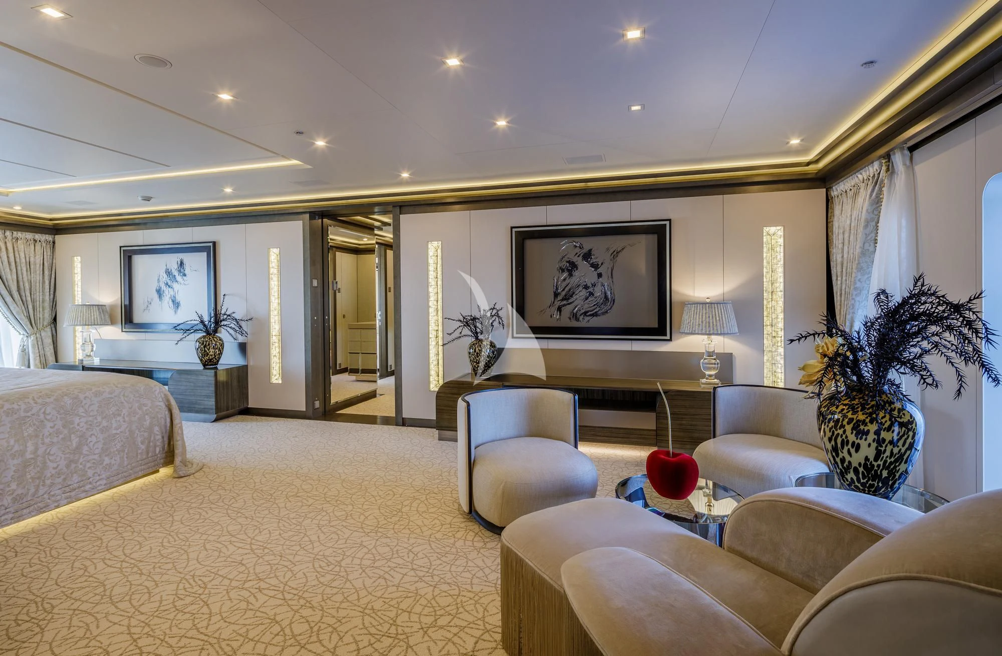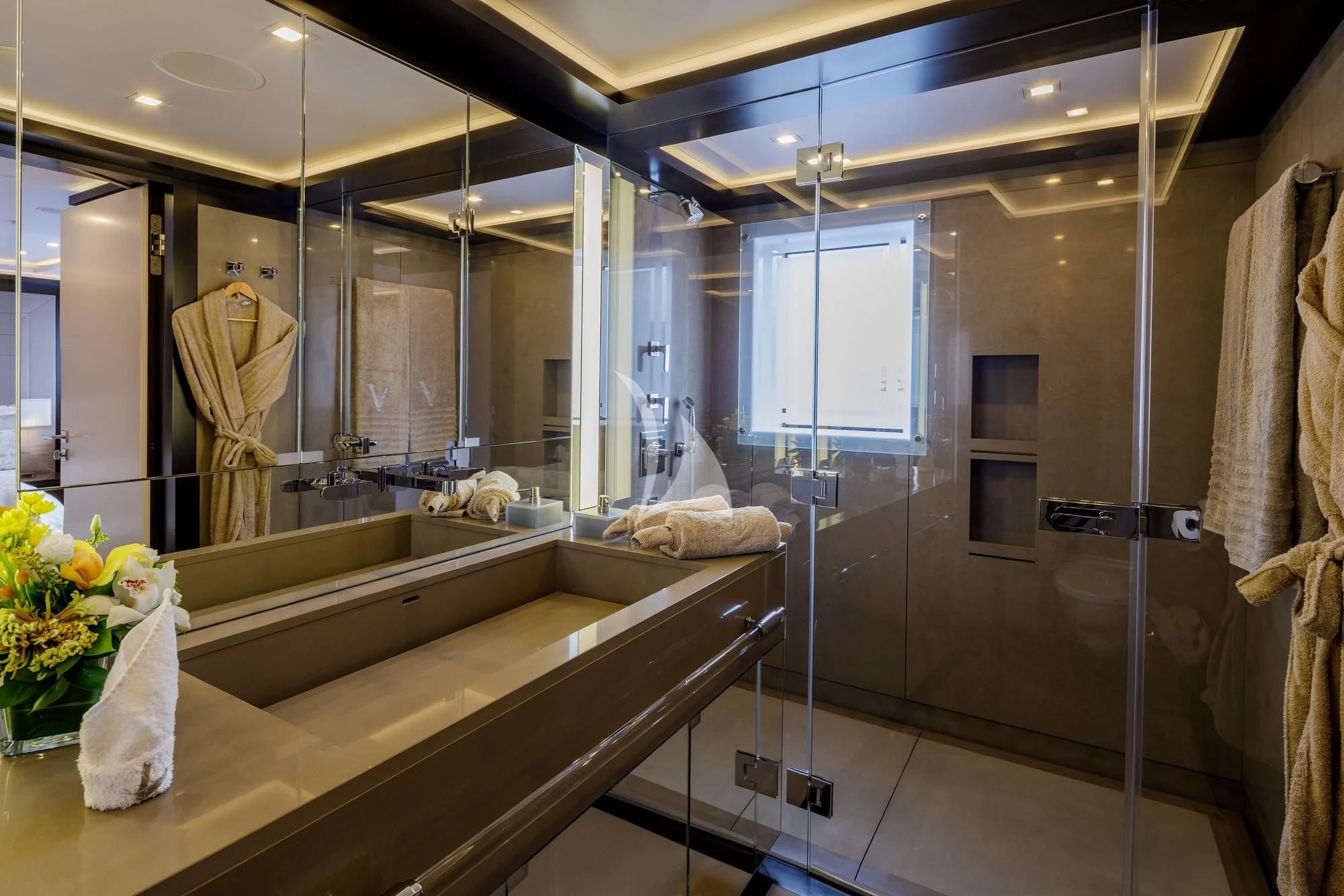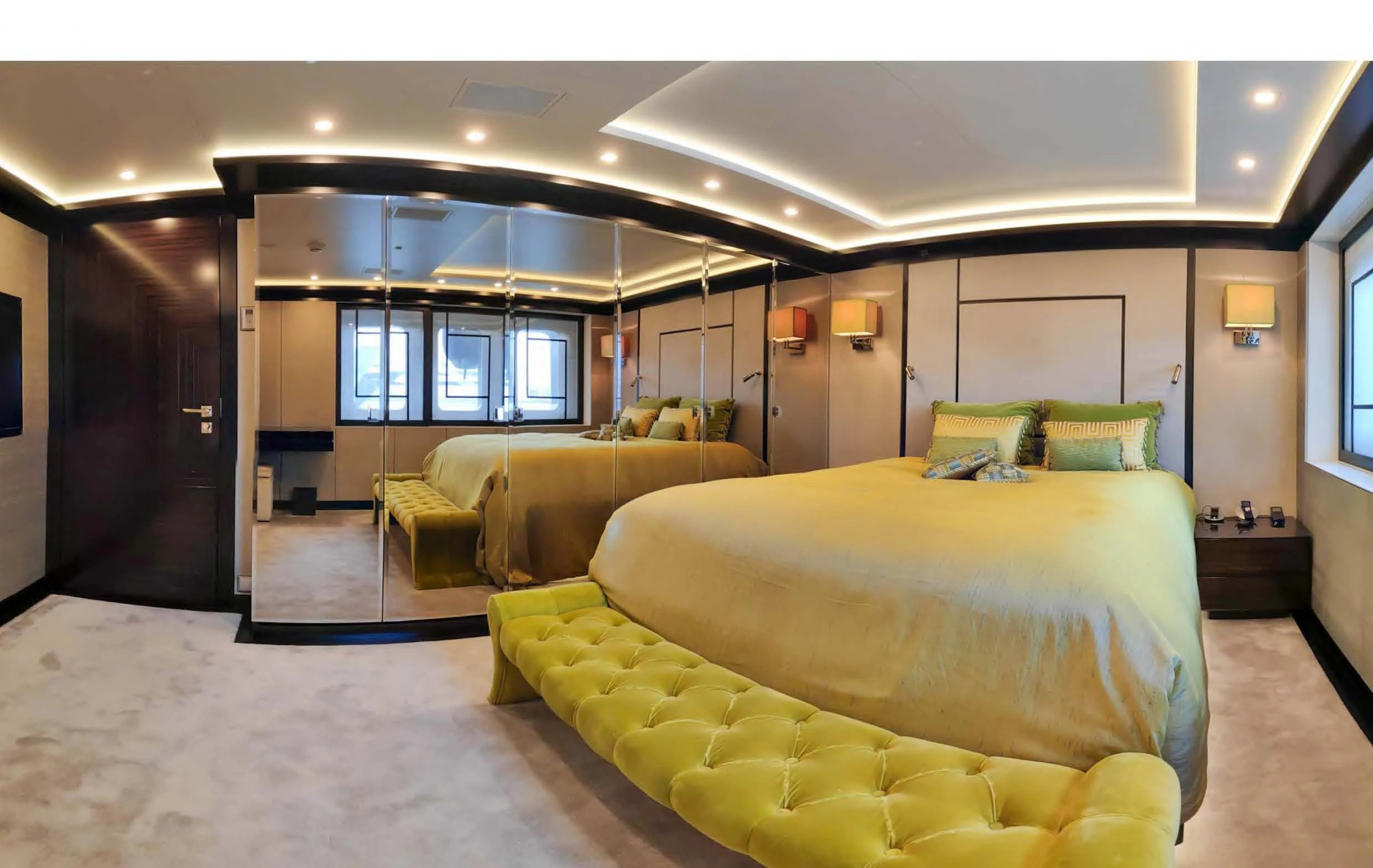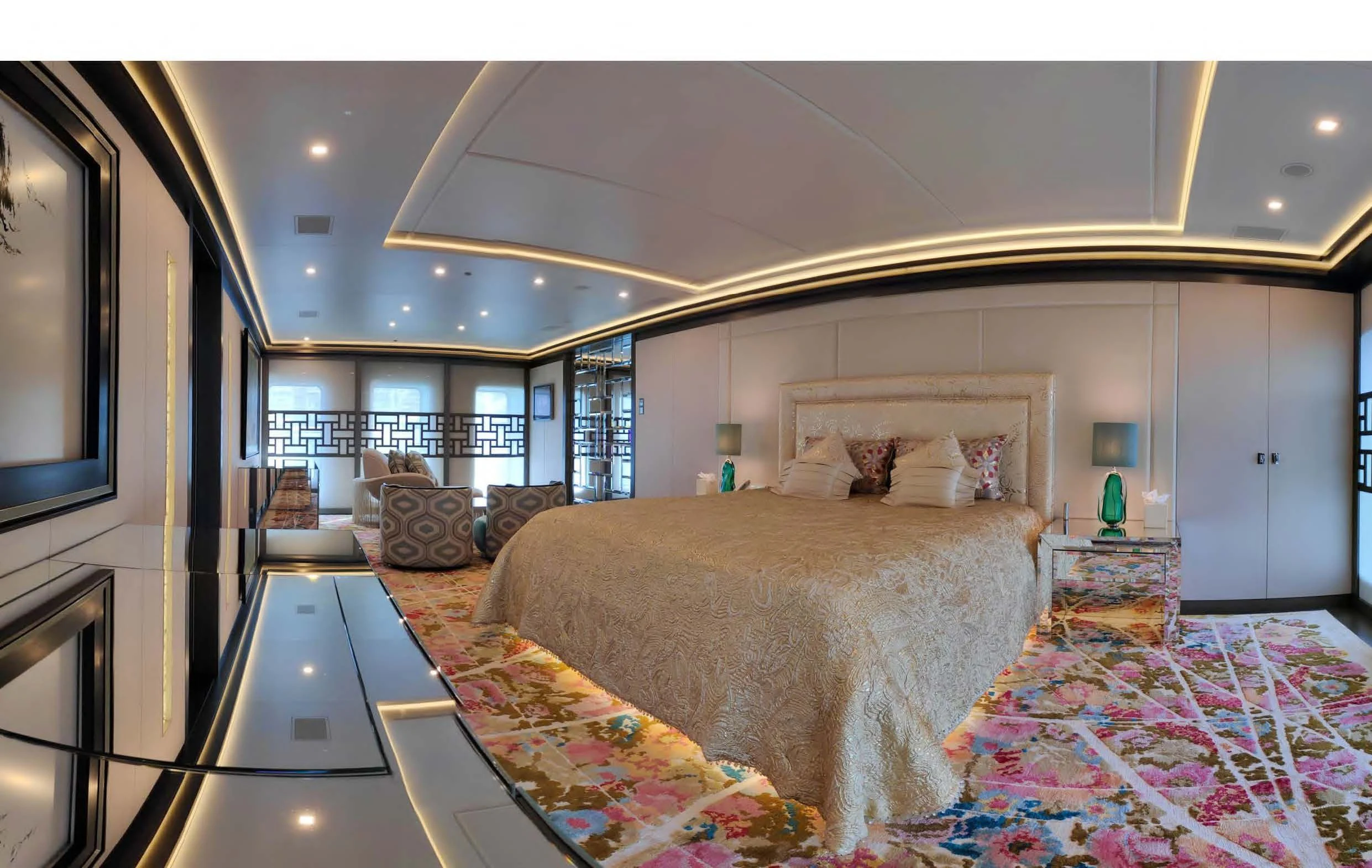 Step inside LADY VERA, and you are greeted by an ambiance that exudes opulence at every turn. The interior design harmoniously blends contemporary aesthetics with timeless elegance, creating a serene environment for relaxation or entertainment alike. Capable of accommodating up to 12 guests within its six luxurious cabins, each room offers a sanctuary where comfort meets style. The master stateroom stands out with its extravagant layout and exquisite decor, promising a stay that rivals any five-star suite on land.