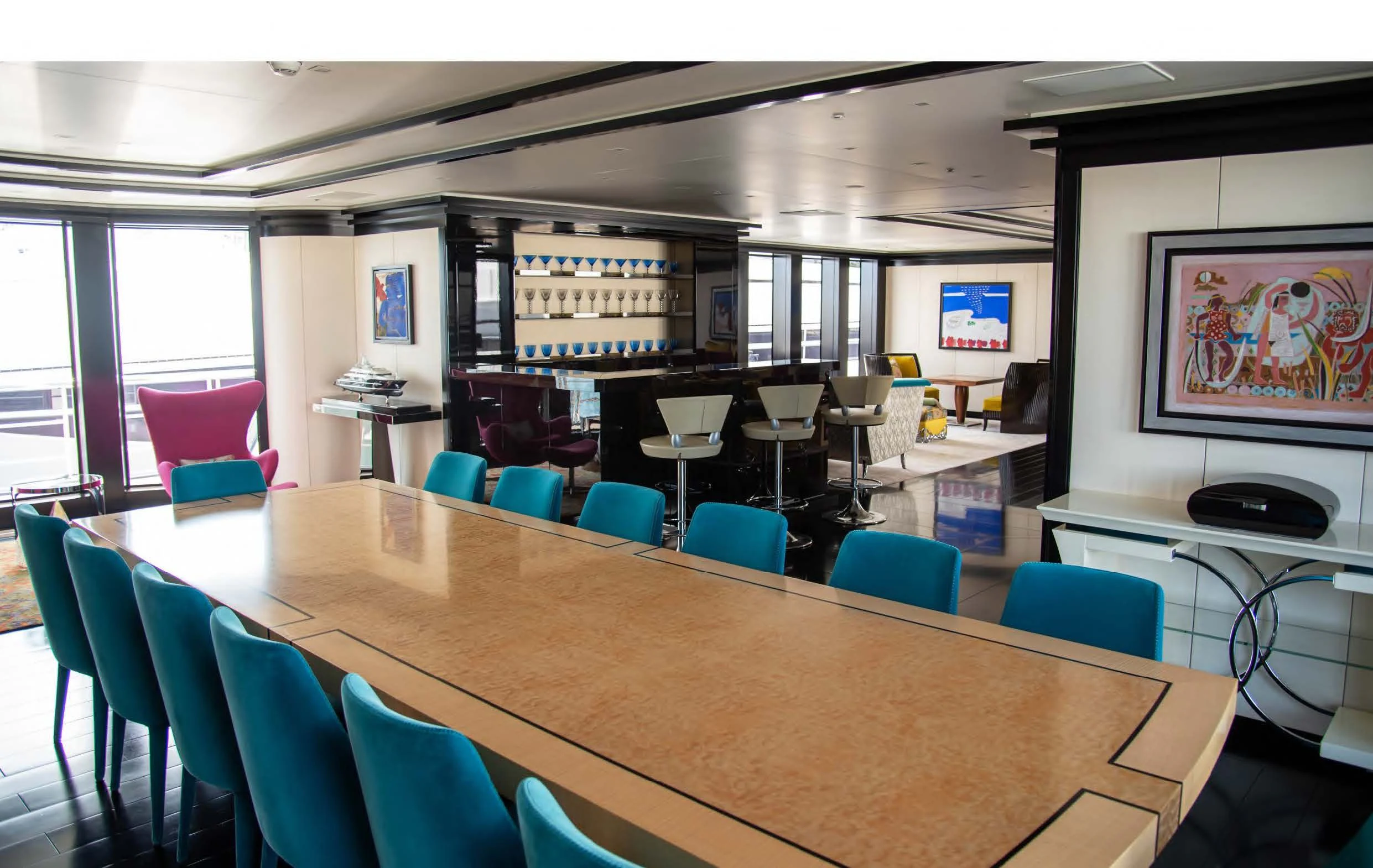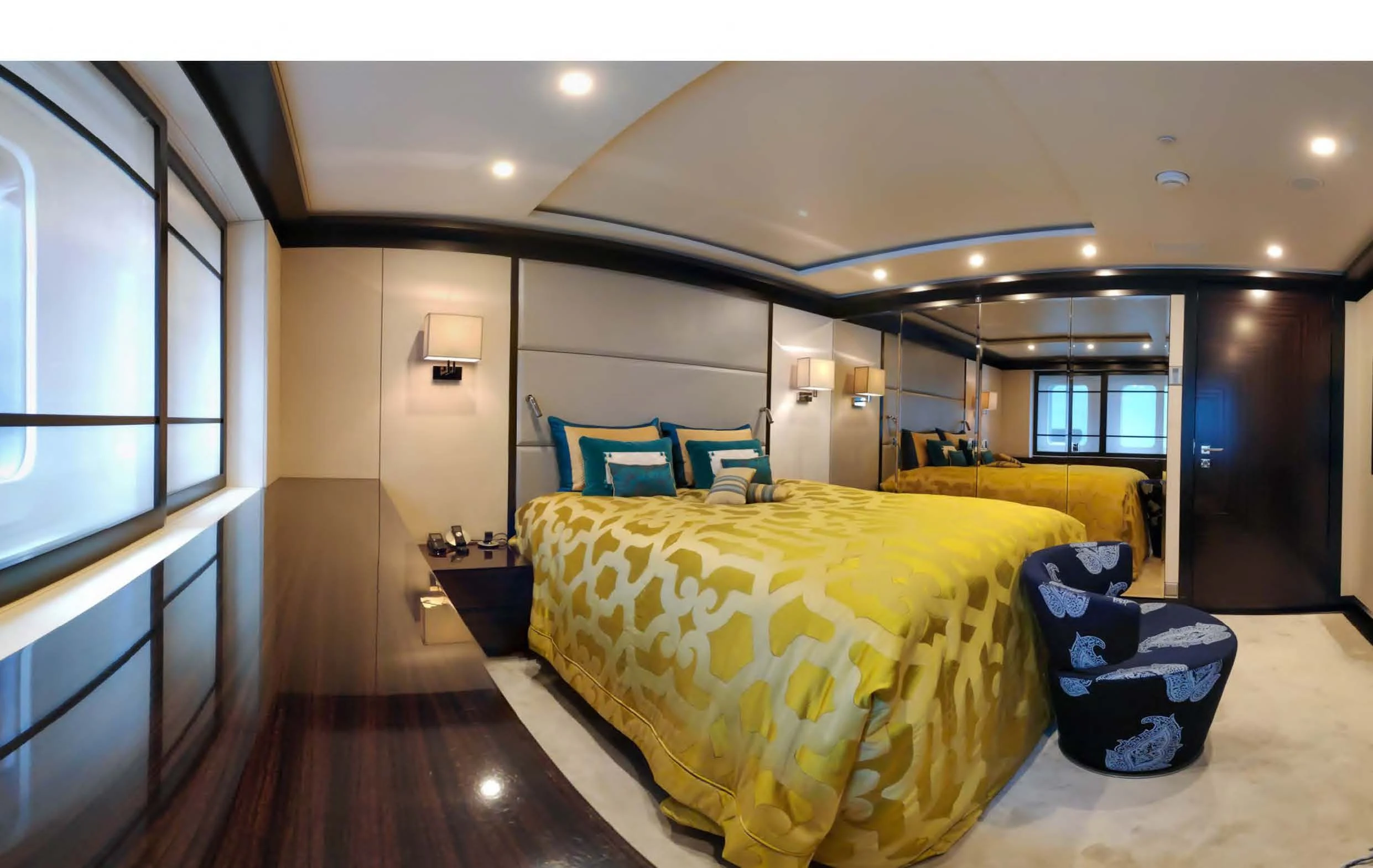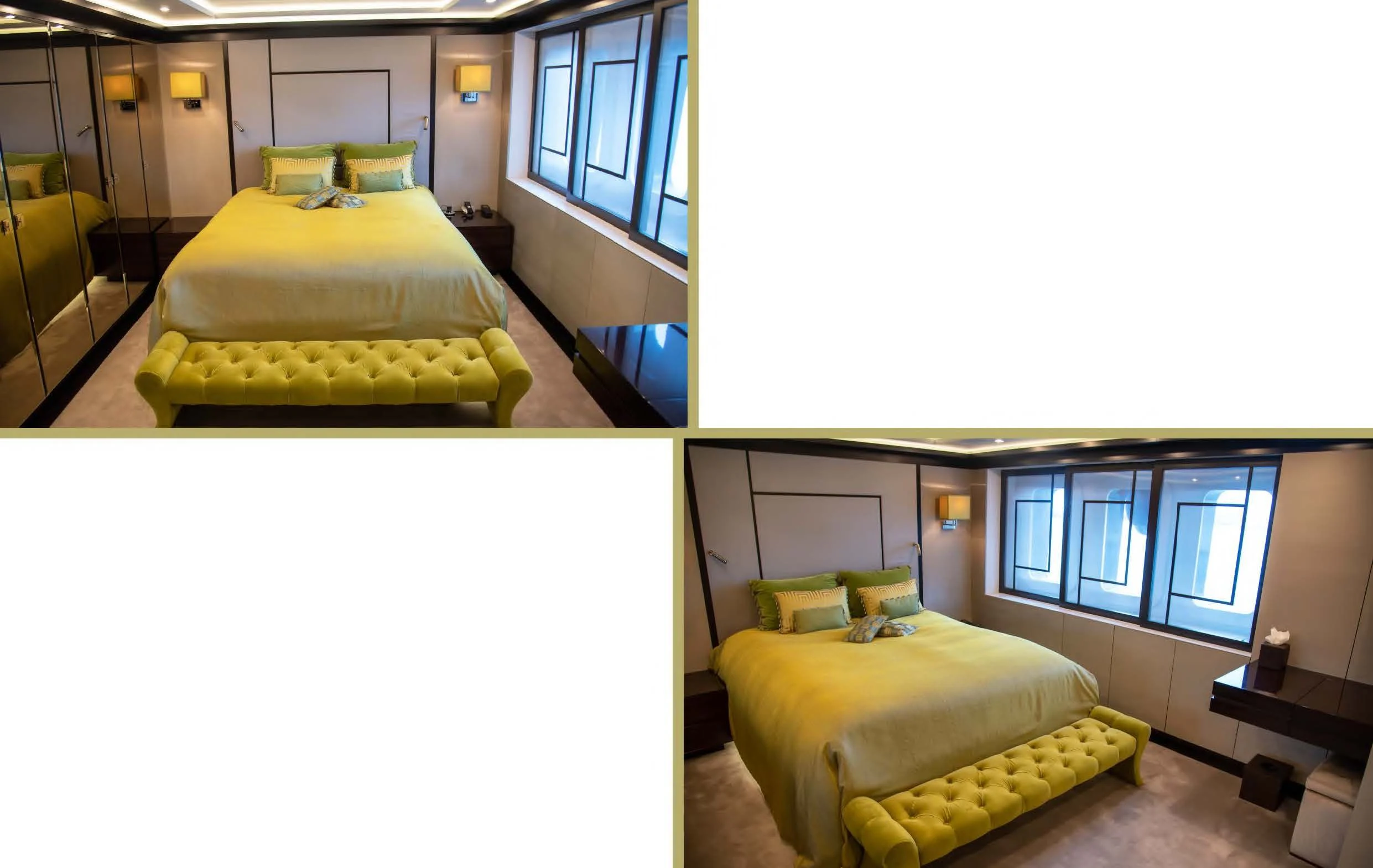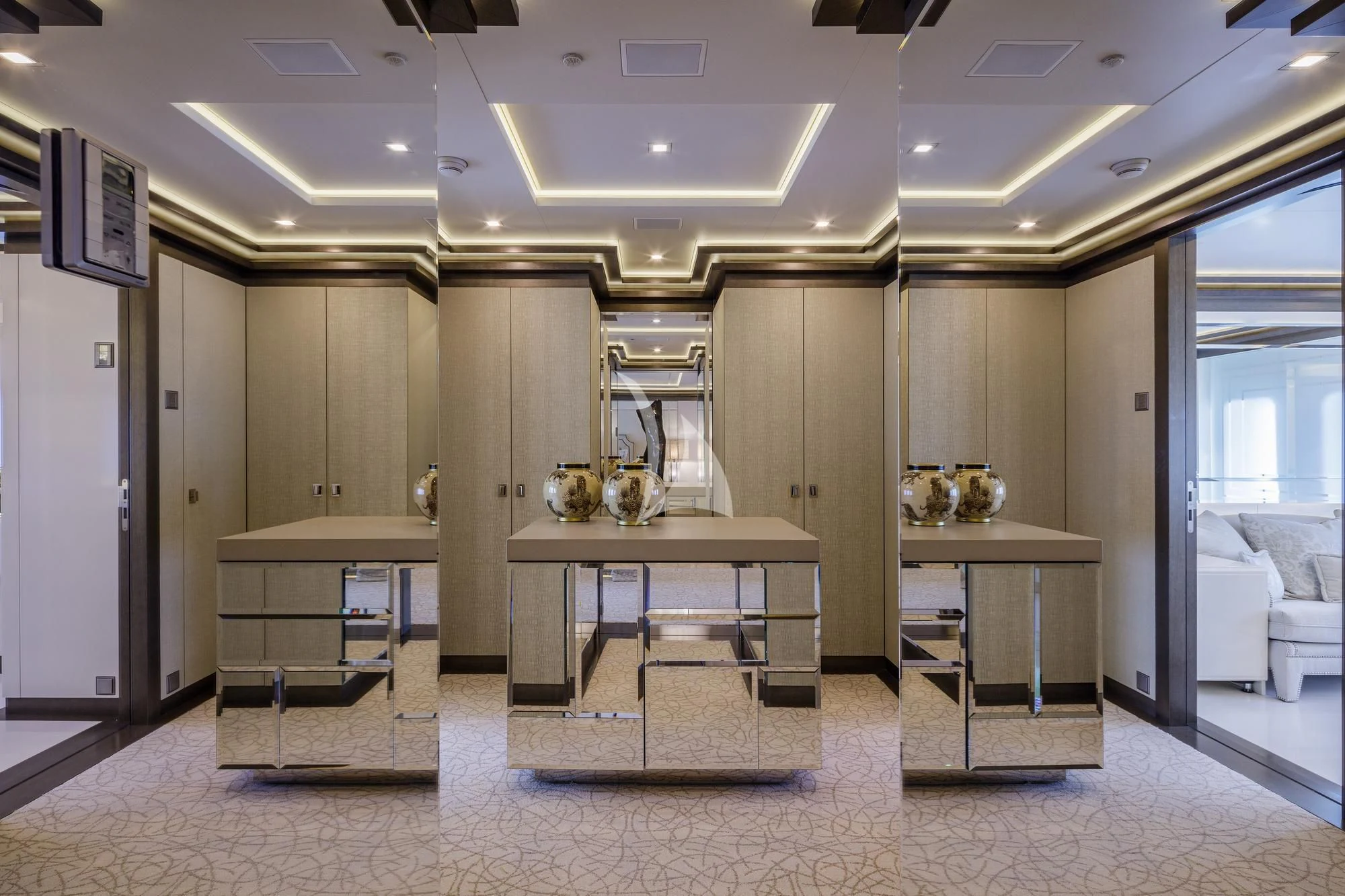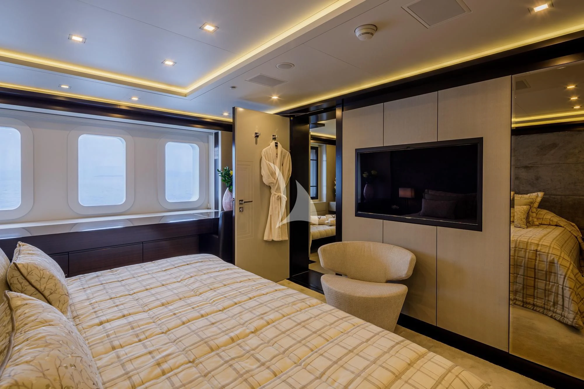 Step inside LADY VERA, and you are greeted by an ambiance that exudes opulence at every turn. The interior design harmoniously blends contemporary aesthetics with timeless elegance, creating a serene environment for relaxation or entertainment alike. Capable of accommodating up to 12 guests within its six luxurious cabins, each room offers a sanctuary where comfort meets style. The master stateroom stands out with its extravagant layout and exquisite decor, promising a stay that rivals any five-star suite on land.